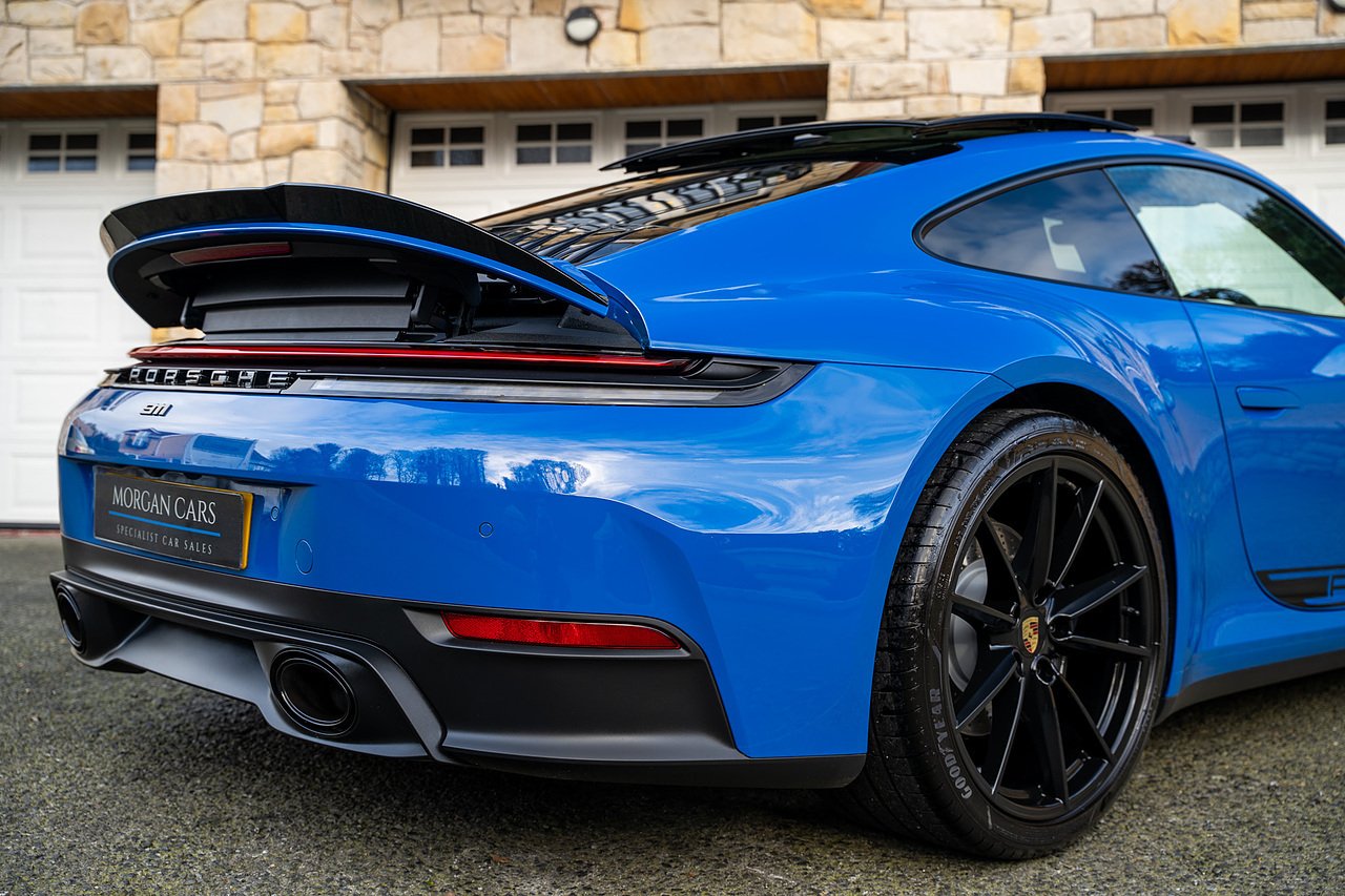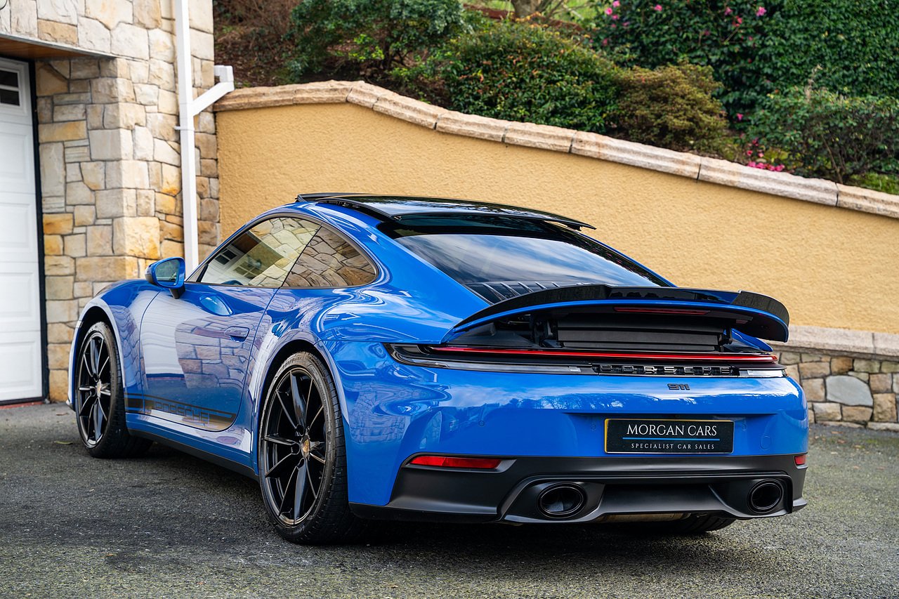 This Porsche 992.2 Carrera Features a fantastic specification from new which Includes Tilt and Slide Glass Sunroof, Bose Sound System, Front end Paint Protection Film, Sports Chrono Package with Mode Switch, 20/21" Gloss Black C4 Alloy Wheels, Privacy Glass, Side 'Porsche' Decal in Gloss Black, 14 Way Electric memory heated front seats, Sports Exhaust system with tailpipes in black, Porsche Crest on Headrests, Power Steering Plus, Heated GT Sport steering wheel in Leather, Rear Seats Option, Porsche crest with full coloured logo, Ambient LED interior lighting Pack, Apple Carplay and Android Auto Support.