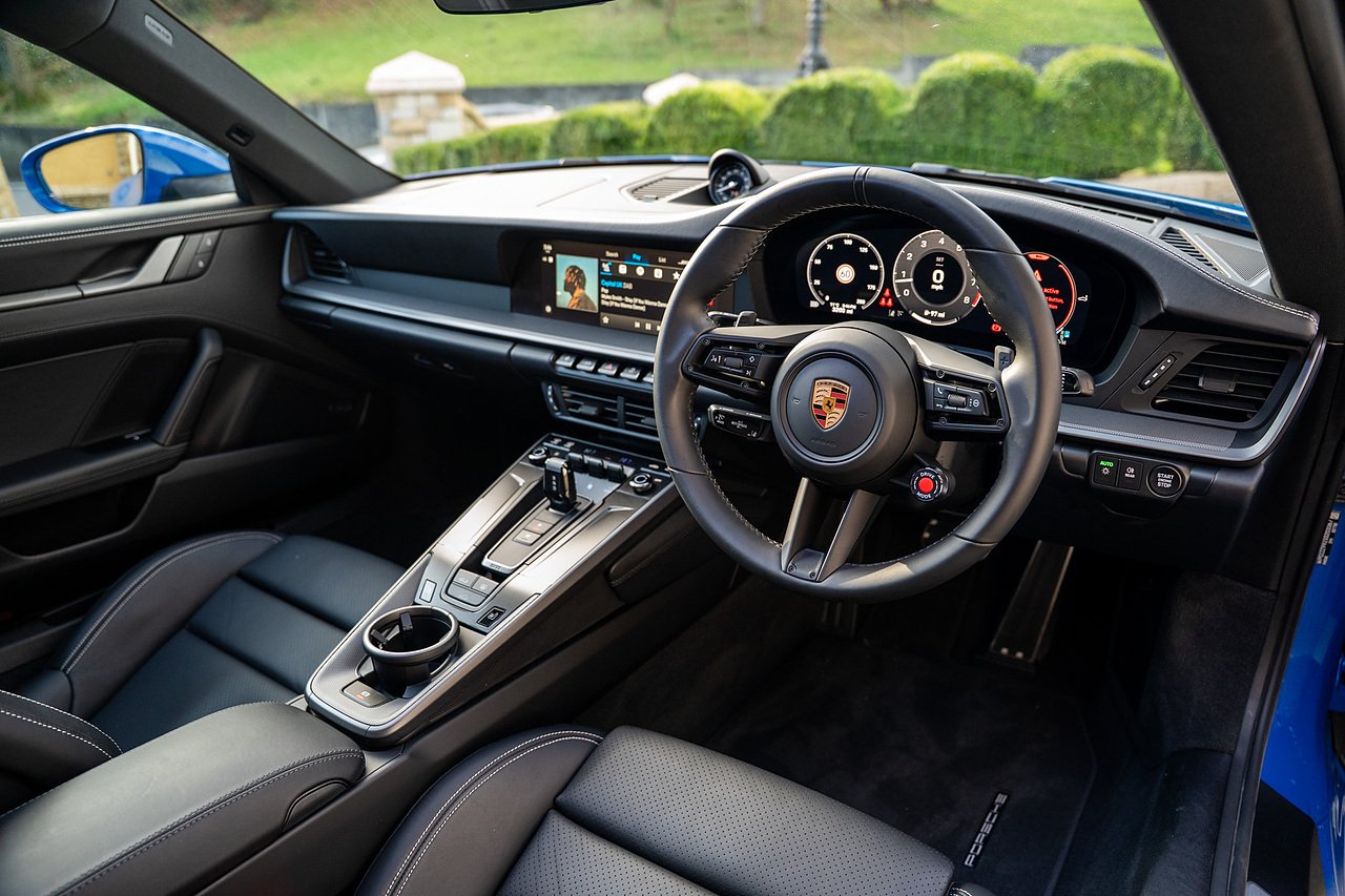 2025 Porsche 911 Generation 2 Carrera finished in Stunning Lugano Blue with Full Black Leather Interior.