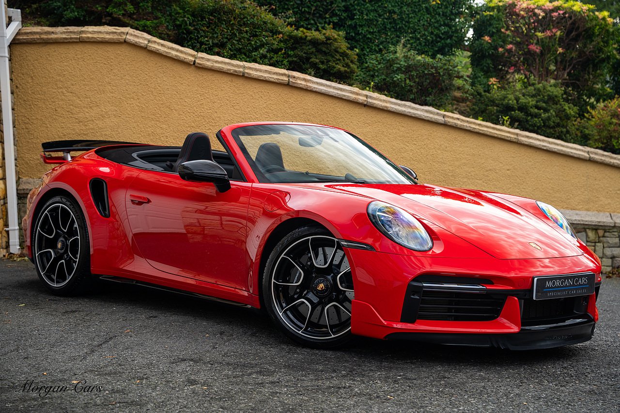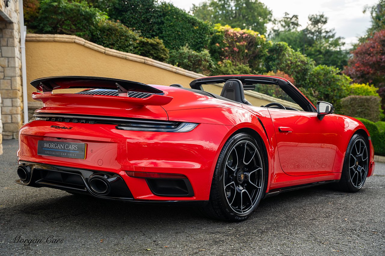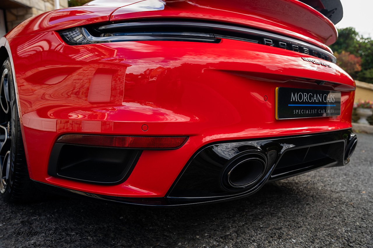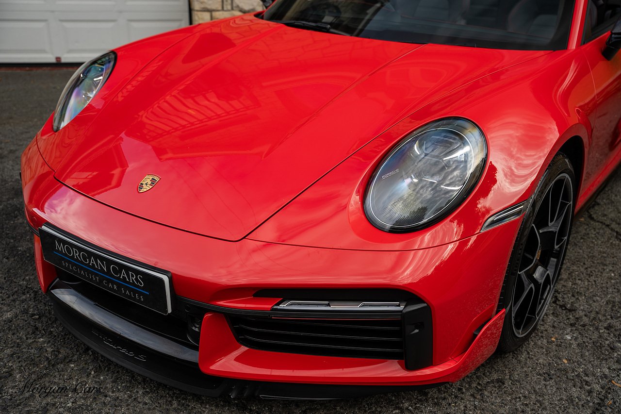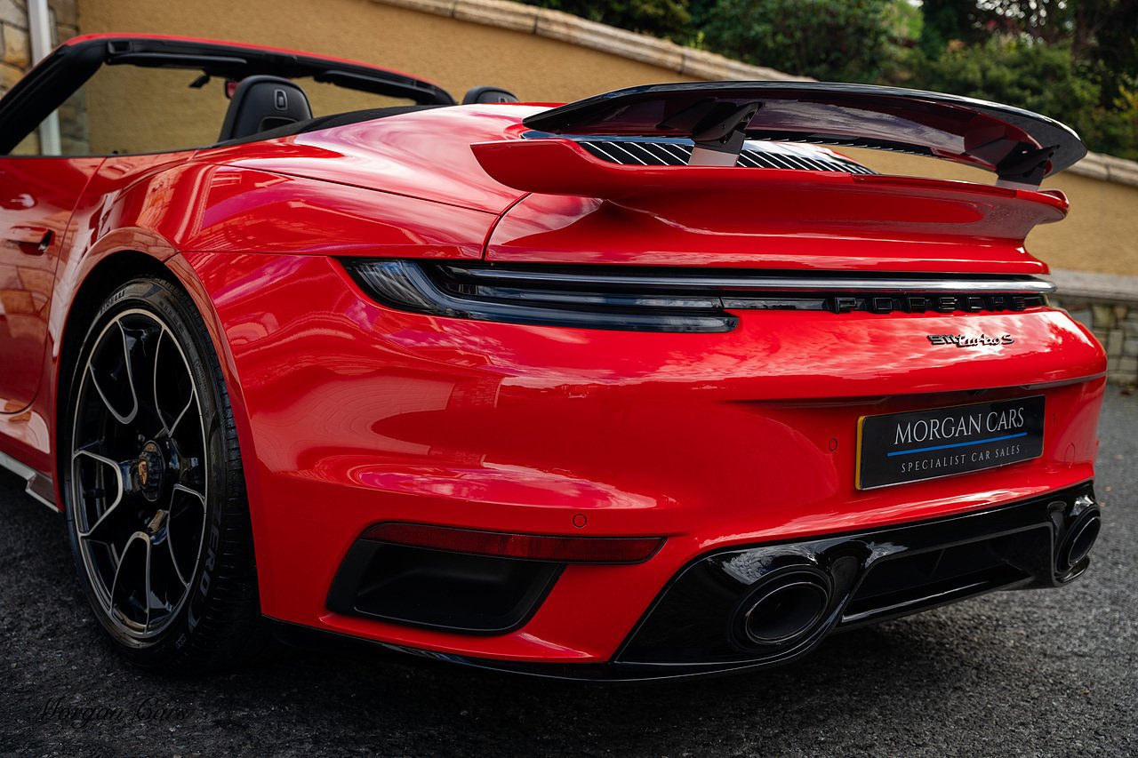 The Specification for this example includes Burmester® High-End Surround Sound System, Designation on Rear in High Gloss Black, Sport Exhaust System & Tailpipes in Gloss Black, Porsche Ceramic Composite Brakes (PCCB) with Calipers in High Gloss Black, Power Steering Plus, Wheels Painted in High Gloss Black & Polished, Steering Column Casing in Leather, Memory Package, Heated GT Sport Steering Wheel with Trim in Matte Carbon Fibre, Sport Seats Plus Backrest Shells in Leather with Matte Carbon Fibre Inlay, Front Axle Lift System, Exclusive Design Fuel Cap, Porsche Crest on Headrests, 20"/21" 911 Turbo S Exclusive Design Wheels, Heated and Ventilated Seats (Front), "KEYLESS ENTRY+GO", Exterior Mirror Upper Housing in Carbon Fibre and Lower Trim/Base in High Gloss Black, Deviated Stitching Interior Package, Door-Sill Guards in Matte Carbon Fibre, Illuminated, Lane Change Assist (LCA), LED-Matrix Design Headlights in Black incl. Porsche Dynamic Light System Plus (PDLS+) Central Tachometer in Guards Red, Exclusive Design Taillights, Night Vision Assist, , Surround View, "PORSCHE" Logo on Rear in High Gloss Black, Lane Keep Assist (LKA) incl. Traffic Sign Recognition, Ambient Lighting, Under Door Puddle Light Projectors, Rear Side Air Intakes in High Gloss Black, 911 Turbo SportDesign Package in High Gloss Black, Sport Chrono Stopwatch Dial in Guards RedRear Axle Steering, Porsche Active Suspension Management (PASM), Porsche Dynamic Chassis Control (PDCC), Leather Package, Heated Seats (Front), Auto-Dimming Mirrors, Interior Trim Inlays in Matte Carbon Fibre, Power Folding Exterior Mirrors, Navigation Module for Porsche Communication Management (PCM), Sport Chrono Package, Apple CarPlay® incl. Siri®, 8-speed Porsche Doppelkupplung (PDK) Porsche Torque Vectoring Plus (PTV+), Adaptive Sport Seats Plus (18-way) with Memory Package, SportDesign Side Skirts in High Gloss Black & much more, Inquire for more details and Spec Sheet