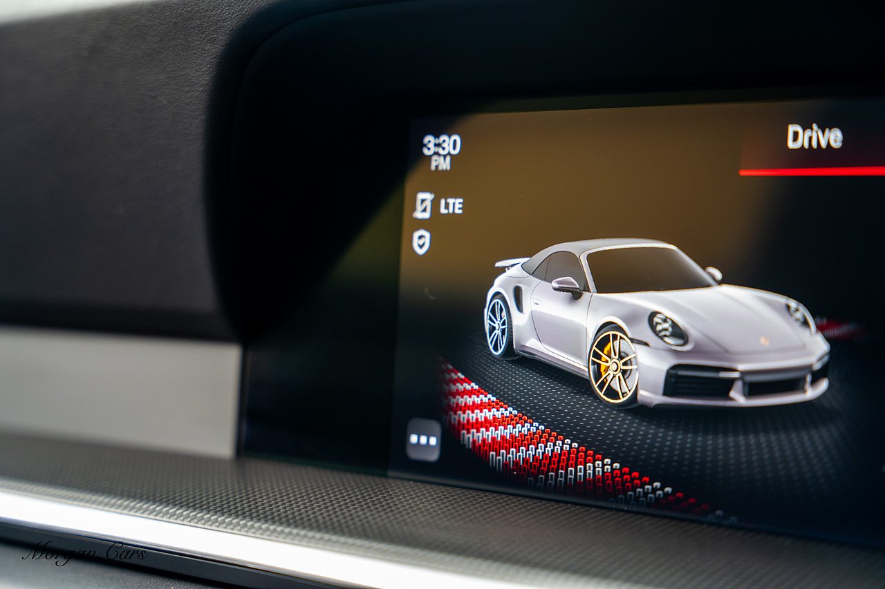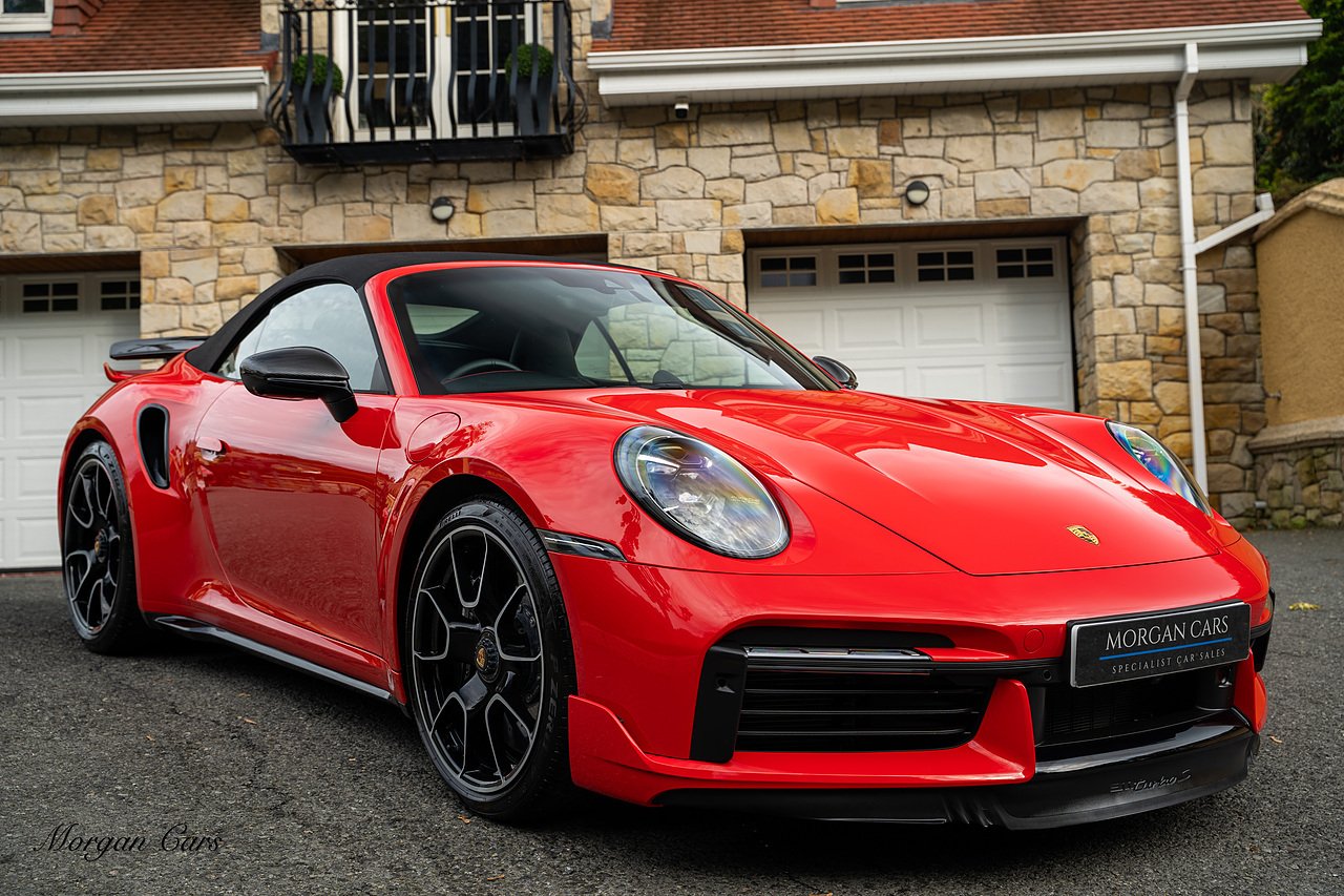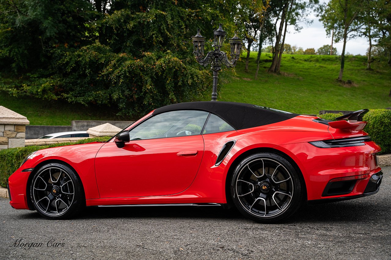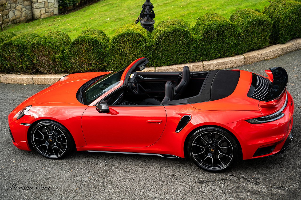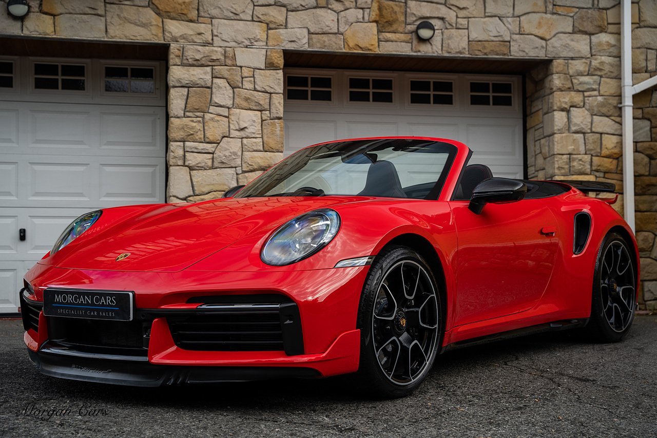 The Specification for this example includes Burmester® High-End Surround Sound System, Designation on Rear in High Gloss Black, Sport Exhaust System & Tailpipes in Gloss Black, Porsche Ceramic Composite Brakes (PCCB) with Calipers in High Gloss Black, Power Steering Plus, Wheels Painted in High Gloss Black & Polished, Steering Column Casing in Leather, Memory Package, Heated GT Sport Steering Wheel with Trim in Matte Carbon Fibre, Sport Seats Plus Backrest Shells in Leather with Matte Carbon Fibre Inlay, Front Axle Lift System, Exclusive Design Fuel Cap, Porsche Crest on Headrests, 20"/21" 911 Turbo S Exclusive Design Wheels, Heated and Ventilated Seats (Front), "KEYLESS ENTRY+GO", Exterior Mirror Upper Housing in Carbon Fibre and Lower Trim/Base in High Gloss Black, Deviated Stitching Interior Package, Door-Sill Guards in Matte Carbon Fibre, Illuminated, Lane Change Assist (LCA), LED-Matrix Design Headlights in Black incl. Porsche Dynamic Light System Plus (PDLS+) Central Tachometer in Guards Red, Exclusive Design Taillights, Night Vision Assist, , Surround View, "PORSCHE" Logo on Rear in High Gloss Black, Lane Keep Assist (LKA) incl. Traffic Sign Recognition, Ambient Lighting, Under Door Puddle Light Projectors, Rear Side Air Intakes in High Gloss Black, 911 Turbo SportDesign Package in High Gloss Black, Sport Chrono Stopwatch Dial in Guards RedRear Axle Steering, Porsche Active Suspension Management (PASM), Porsche Dynamic Chassis Control (PDCC), Leather Package, Heated Seats (Front), Auto-Dimming Mirrors, Interior Trim Inlays in Matte Carbon Fibre, Power Folding Exterior Mirrors, Navigation Module for Porsche Communication Management (PCM), Sport Chrono Package, Apple CarPlay® incl. Siri®, 8-speed Porsche Doppelkupplung (PDK) Porsche Torque Vectoring Plus (PTV+), Adaptive Sport Seats Plus (18-way) with Memory Package, SportDesign Side Skirts in High Gloss Black & much more, Inquire for more details and Spec Sheet