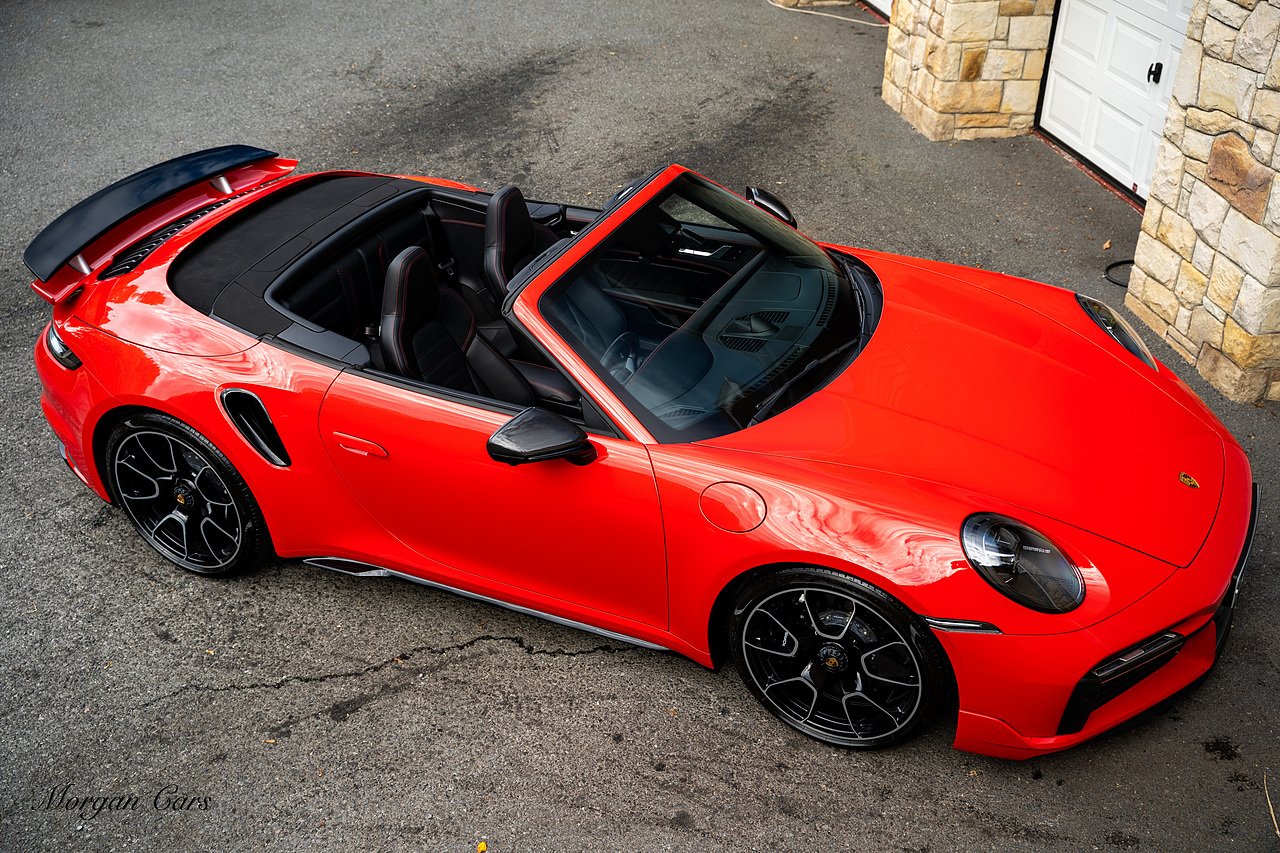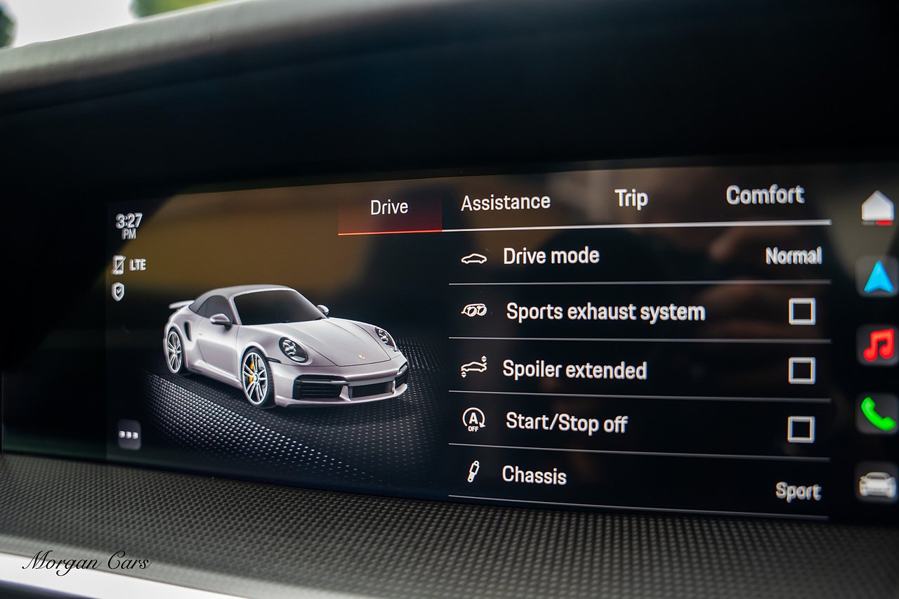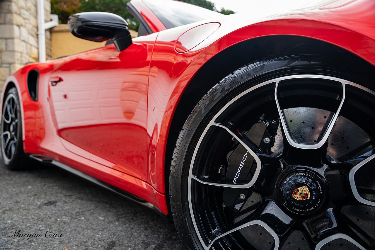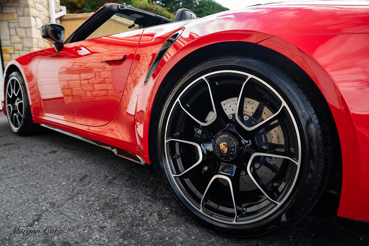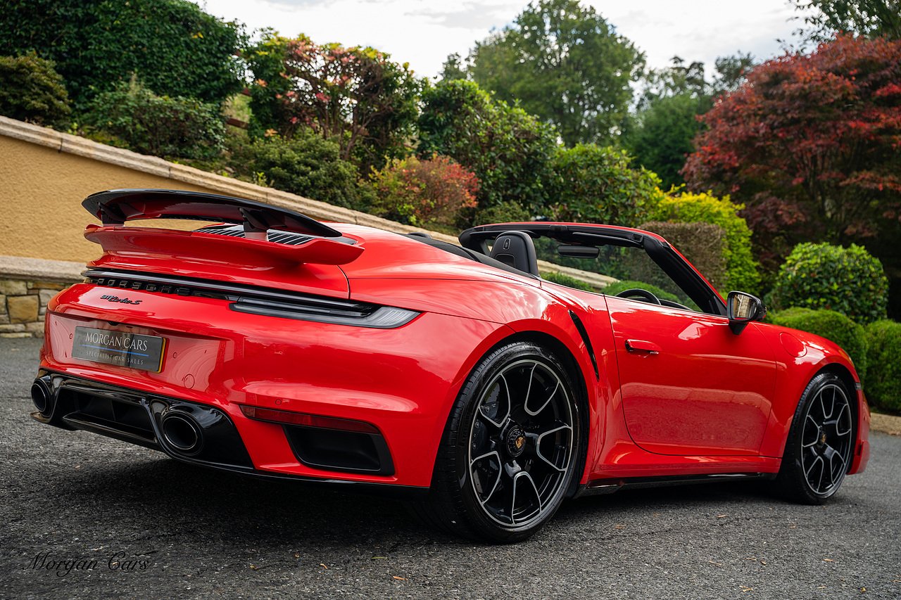 The Specification for this example includes Burmester® High-End Surround Sound System, Designation on Rear in High Gloss Black, Sport Exhaust System & Tailpipes in Gloss Black, Porsche Ceramic Composite Brakes (PCCB) with Calipers in High Gloss Black, Power Steering Plus, Wheels Painted in High Gloss Black & Polished, Steering Column Casing in Leather, Memory Package, Heated GT Sport Steering Wheel with Trim in Matte Carbon Fibre, Sport Seats Plus Backrest Shells in Leather with Matte Carbon Fibre Inlay, Front Axle Lift System, Exclusive Design Fuel Cap, Porsche Crest on Headrests, 20"/21" 911 Turbo S Exclusive Design Wheels, Heated and Ventilated Seats (Front), "KEYLESS ENTRY+GO", Exterior Mirror Upper Housing in Carbon Fibre and Lower Trim/Base in High Gloss Black, Deviated Stitching Interior Package, Door-Sill Guards in Matte Carbon Fibre, Illuminated, Lane Change Assist (LCA), LED-Matrix Design Headlights in Black incl. Porsche Dynamic Light System Plus (PDLS+) Central Tachometer in Guards Red, Exclusive Design Taillights, Night Vision Assist, , Surround View, "PORSCHE" Logo on Rear in High Gloss Black, Lane Keep Assist (LKA) incl. Traffic Sign Recognition, Ambient Lighting, Under Door Puddle Light Projectors, Rear Side Air Intakes in High Gloss Black, 911 Turbo SportDesign Package in High Gloss Black, Sport Chrono Stopwatch Dial in Guards RedRear Axle Steering, Porsche Active Suspension Management (PASM), Porsche Dynamic Chassis Control (PDCC), Leather Package, Heated Seats (Front), Auto-Dimming Mirrors, Interior Trim Inlays in Matte Carbon Fibre, Power Folding Exterior Mirrors, Navigation Module for Porsche Communication Management (PCM), Sport Chrono Package, Apple CarPlay® incl. Siri®, 8-speed Porsche Doppelkupplung (PDK) Porsche Torque Vectoring Plus (PTV+), Adaptive Sport Seats Plus (18-way) with Memory Package, SportDesign Side Skirts in High Gloss Black & much more, Inquire for more details and Spec Sheet