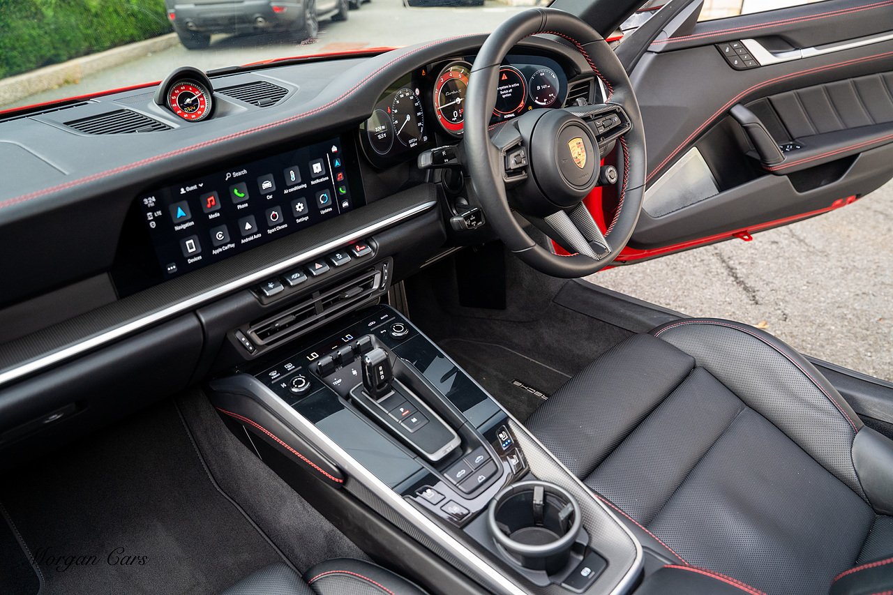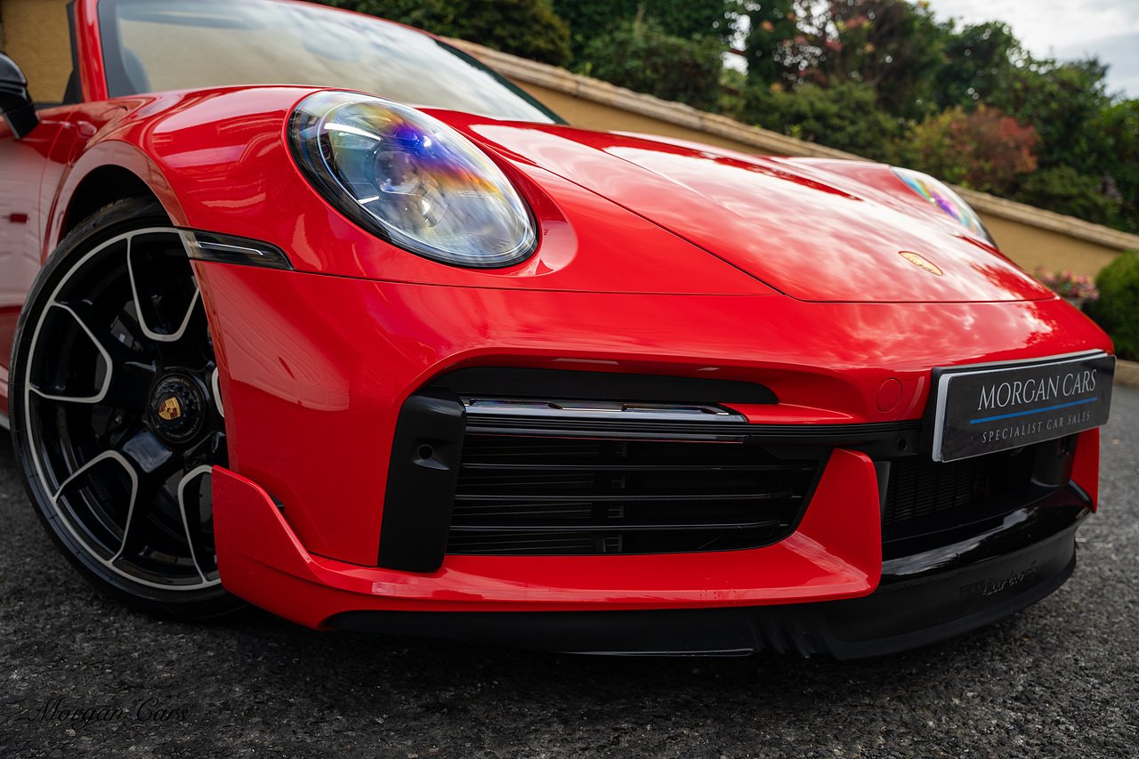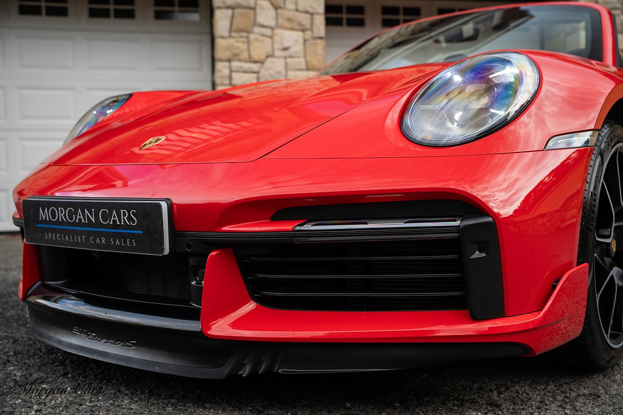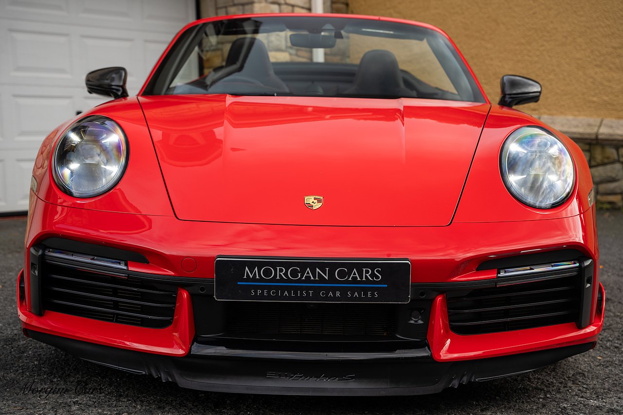 Morgan Cars are proud to present our Stunning Guades Red Porsche 911 992 Turbo S with contrasting Ebony Black Leather Interior and Carmine Stitching, Carbon Fibre interior trim and Porsche Guards Red elements throughout.