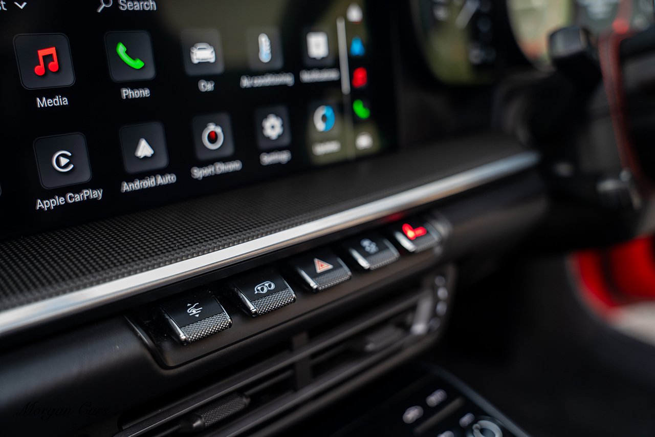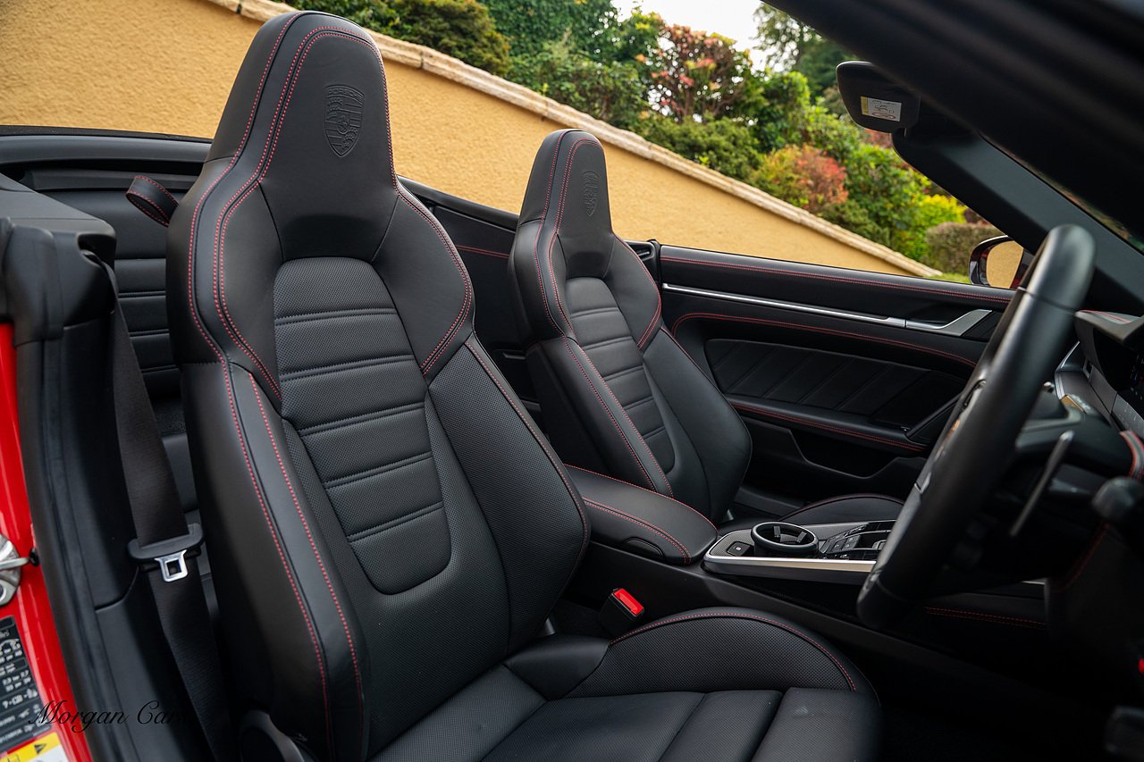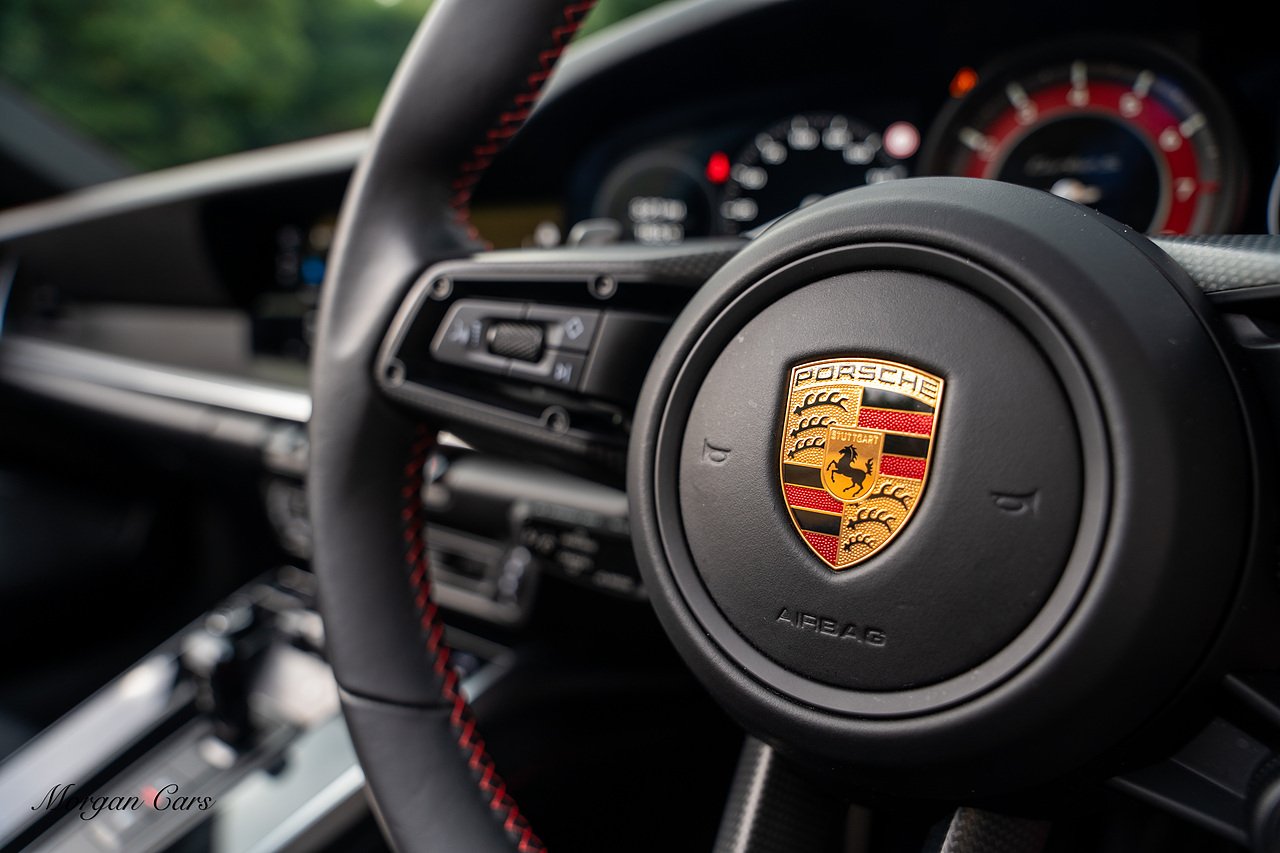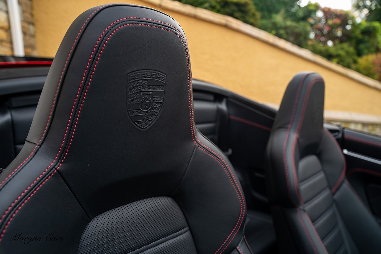 Morgan Cars are proud to present our Stunning Guades Red Porsche 911 992 Turbo S with contrasting Ebony Black Leather Interior and Carmine Stitching, Carbon Fibre interior trim and Porsche Guards Red elements throughout.