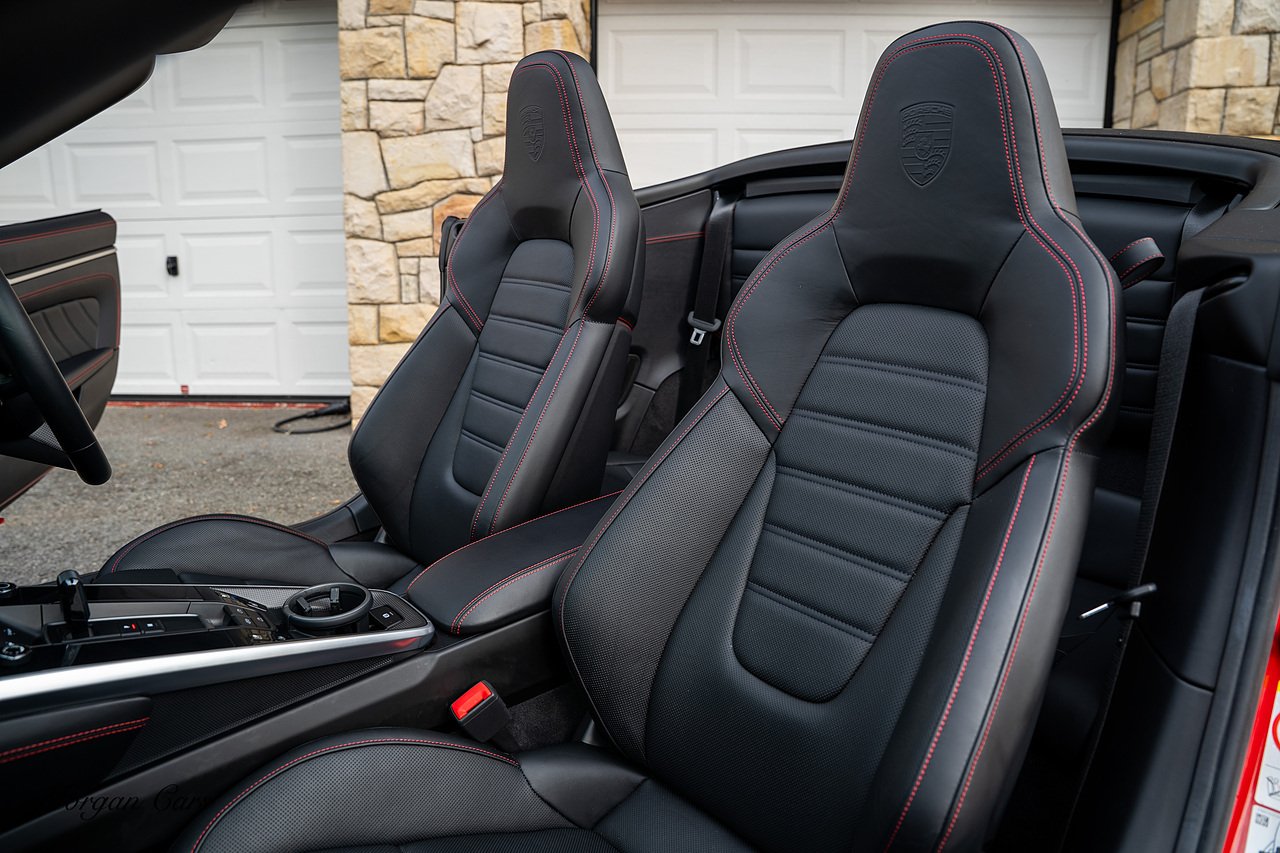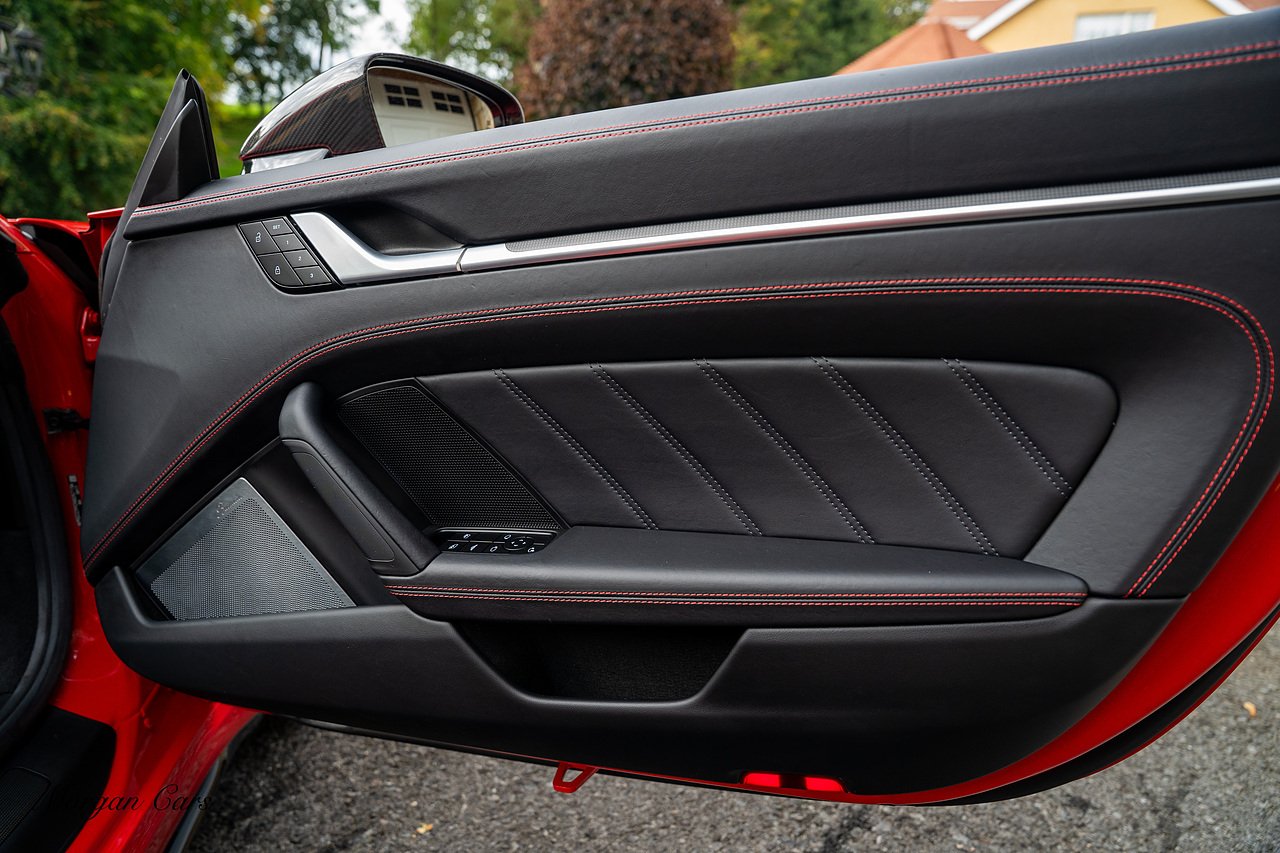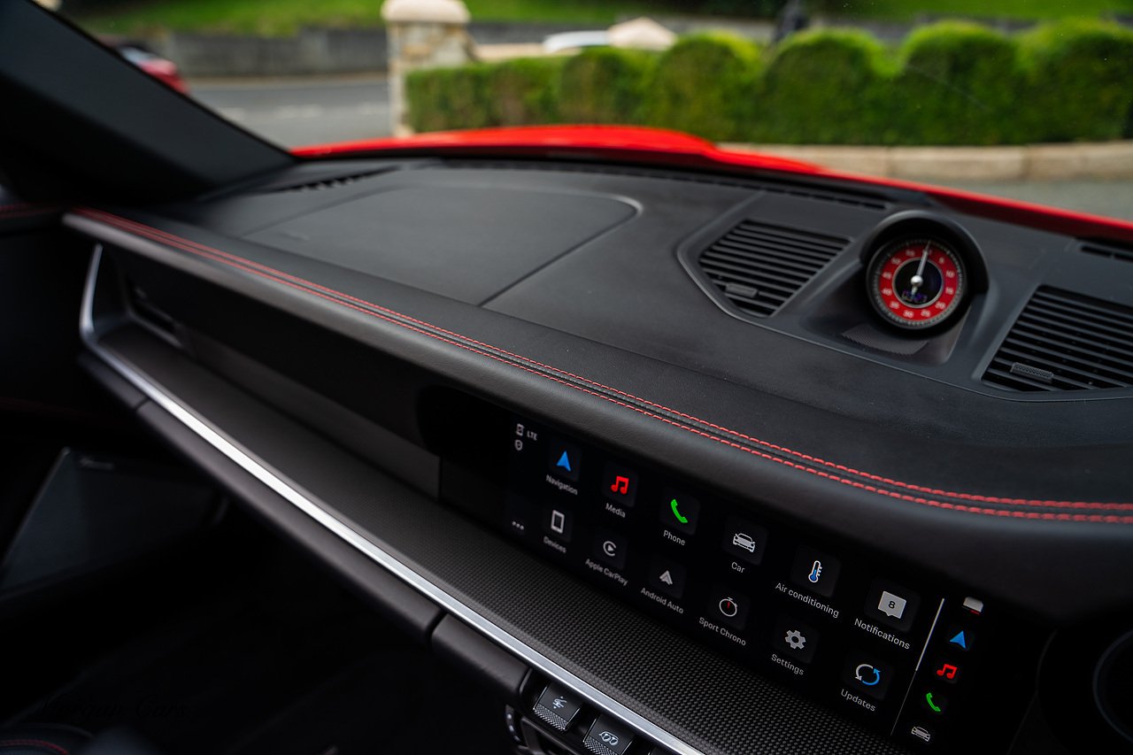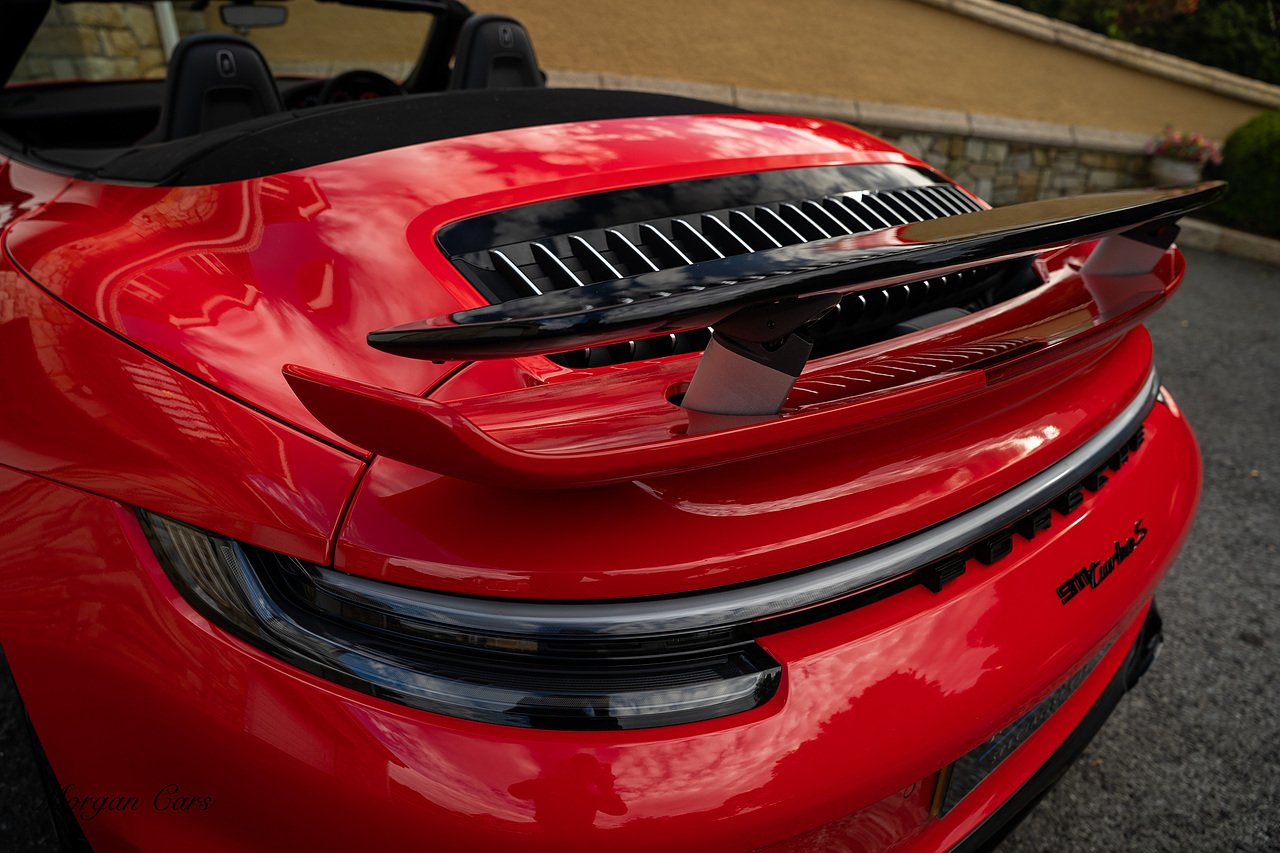 Morgan Cars are proud to present our Stunning Guades Red Porsche 911 992 Turbo S with contrasting Ebony Black Leather Interior and Carmine Stitching, Carbon Fibre interior trim and Porsche Guards Red elements throughout.