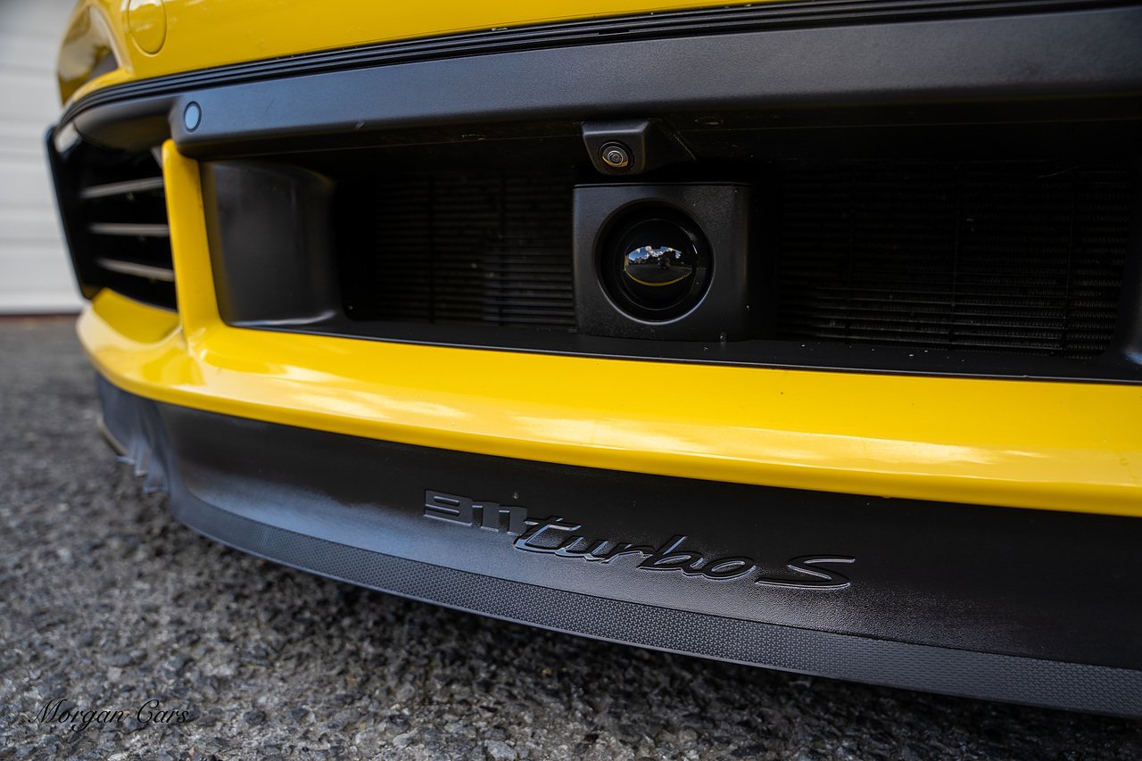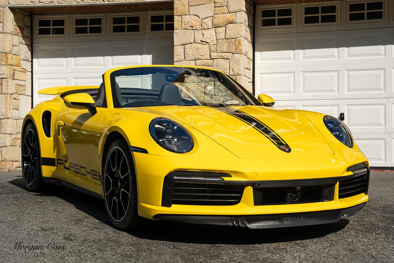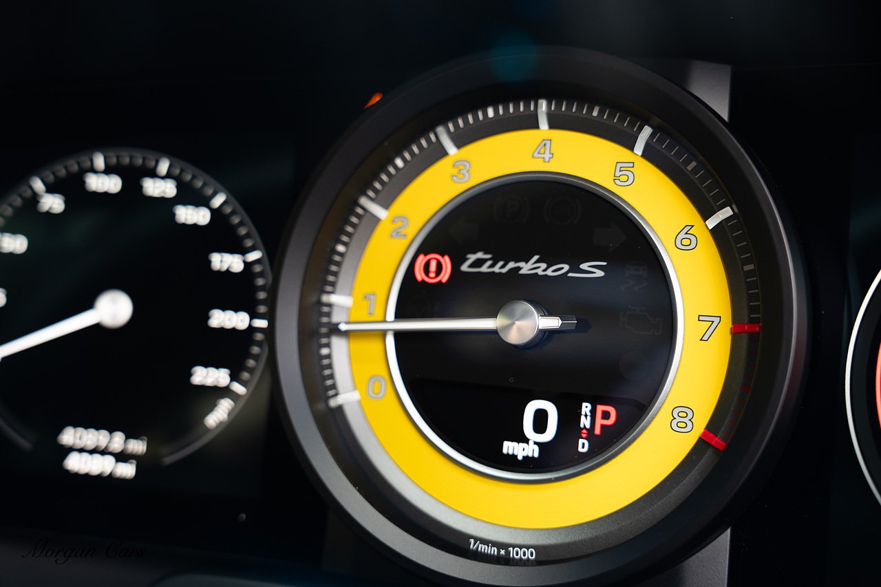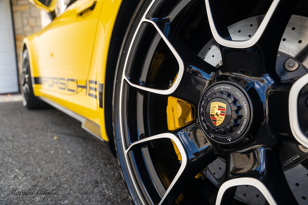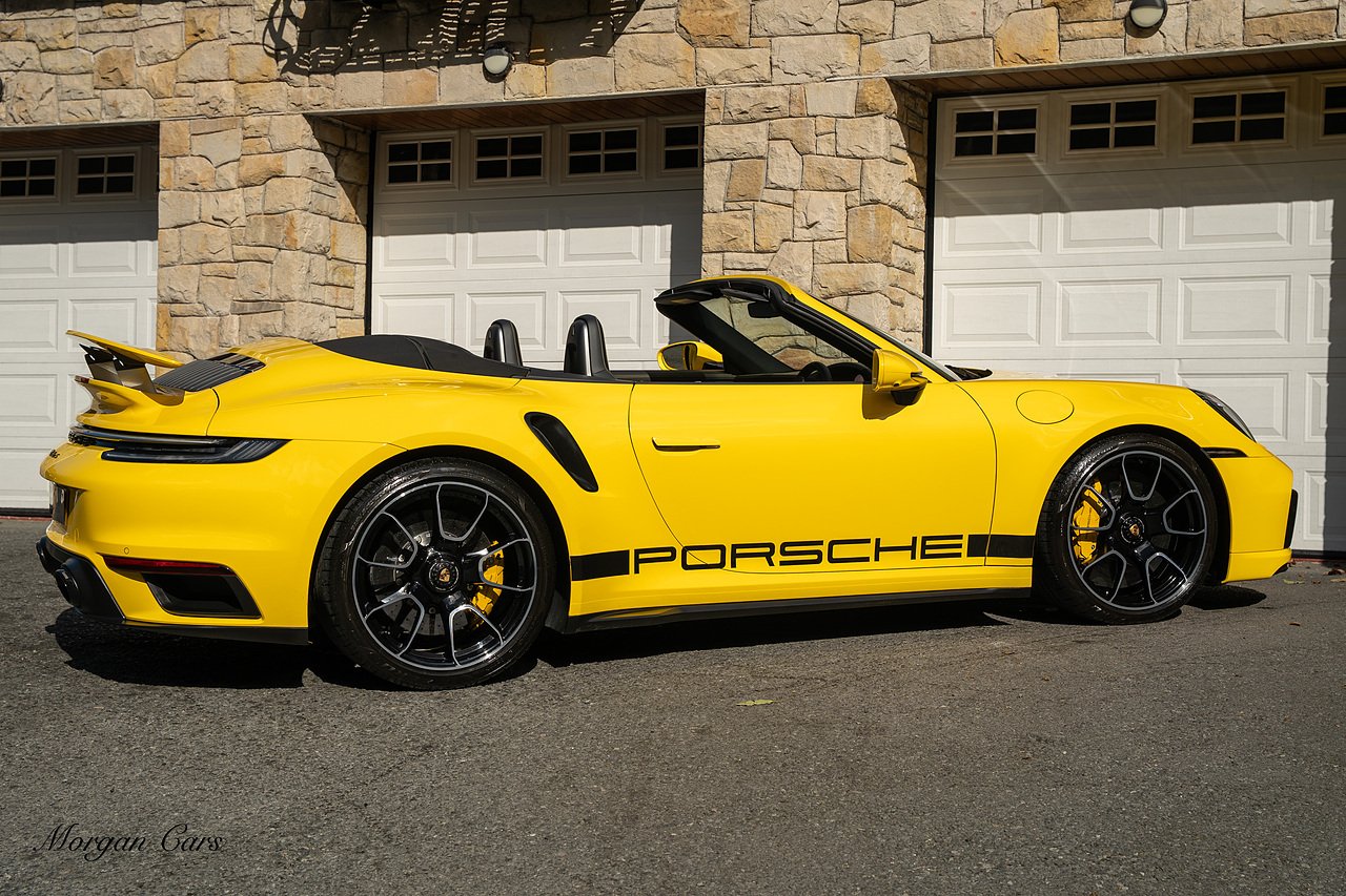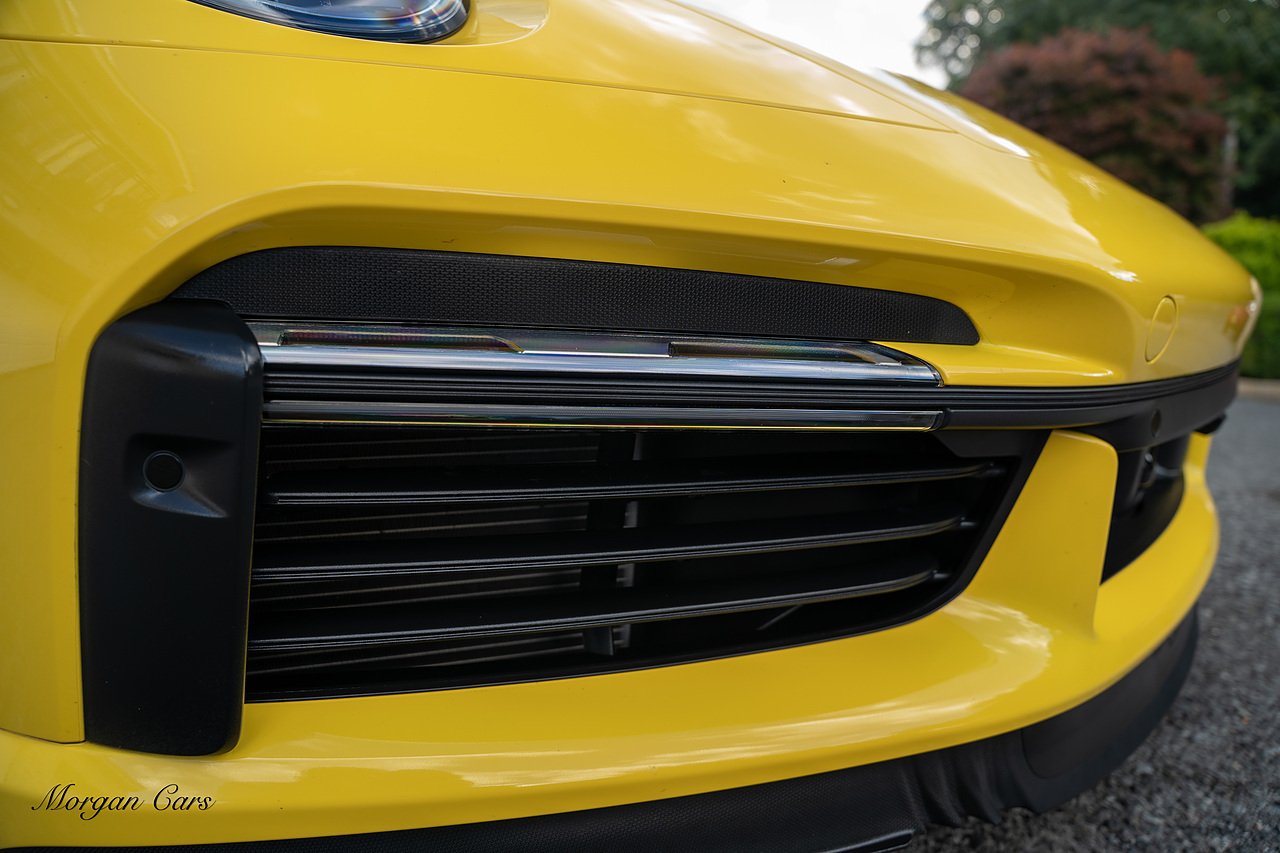 Morgan Cars are proud to present this Huge Spec Porsche 992 Turbo S finished in Racing Yellow with full Black smooth finish leather interior, Specification is Fantastic on this Turbo S and includes LED Matrix headlights in Black with Porsche Dynamic light system plus, Front Axle Lifting System, 18 Way adaptive Memory front sports seats, Bose Sound System, Akrapovic Titanium Sports Exhaust system, Front end Paint Protection Film , 20/21" Porsche exclusive design alloy wheels, Interior package in contrasting Racing yellow stitching, Adaptive Cruise Control, Porsche Motorsport Side Decals and Porsche Bonnet Stripe in Gloss Black, Surround View Camera system, Lane change assist, Heated GT Sports steering wheel, Power steering plus, Model designation on rear in gloss black, Exclusive Design Tail lights, Ambient interior lighting, Chrono dial in Racing yellow, Central Tachometer in Racing Yellow, Rear Axle steering, Porsche Dynamic chassis control Sport, Interior trim inlays in Aluminium.