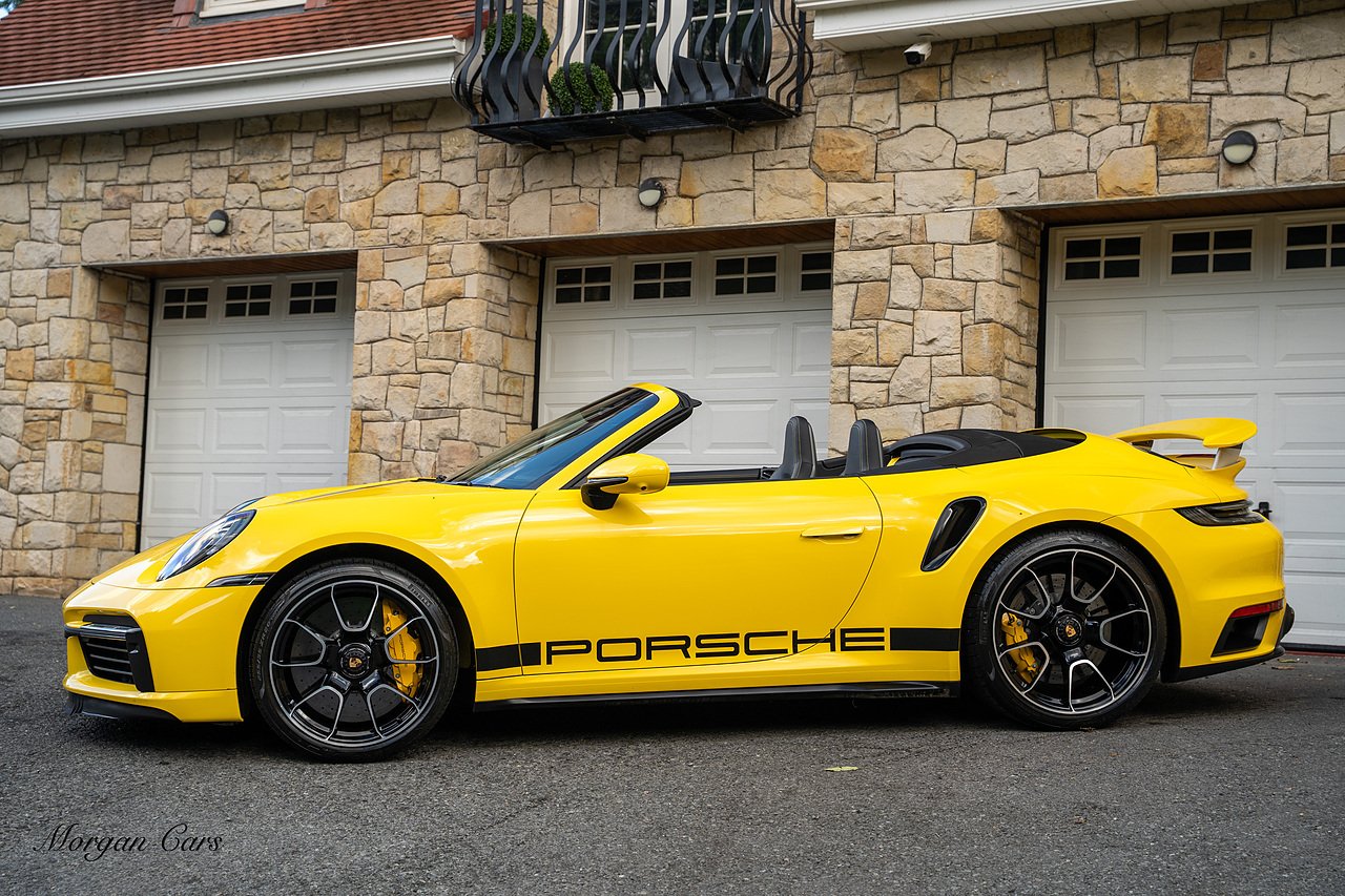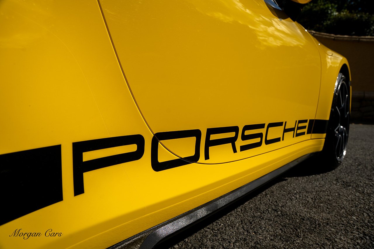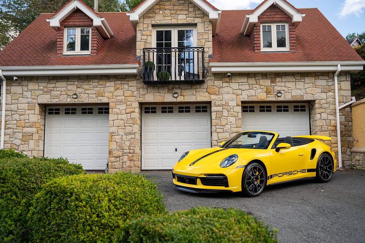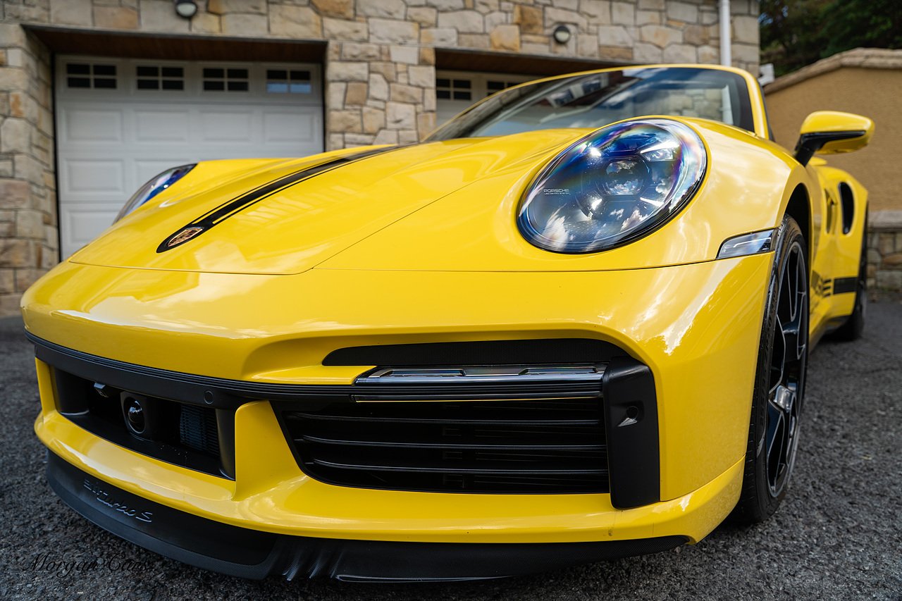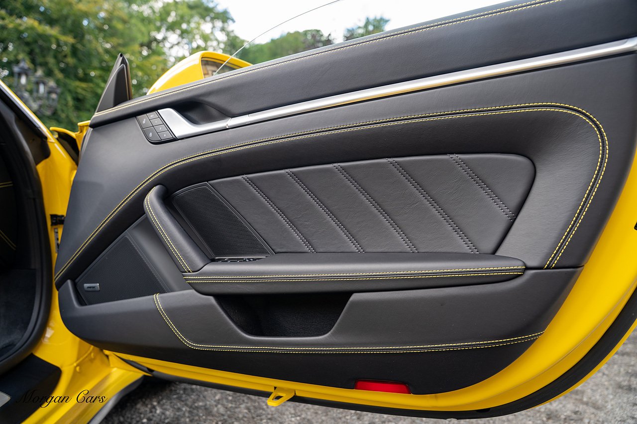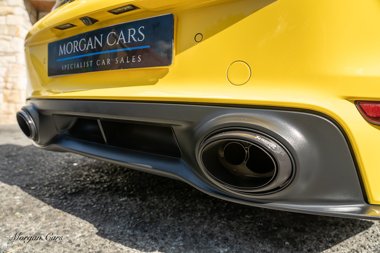Morgan Cars are proud to present this Huge Spec Porsche 992 Turbo S finished in Racing Yellow with full Black smooth finish leather interior, Specification is Fantastic on this Turbo S and includes LED Matrix headlights in Black with Porsche Dynamic light system plus, Front Axle Lifting System, 18 Way adaptive Memory front sports seats, Bose Sound System, Akrapovic Titanium Sports Exhaust system, Front end Paint Protection Film , 20/21" Porsche exclusive design alloy wheels, Interior package in contrasting Racing yellow stitching, Adaptive Cruise Control, Porsche Motorsport Side Decals and Porsche Bonnet Stripe in Gloss Black, Surround View Camera system, Lane change assist, Heated GT Sports steering wheel, Power steering plus, Model designation on rear in gloss black, Exclusive Design Tail lights, Ambient interior lighting, Chrono dial in Racing yellow, Central Tachometer in Racing Yellow, Rear Axle steering, Porsche Dynamic chassis control Sport, Interior trim inlays in Aluminium.