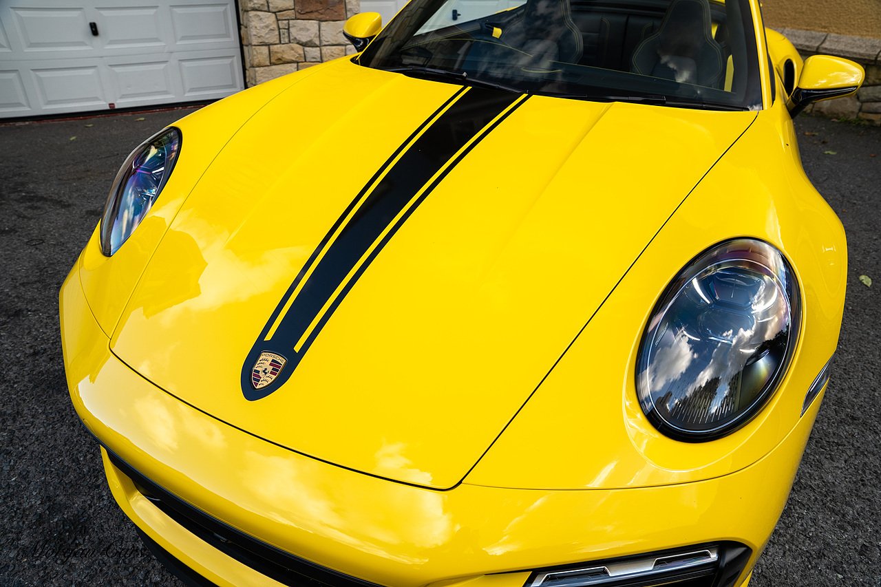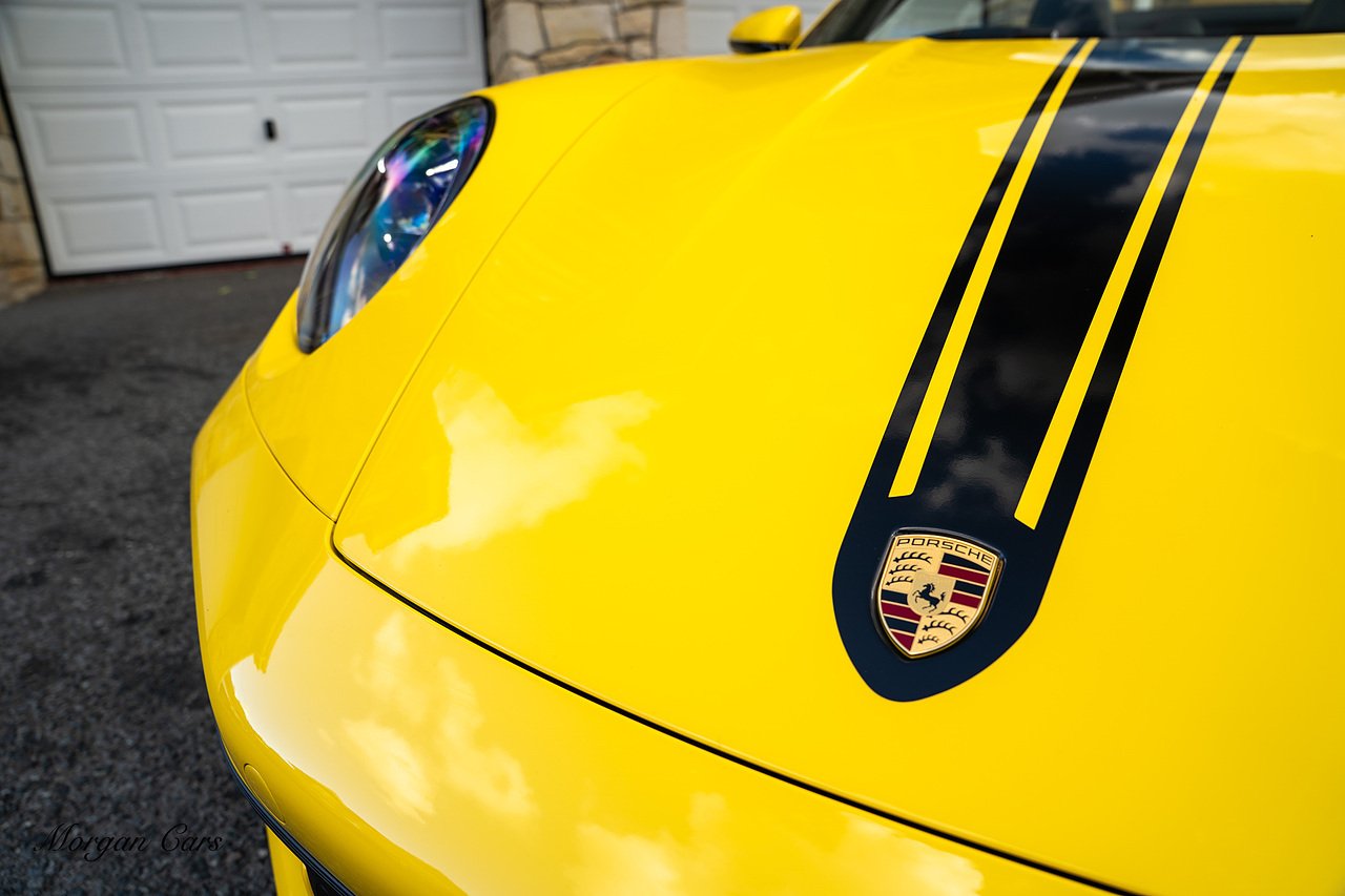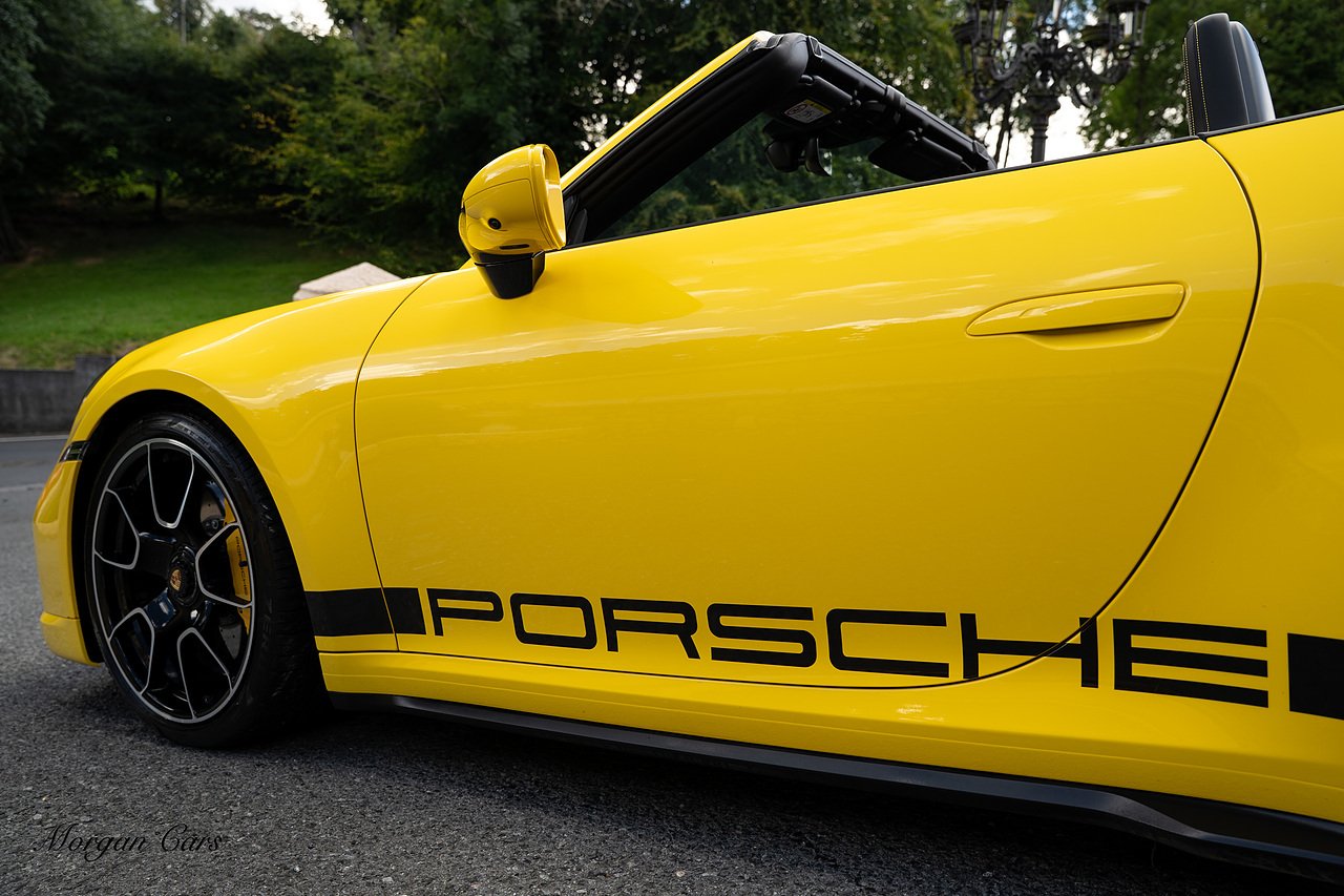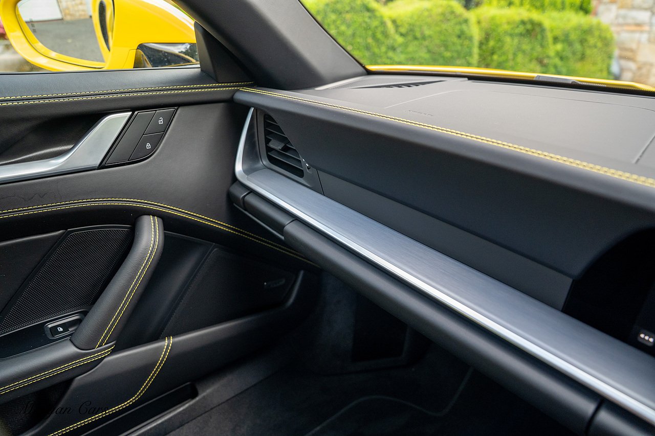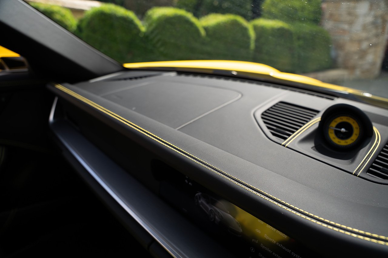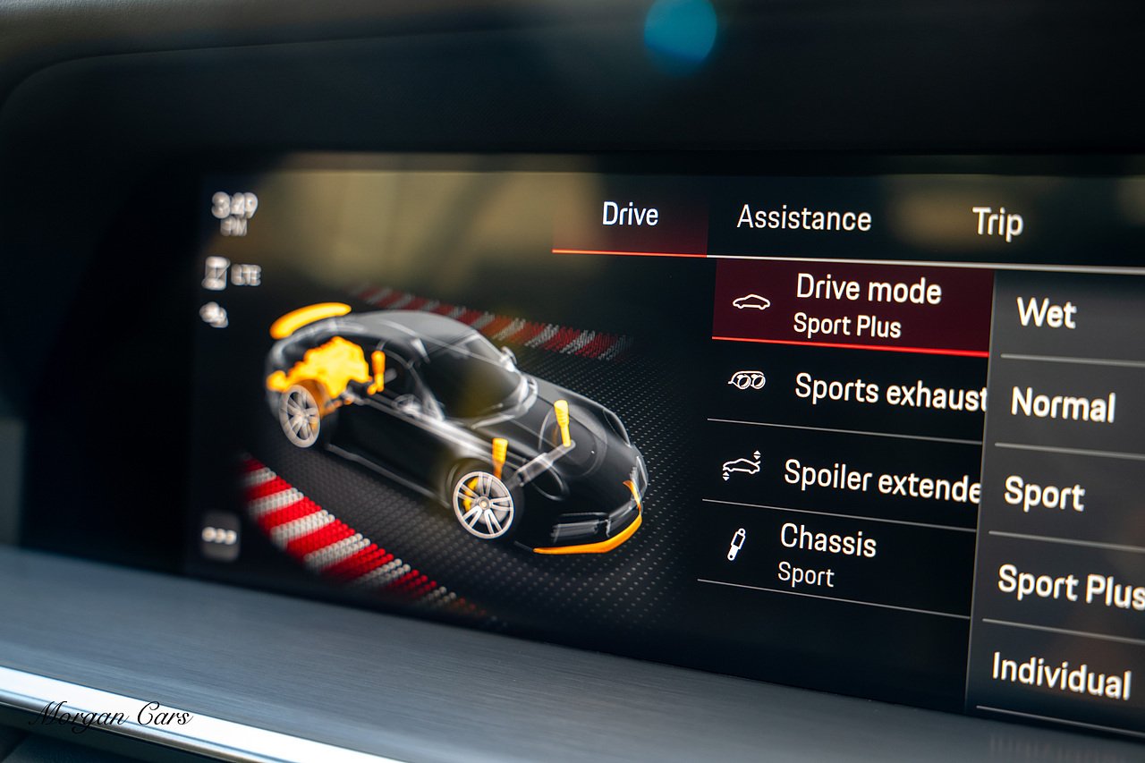 Morgan Cars are proud to present this Huge Spec Porsche 992 Turbo S finished in Racing Yellow with full Black smooth finish leather interior, Specification is Fantastic on this Turbo S and includes LED Matrix headlights in Black with Porsche Dynamic light system plus, Front Axle Lifting System, 18 Way adaptive Memory front sports seats, Bose Sound System, Akrapovic Titanium Sports Exhaust system, Front end Paint Protection Film , 20/21" Porsche exclusive design alloy wheels, Interior package in contrasting Racing yellow stitching, Adaptive Cruise Control, Porsche Motorsport Side Decals and Porsche Bonnet Stripe in Gloss Black, Surround View Camera system, Lane change assist, Heated GT Sports steering wheel, Power steering plus, Model designation on rear in gloss black, Exclusive Design Tail lights, Ambient interior lighting, Chrono dial in Racing yellow, Central Tachometer in Racing Yellow, Rear Axle steering, Porsche Dynamic chassis control Sport, Interior trim inlays in Aluminium.