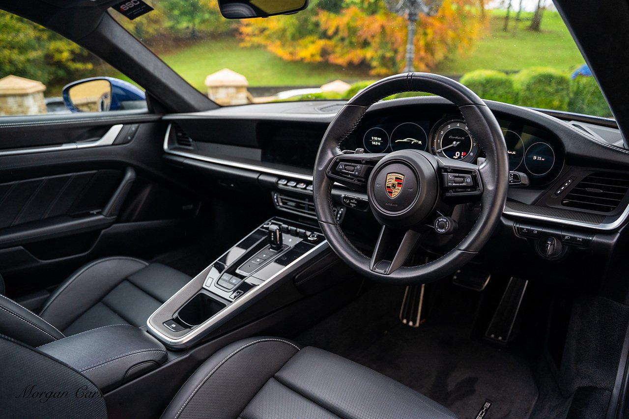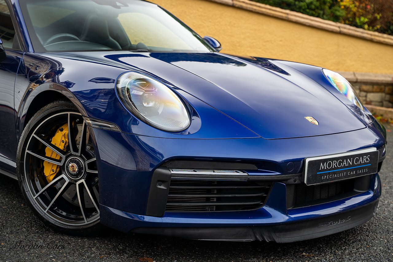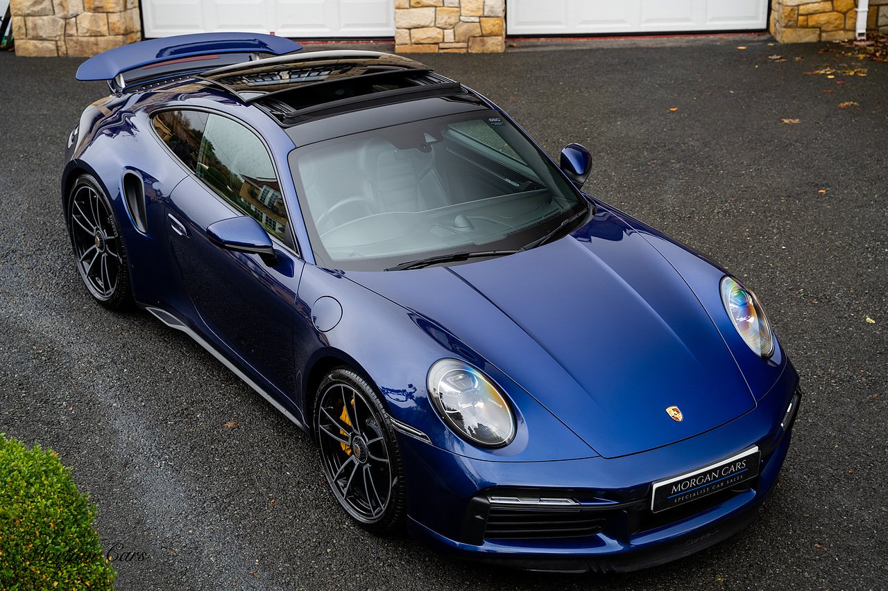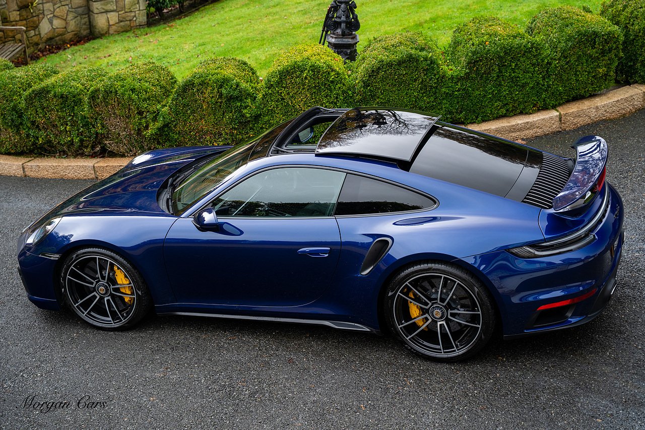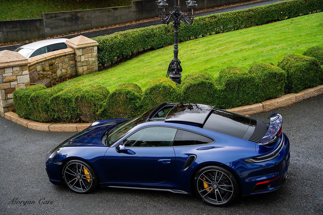 Morgan Cars are proud to present our Beautiful Porsche 911 992 Turbo S, Finished in Gentian Blue Metallic with contrasting Black Leather interior with Heated and Ventilated Function and Carbon Fibre interior trim.