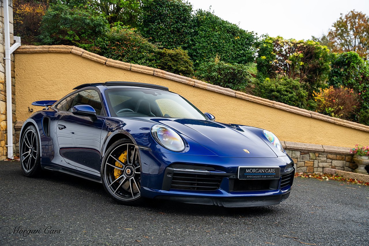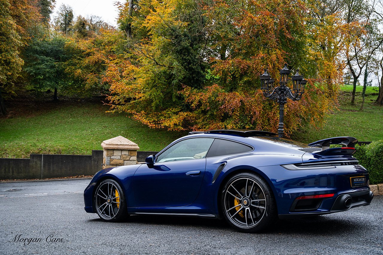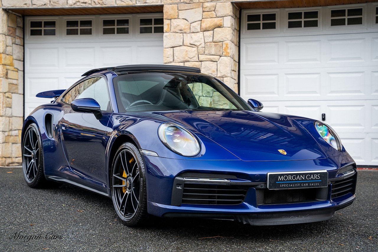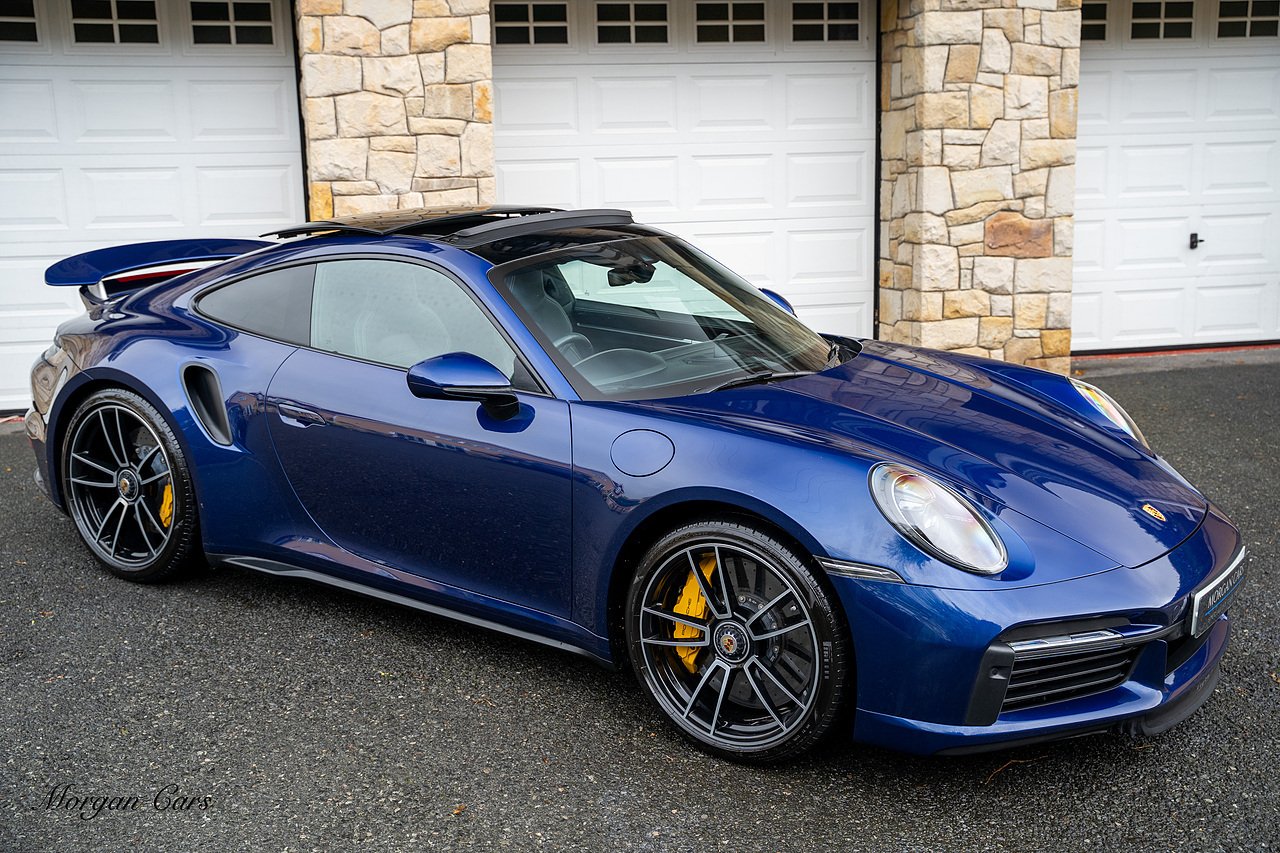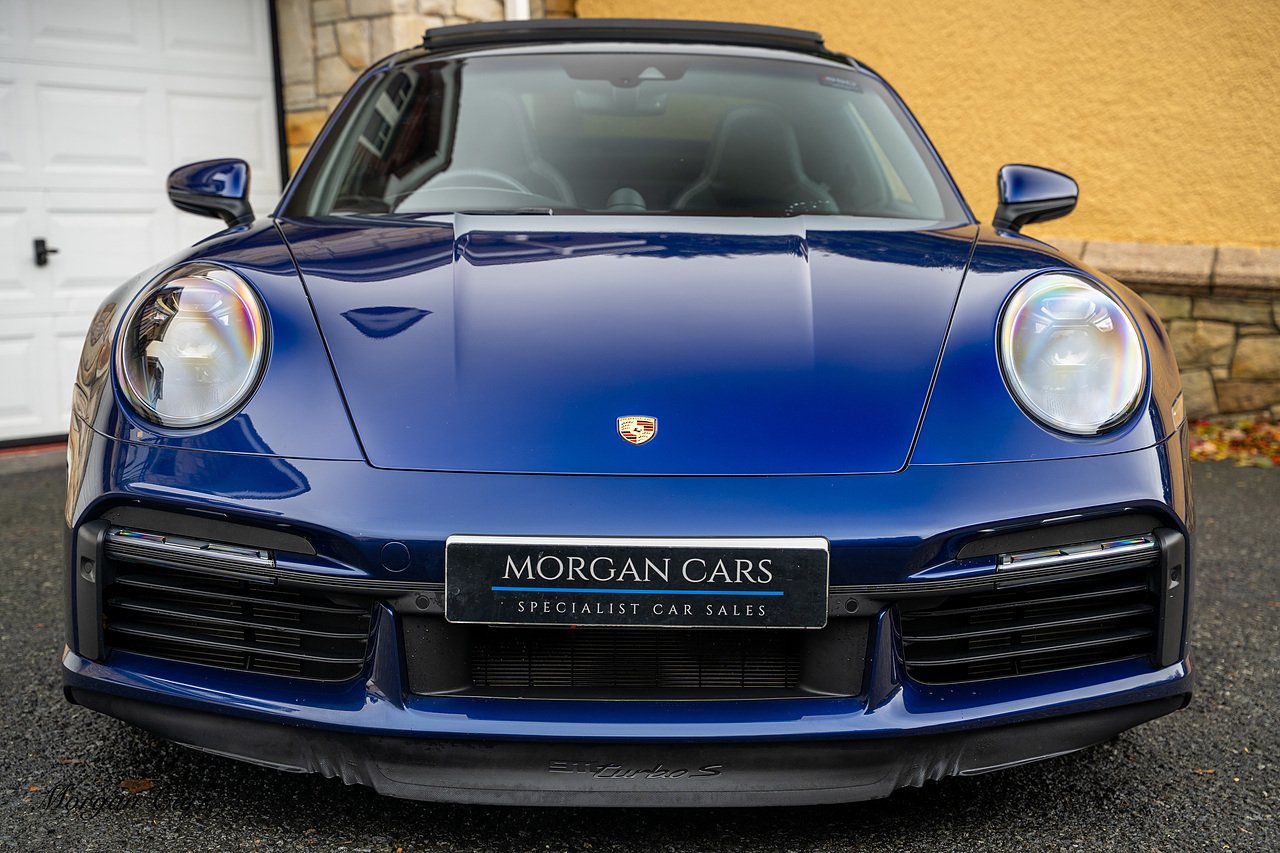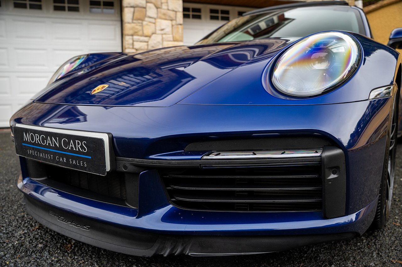 Morgan Cars are proud to present our Beautiful Porsche 911 992 Turbo S, Finished in Gentian Blue Metallic with contrasting Black Leather interior with Heated and Ventilated Function and Carbon Fibre interior trim.