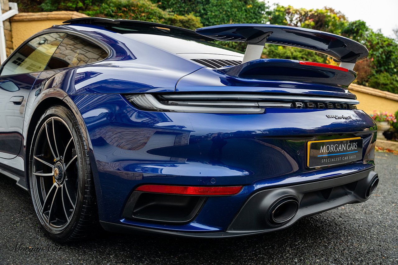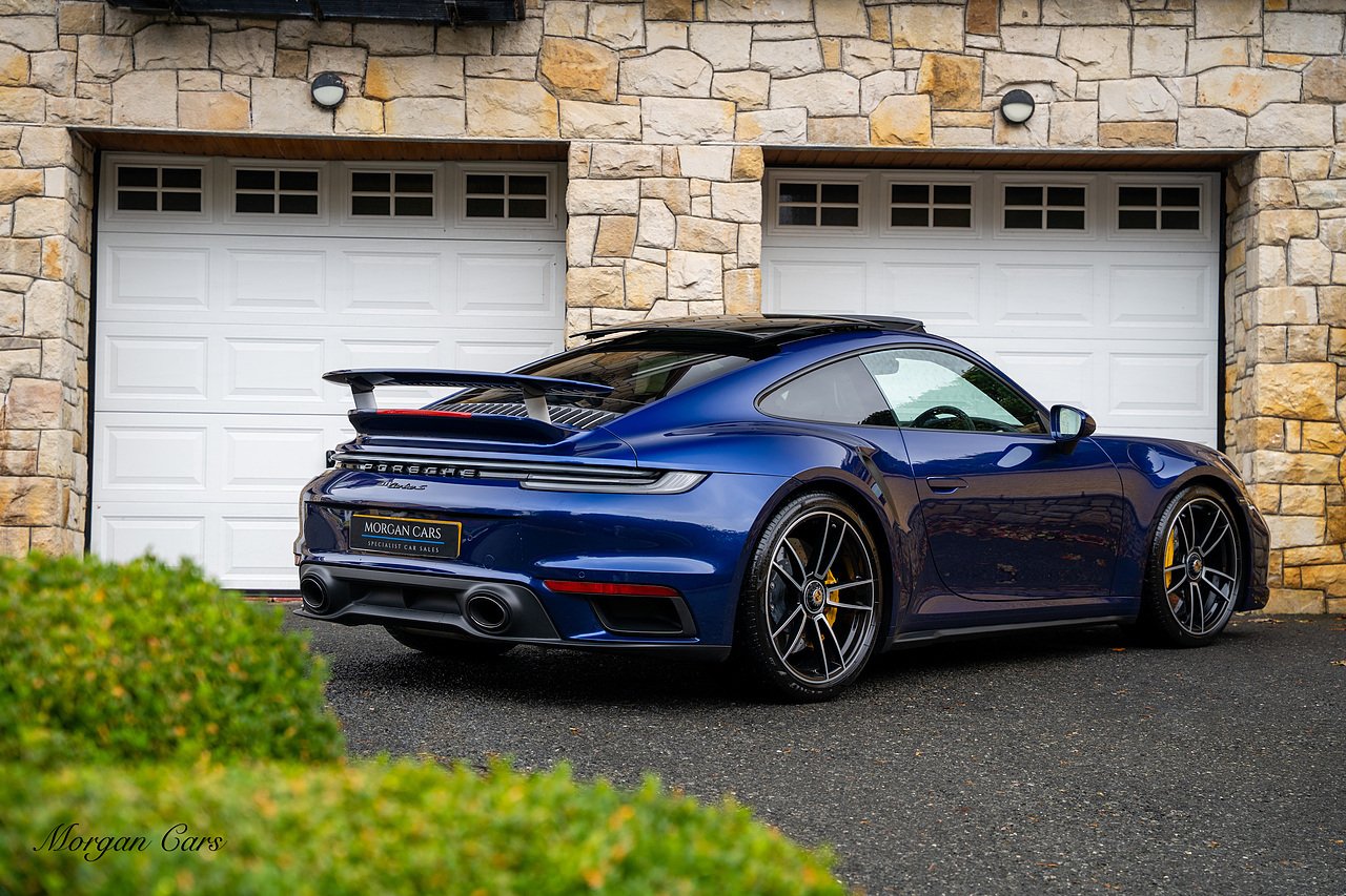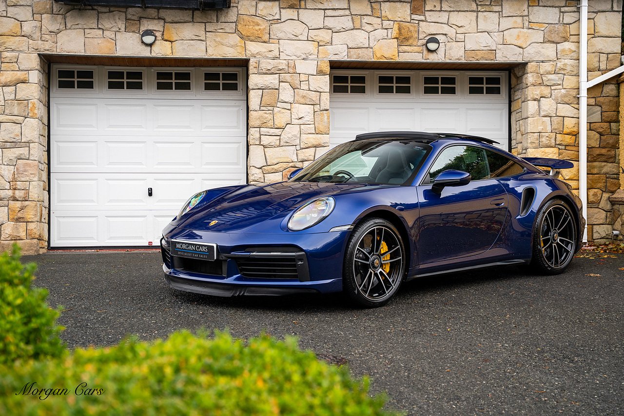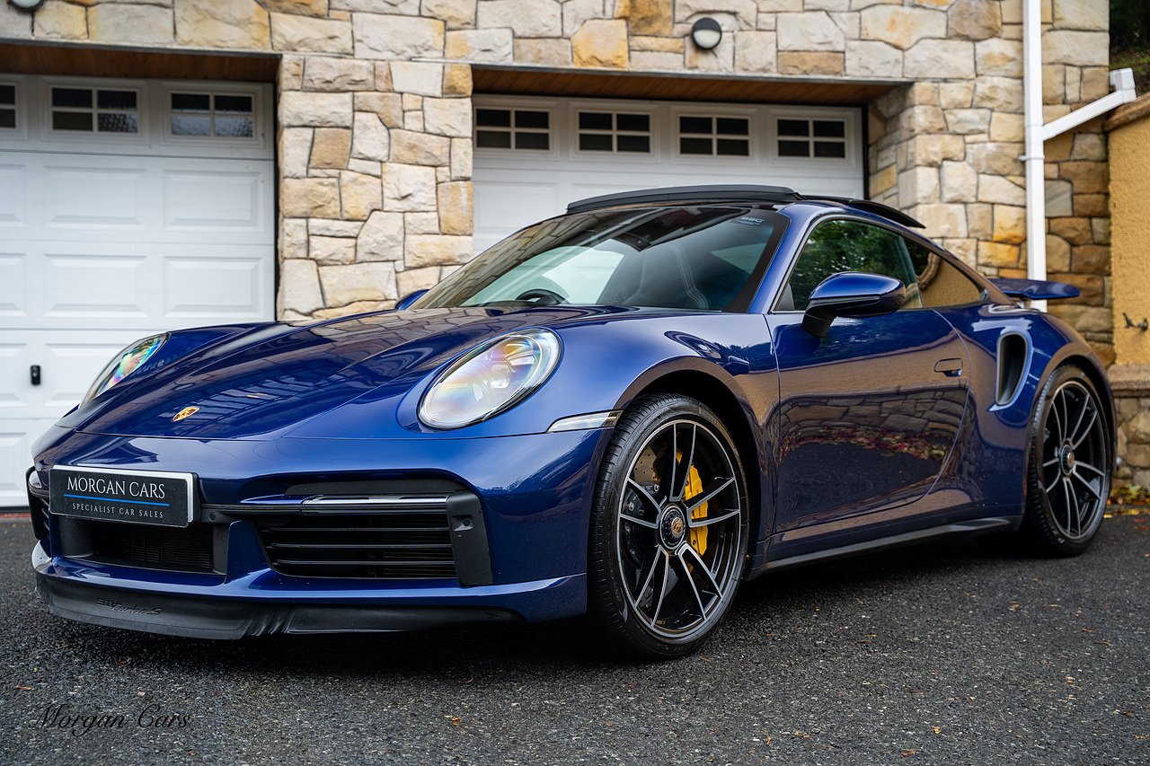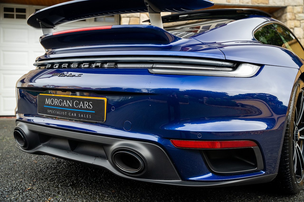 Morgan Cars are proud to present our Beautiful Porsche 911 992 Turbo S, Finished in Gentian Blue Metallic with contrasting Black Leather interior with Heated and Ventilated Function and Carbon Fibre interior trim.