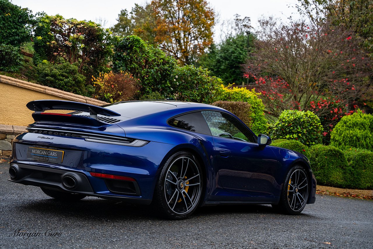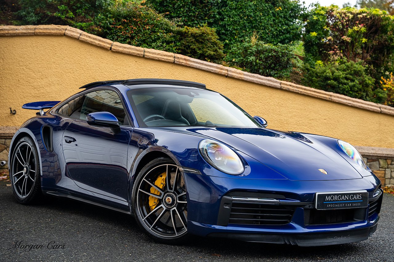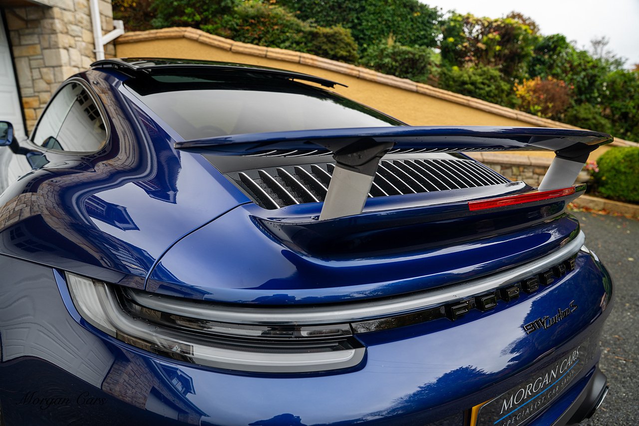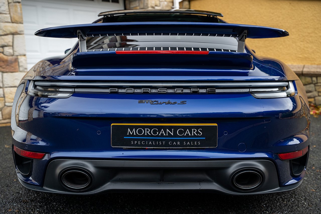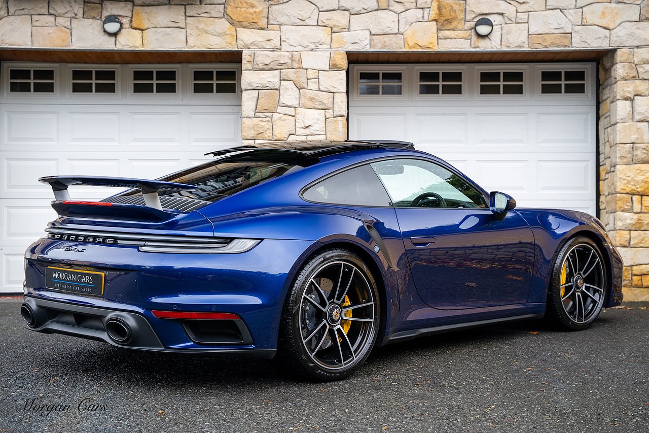 Morgan Cars are proud to present our Beautiful Porsche 911 992 Turbo S, Finished in Gentian Blue Metallic with contrasting Black Leather interior with Heated and Ventilated Function and Carbon Fibre interior trim.