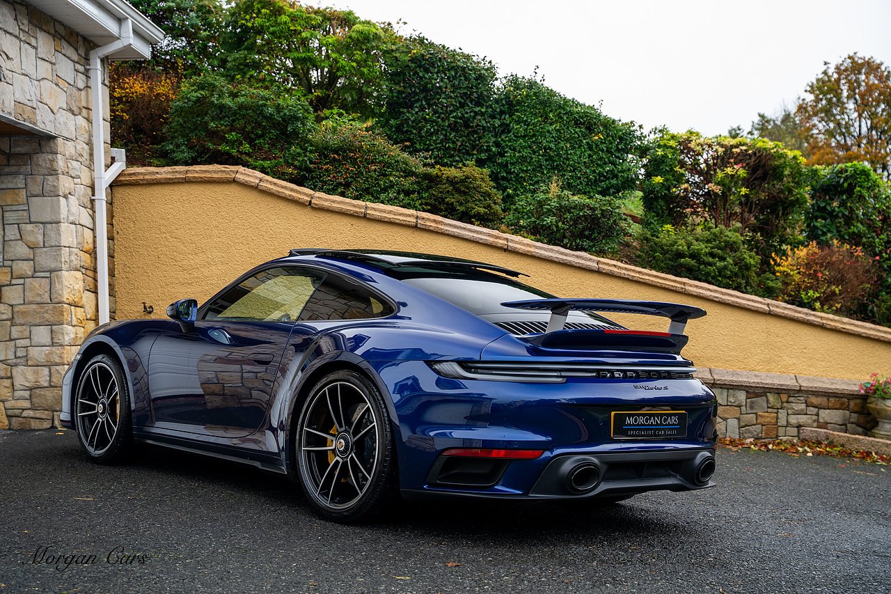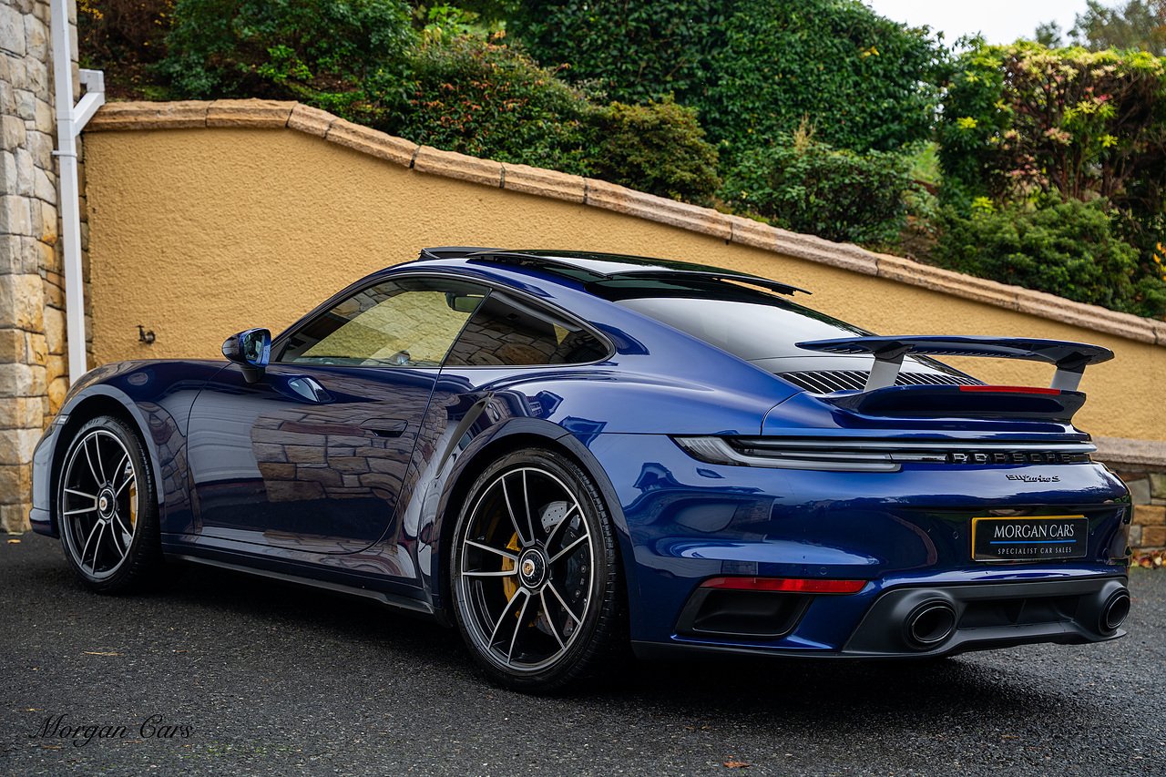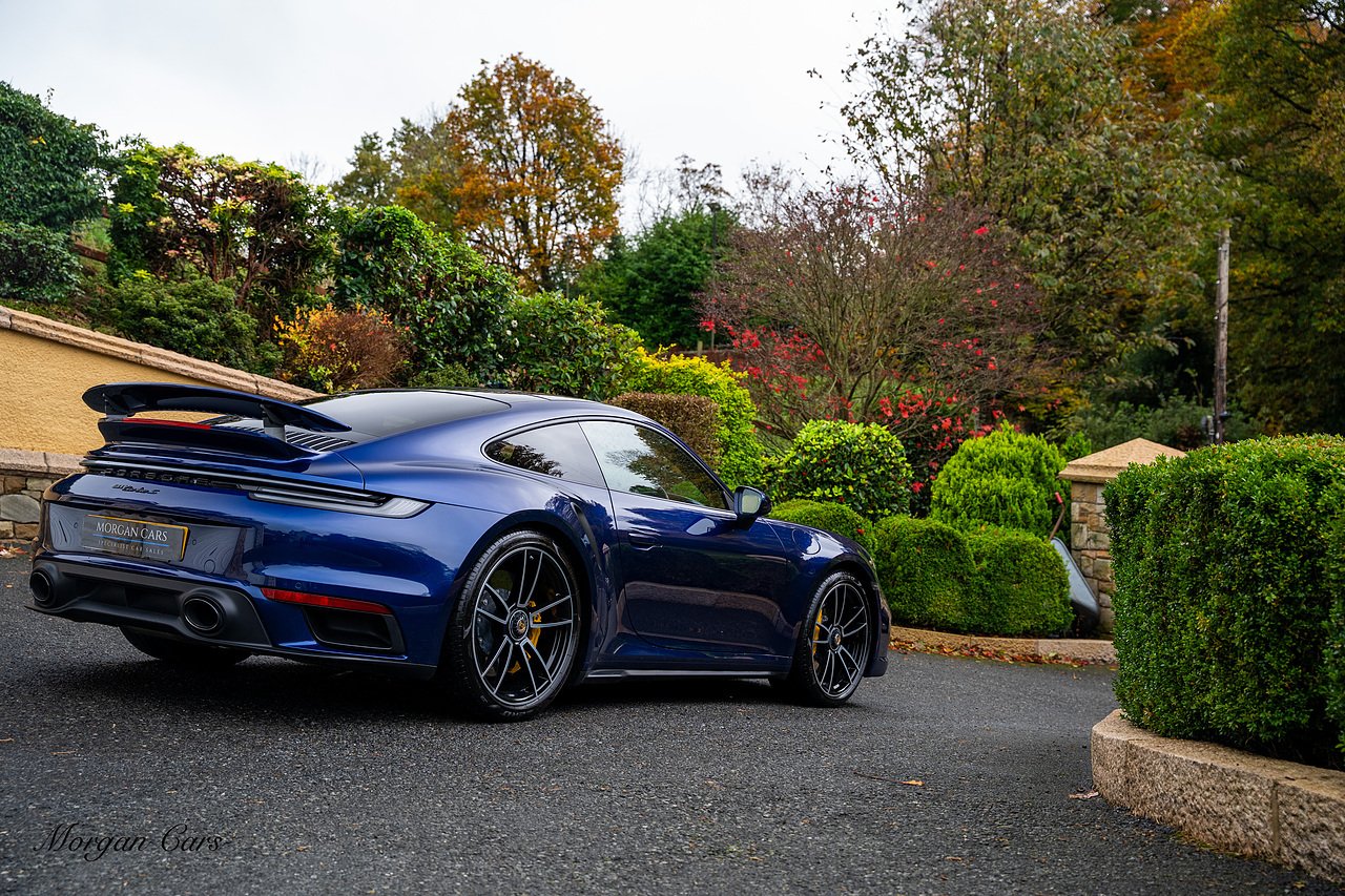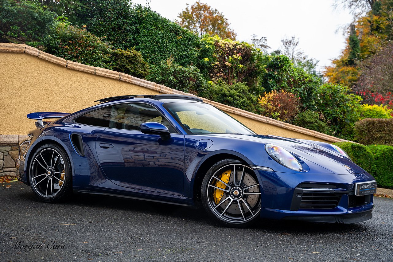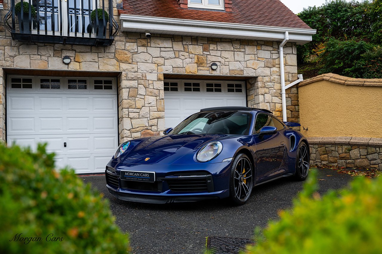 Morgan Cars are proud to present our Beautiful Porsche 911 992 Turbo S, Finished in Gentian Blue Metallic with contrasting Black Leather interior with Heated and Ventilated Function and Carbon Fibre interior trim.