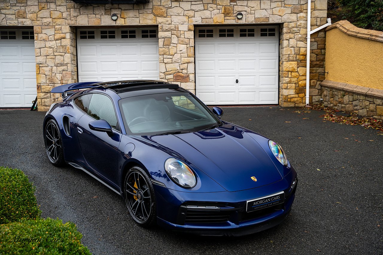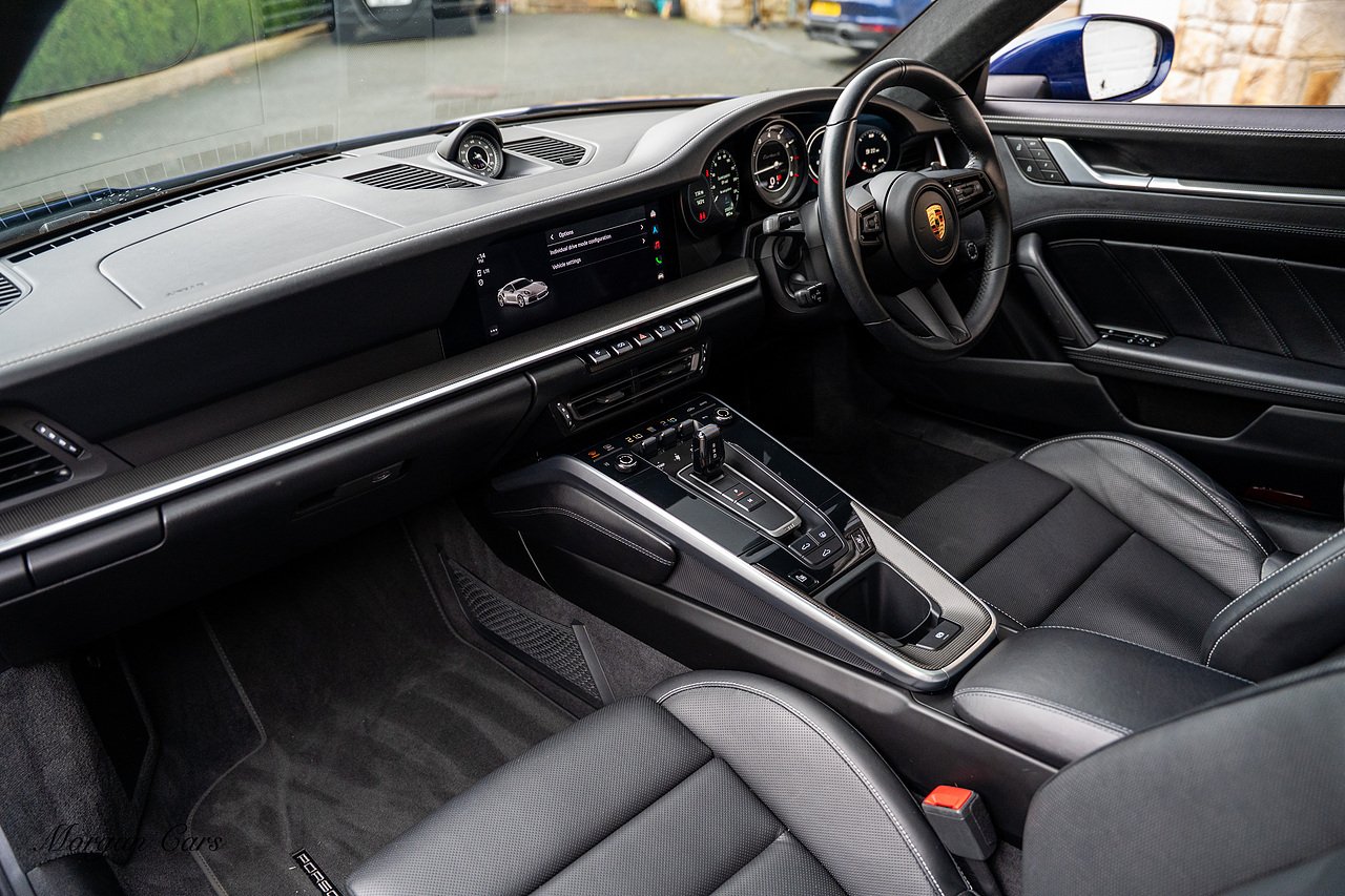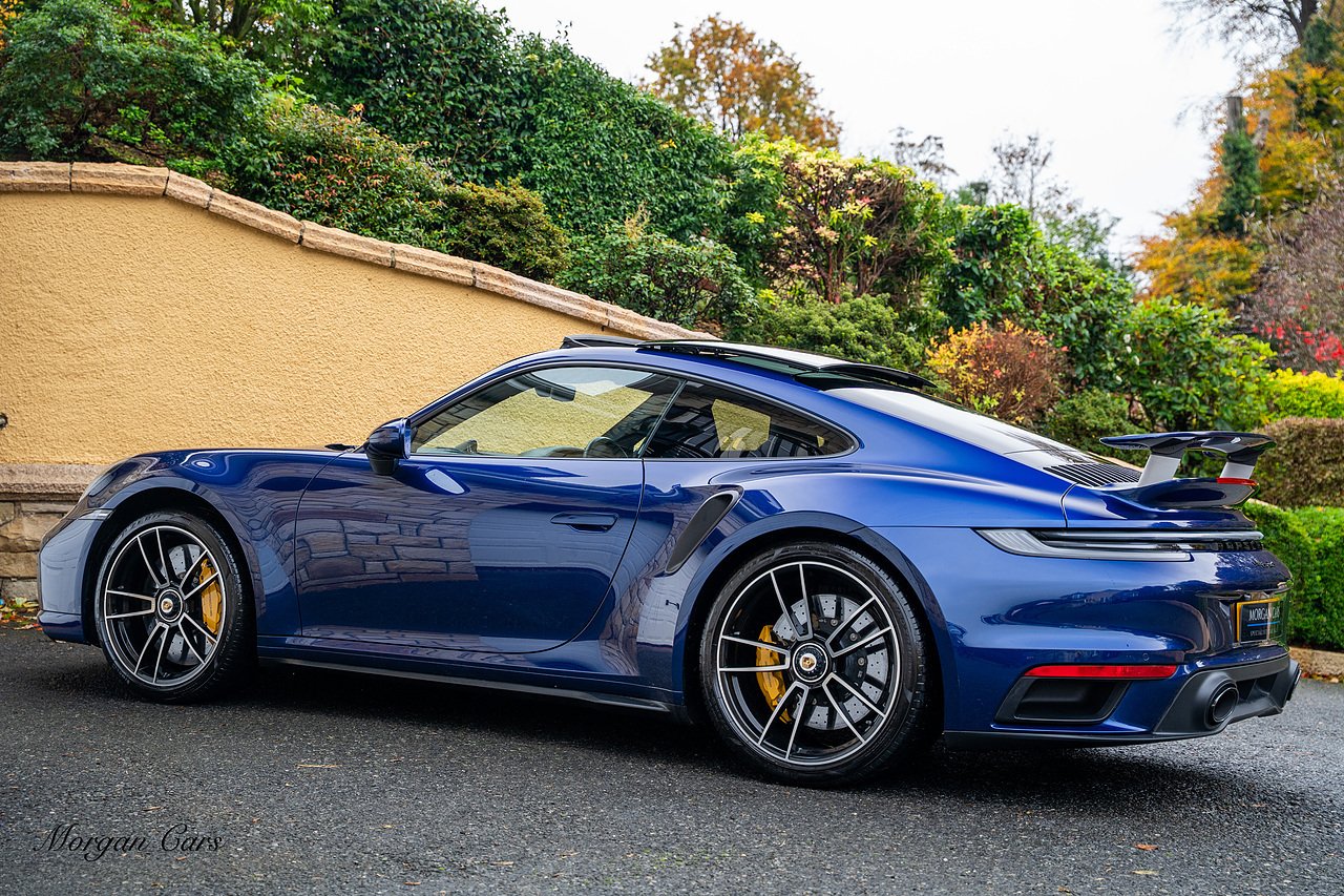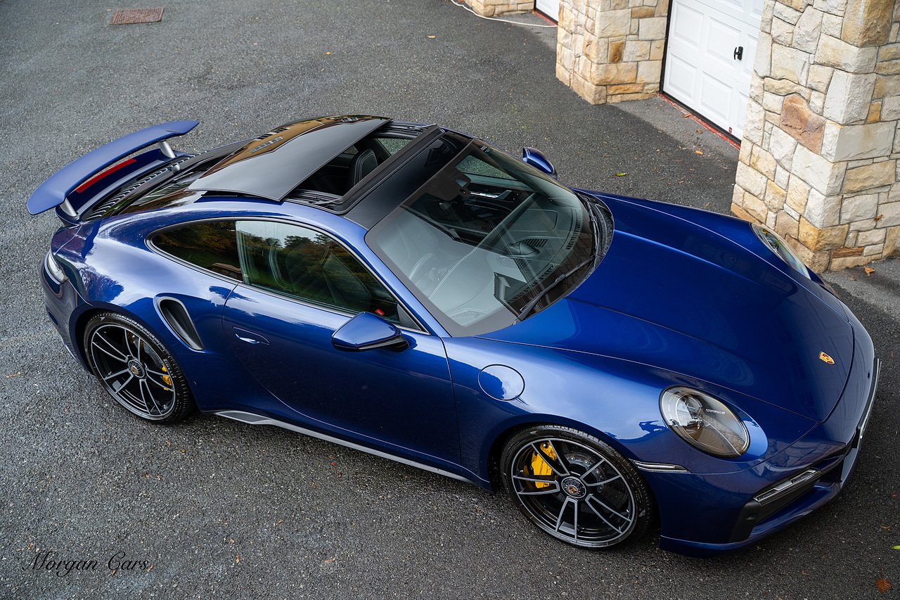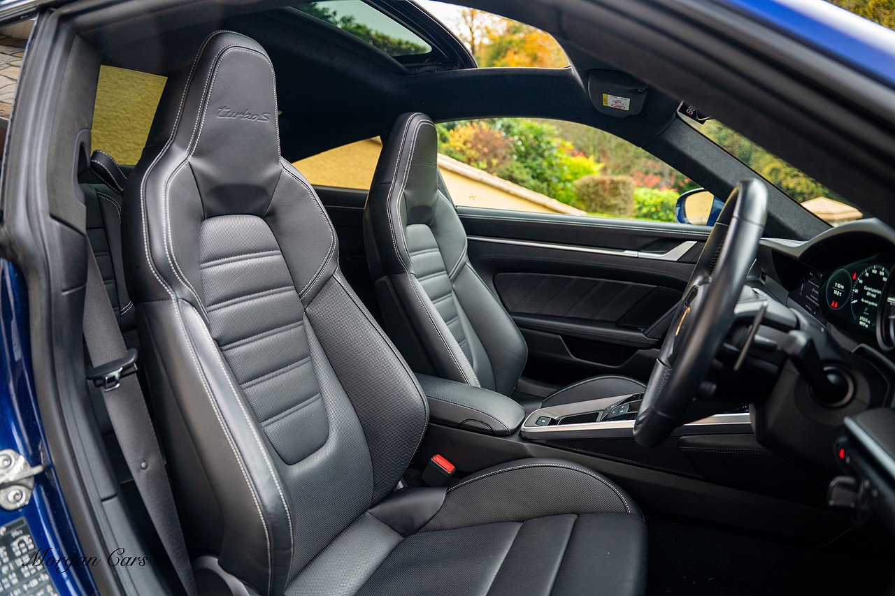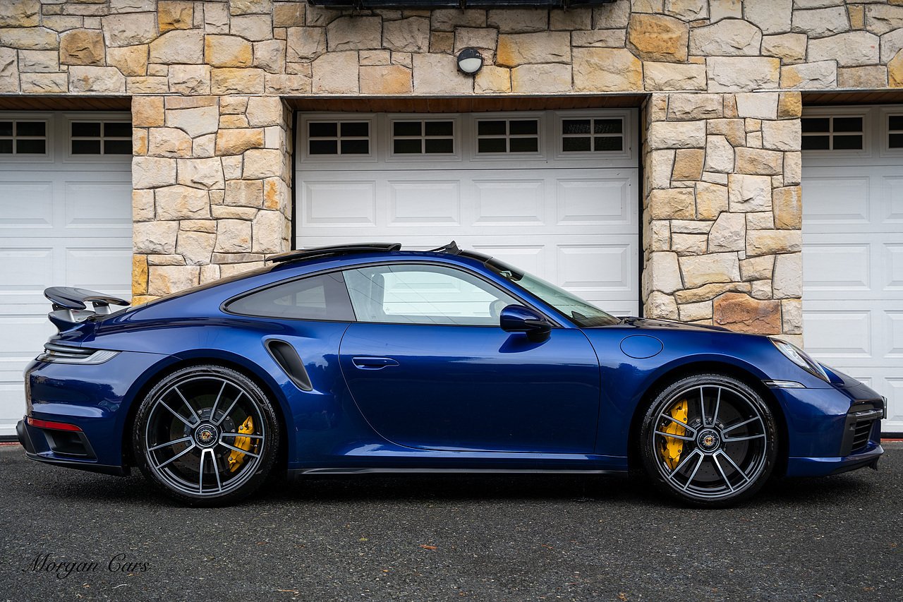 Morgan Cars are proud to present our Beautiful Porsche 911 992 Turbo S, Finished in Gentian Blue Metallic with contrasting Black Leather interior with Heated and Ventilated Function and Carbon Fibre interior trim.