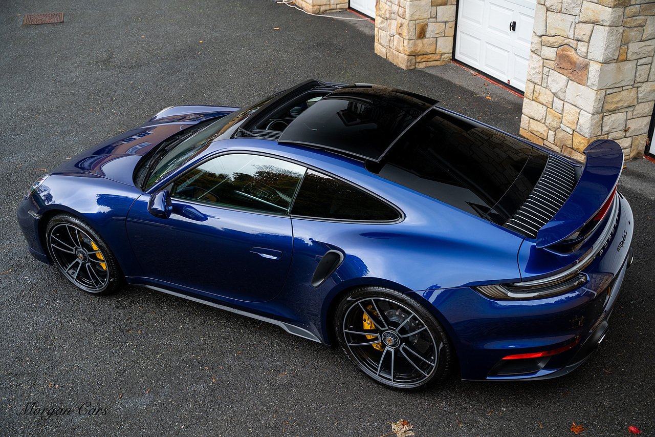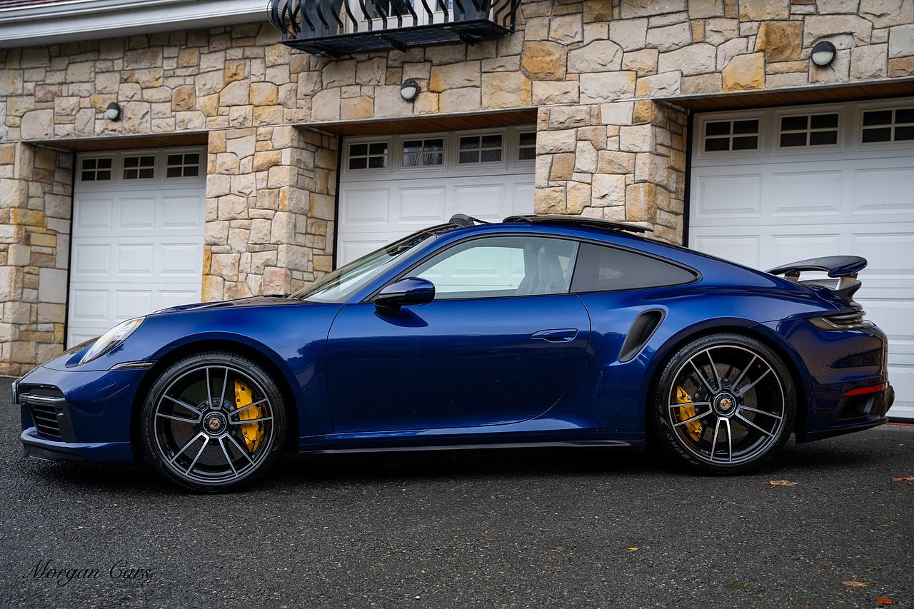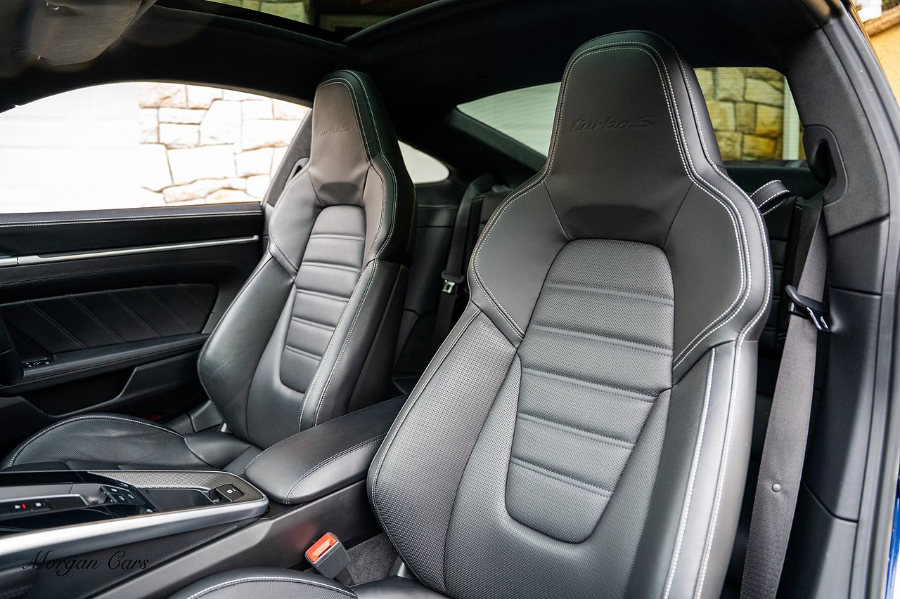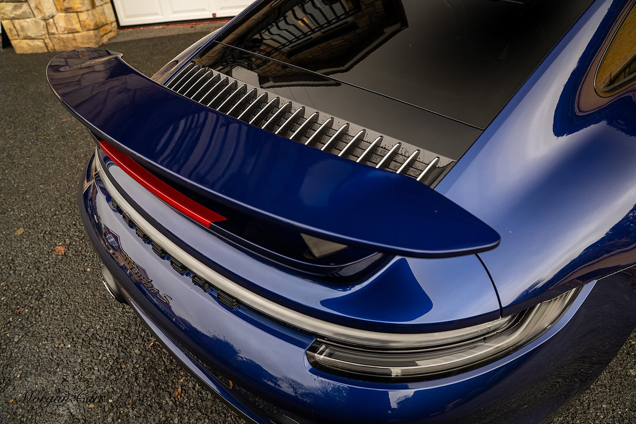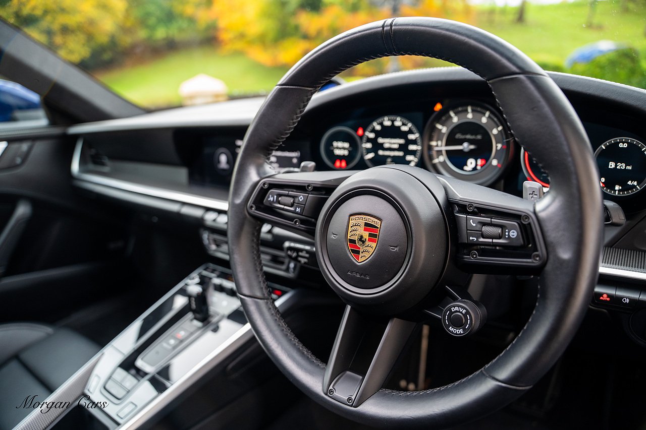 Morgan Cars are proud to present our Beautiful Porsche 911 992 Turbo S, Finished in Gentian Blue Metallic with contrasting Black Leather interior with Heated and Ventilated Function and Carbon Fibre interior trim.