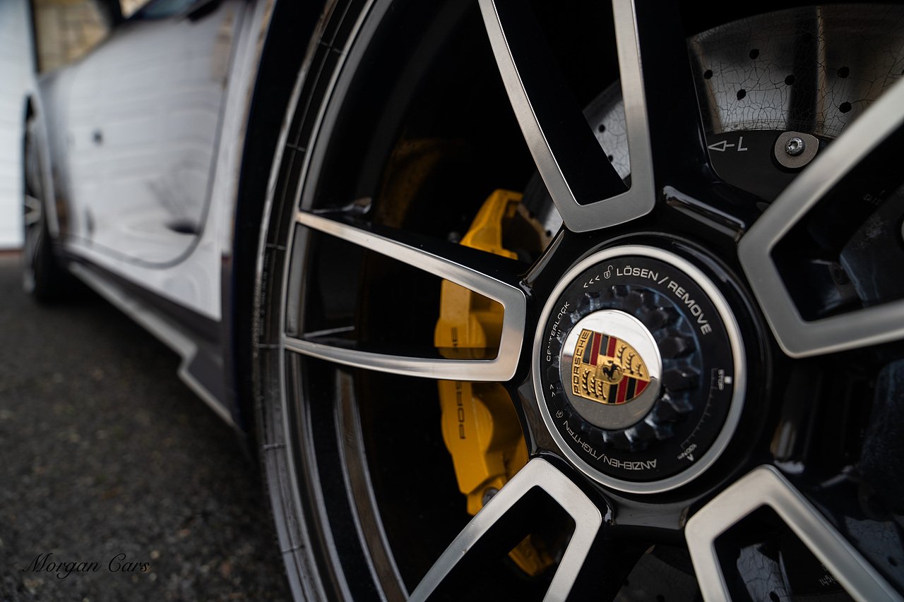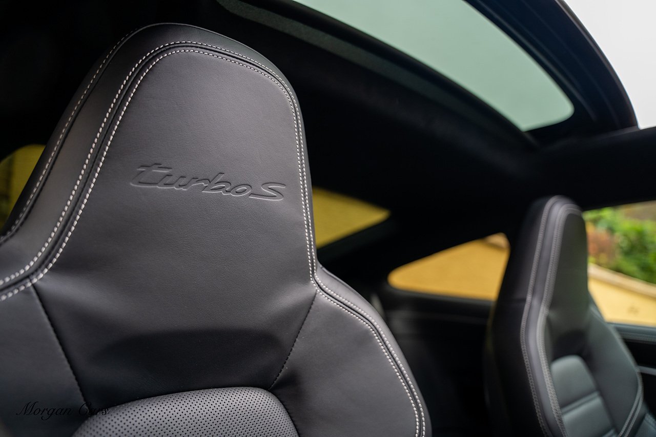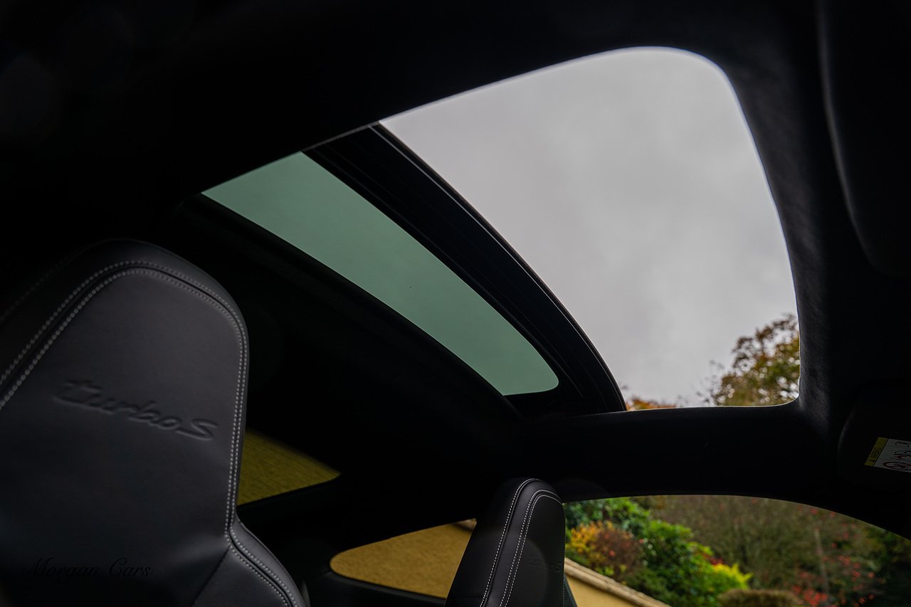 The Specification of this example includes, Sports Exhaust System with tailpipes in Silver | PASM Sports Suspension with -10mm lowering | Front Axle vehicle lifting system | 20/21" Turbo S Alloy wheels Gloss Black and Polished with Centre Locks, LED Matrix headlights in black with Porsche Dynamic X Sight light system Plus, Power Steering Plus, Ceramic Brakes with Yellow painted Calipers, Tilt and Slide Glass Panoramic sunroof, Bose Surround Sound System, Exclusive Design tail lights, Privacy Glass, 18 Way Adaptive memory heated seats, Keyless Entry and Go, Rev counter & Sports Chrono with Green Detailing, Sports Chrono package with Sports Chrono Dial in Agate Grey, Aluminium PDK Gear Selector, Remote Parking Assist with Lane Change Assist and Surround View Camera System.