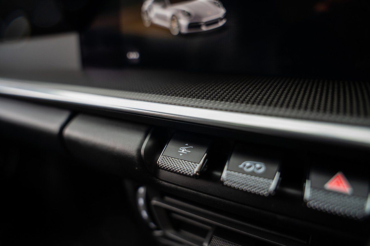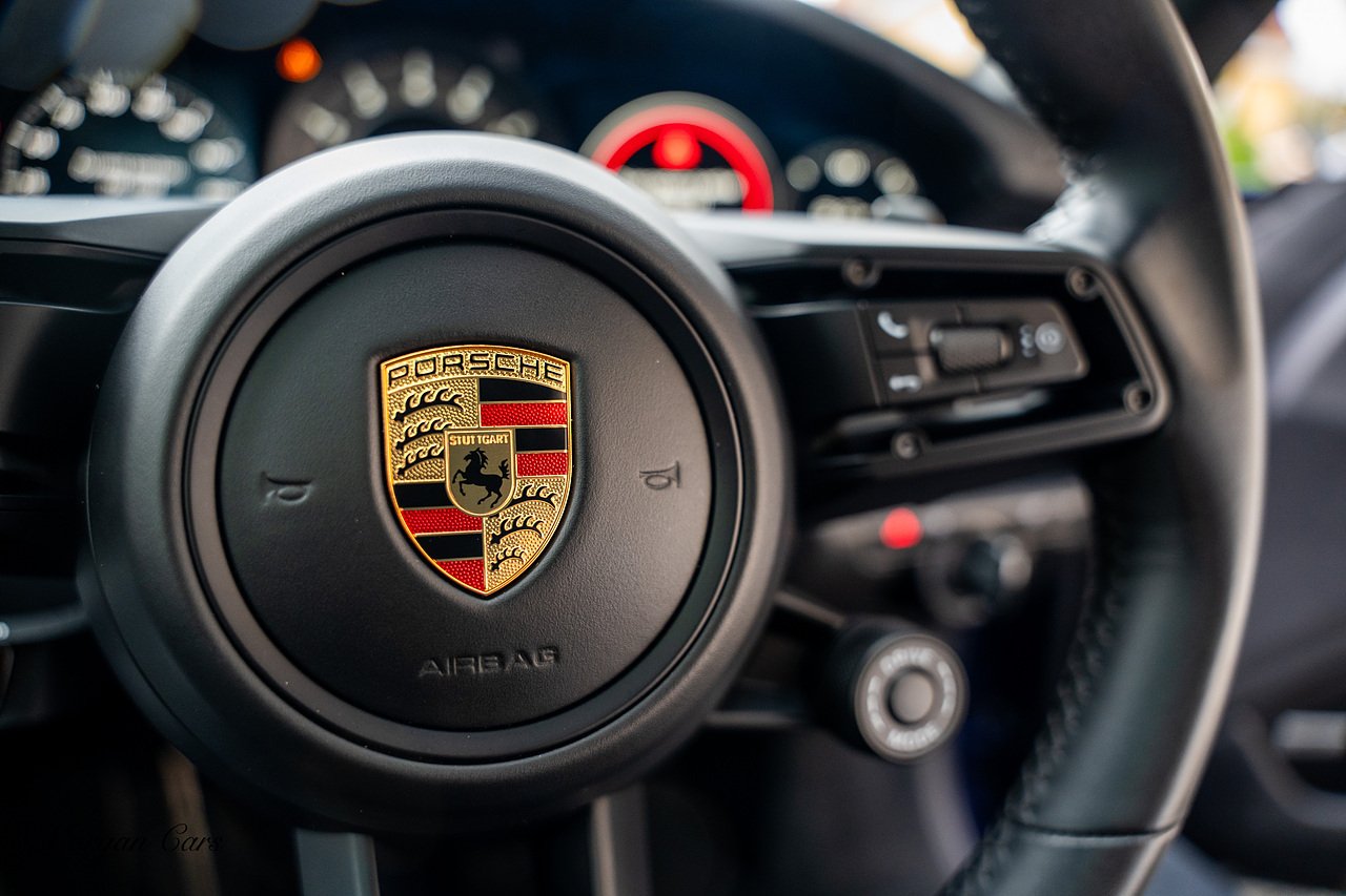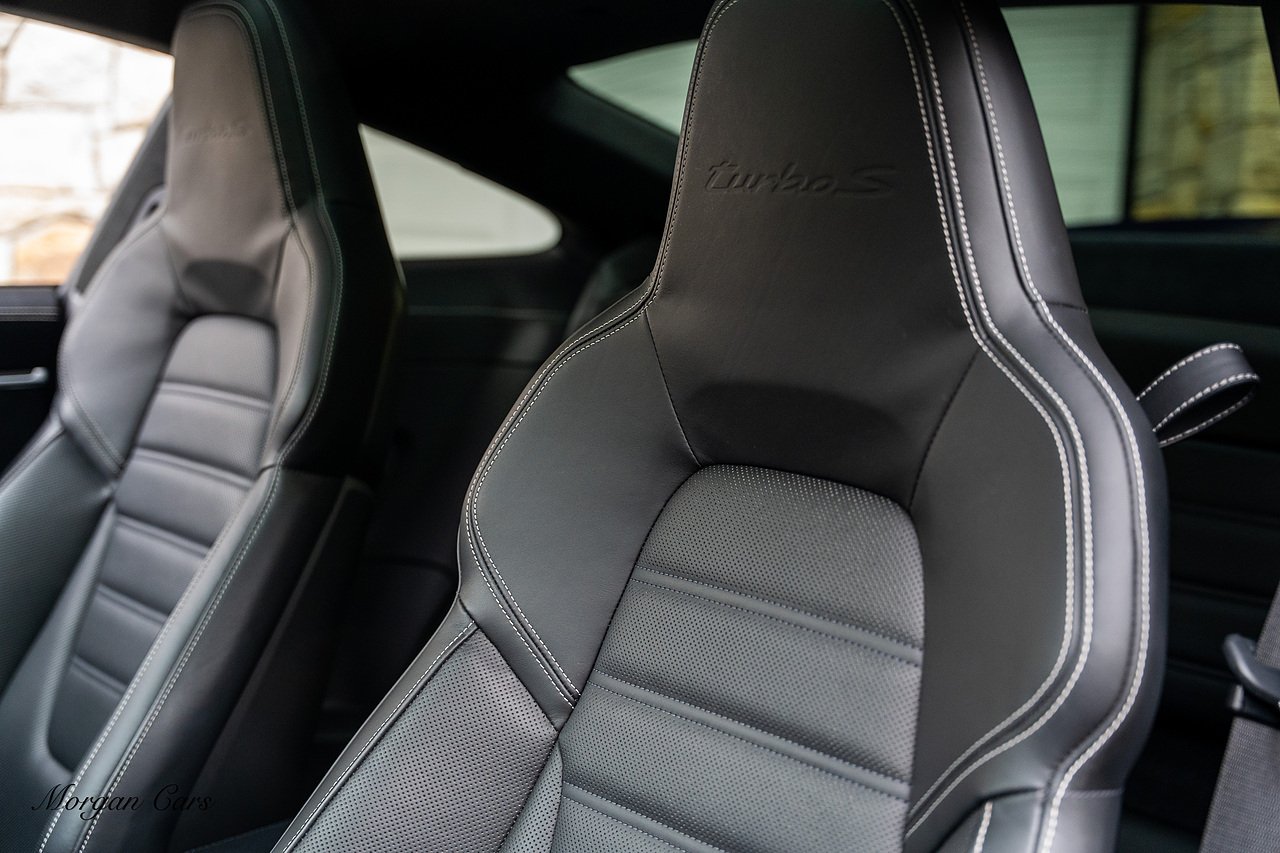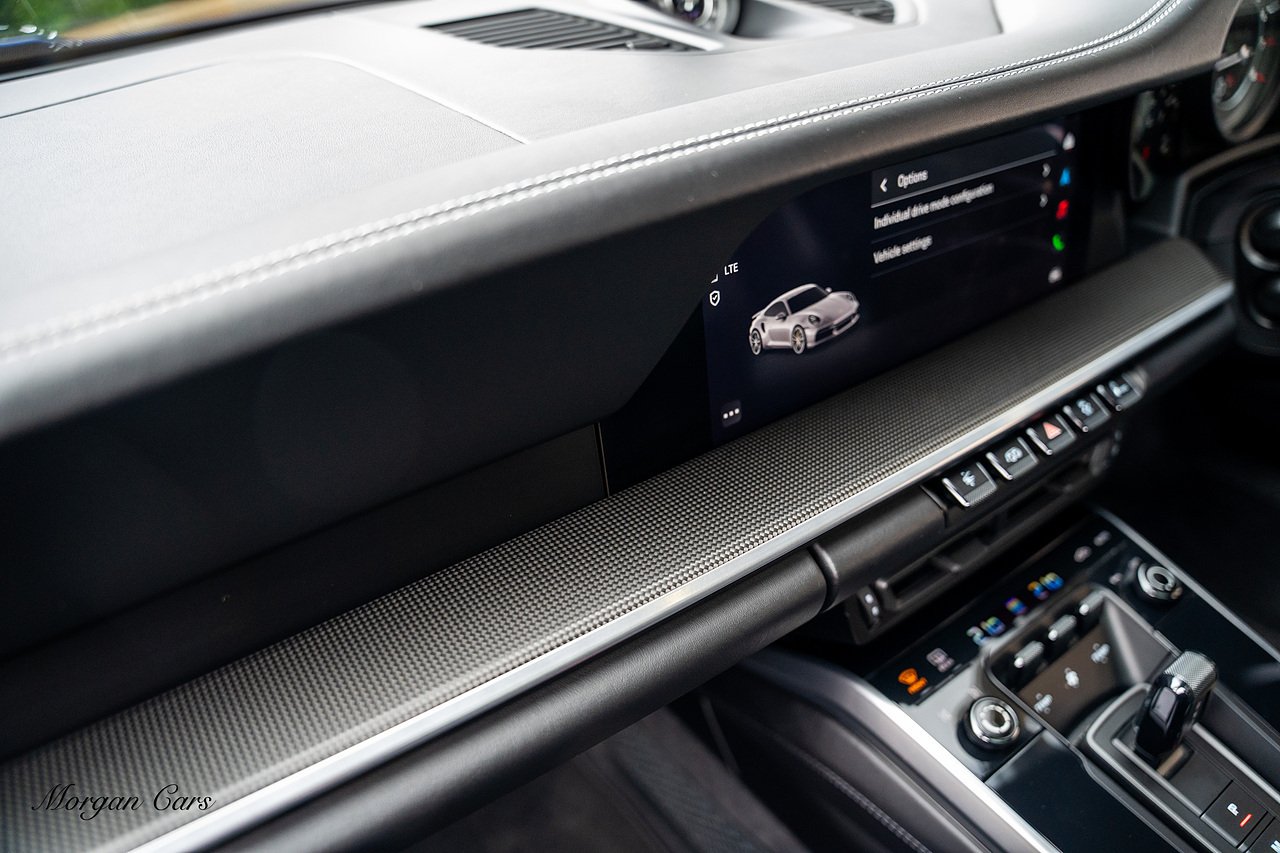 The Specification of this example includes, Sports Exhaust System with tailpipes in Silver | PASM Sports Suspension with -10mm lowering | Front Axle vehicle lifting system | 20/21" Turbo S Alloy wheels Gloss Black and Polished with Centre Locks, LED Matrix headlights in black with Porsche Dynamic X Sight light system Plus, Power Steering Plus, Ceramic Brakes with Yellow painted Calipers, Tilt and Slide Glass Panoramic sunroof, Bose Surround Sound System, Exclusive Design tail lights, Privacy Glass, 18 Way Adaptive memory heated seats, Keyless Entry and Go, Rev counter & Sports Chrono with Green Detailing, Sports Chrono package with Sports Chrono Dial in Agate Grey, Aluminium PDK Gear Selector, Remote Parking Assist with Lane Change Assist and Surround View Camera System.