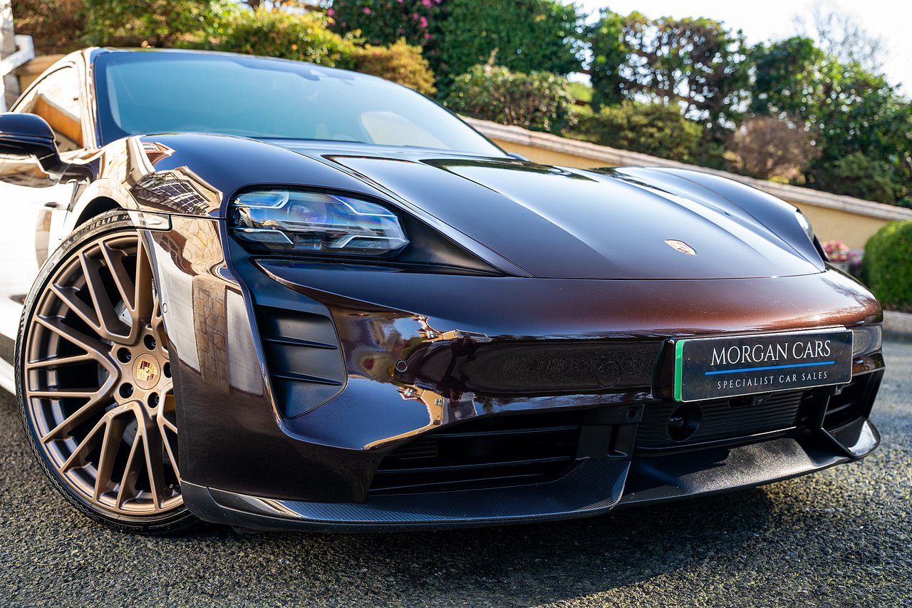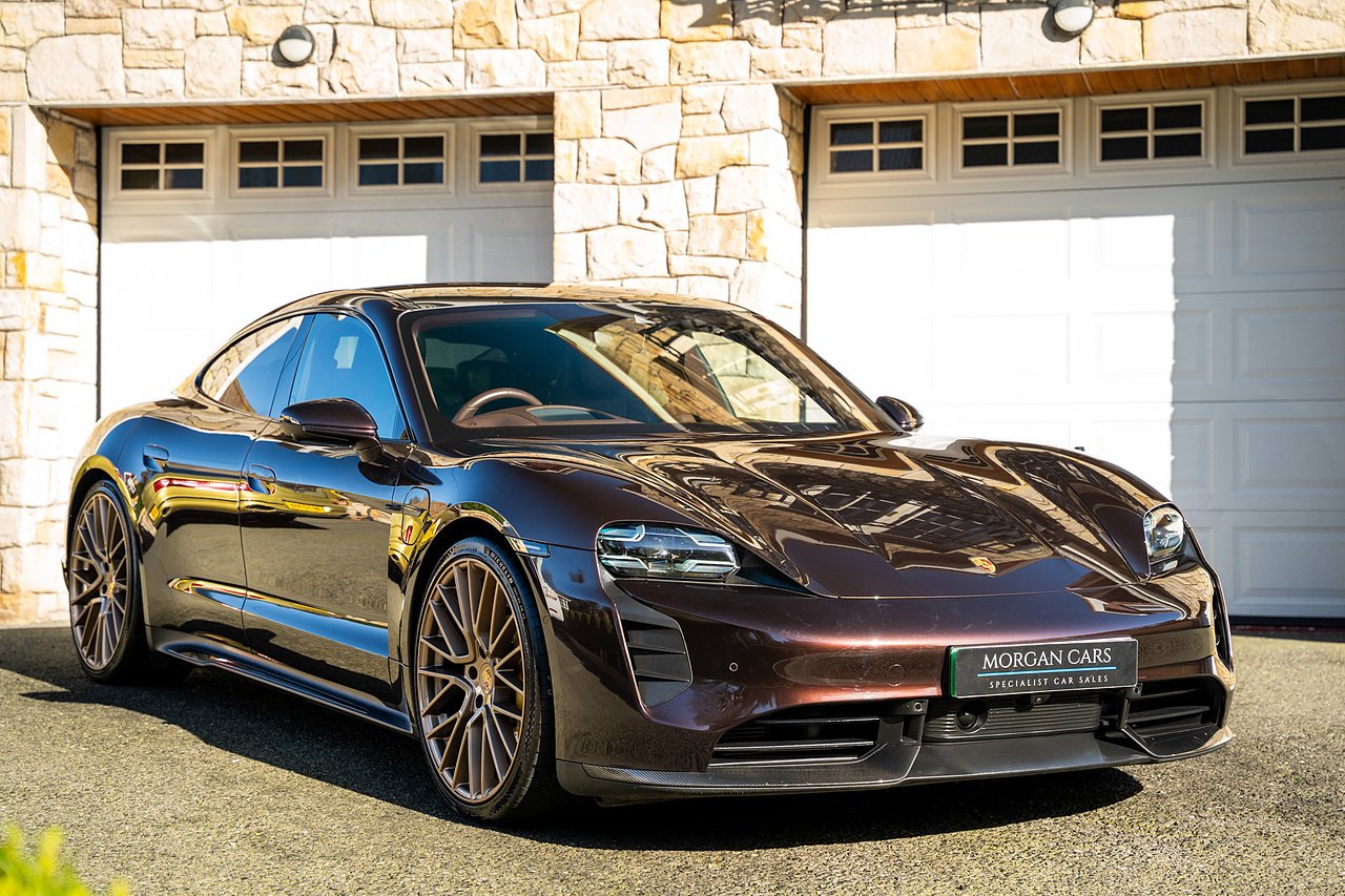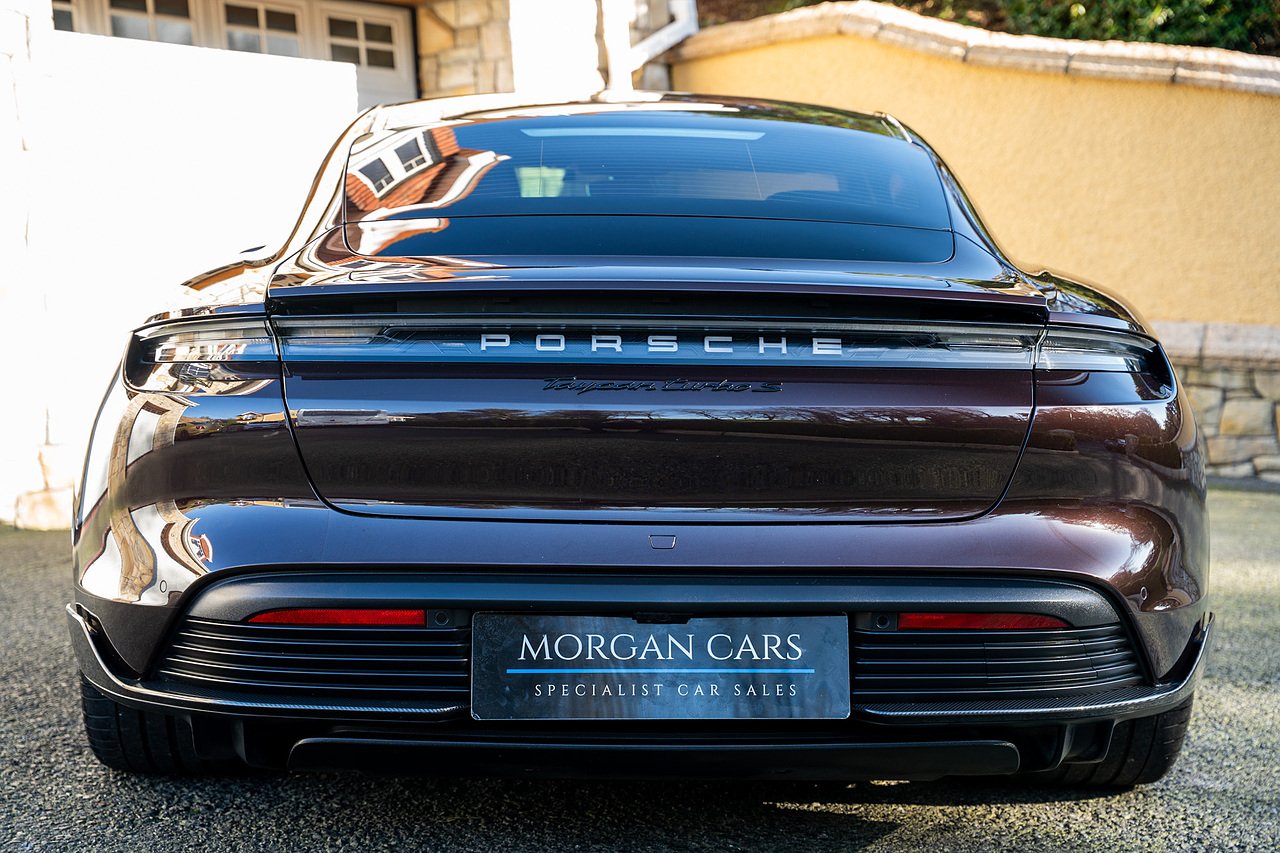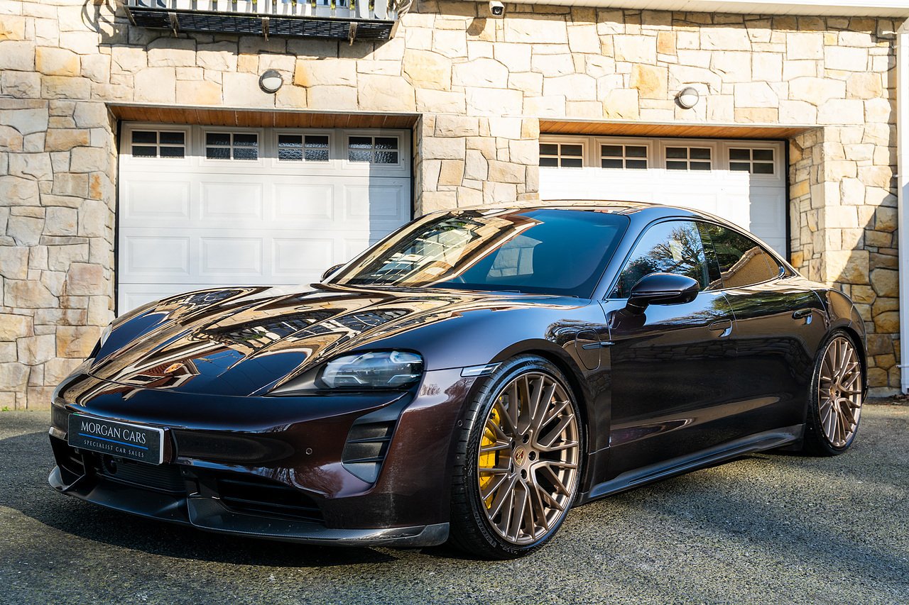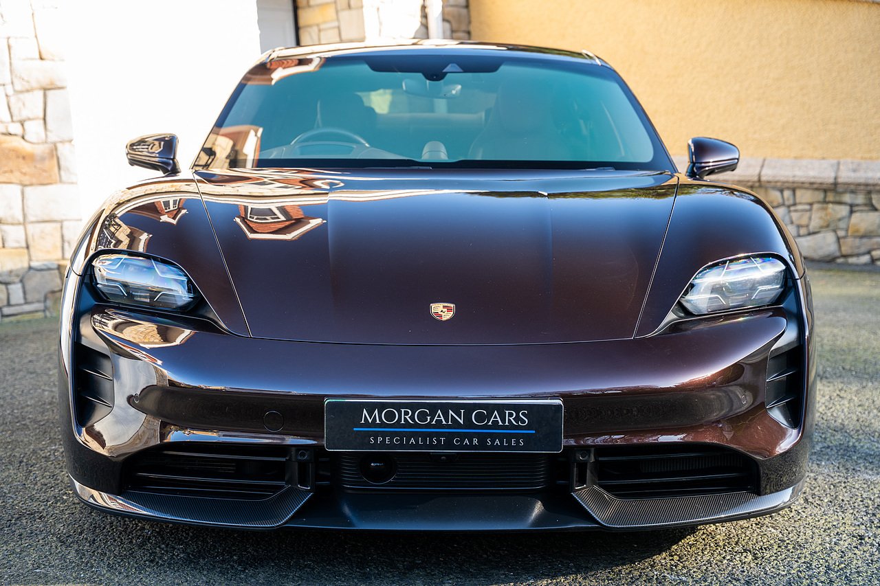 Morgan Cars are proud to present our Porsche Taycan Turbo S, Finished in Beautiful Mahogany Metallic with Contrasting Truffle Brown Club Leather interior.