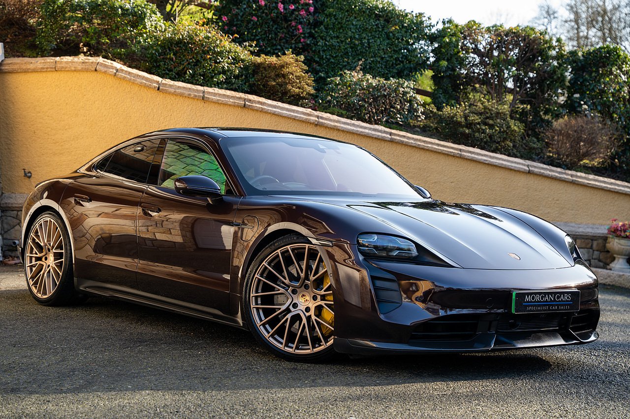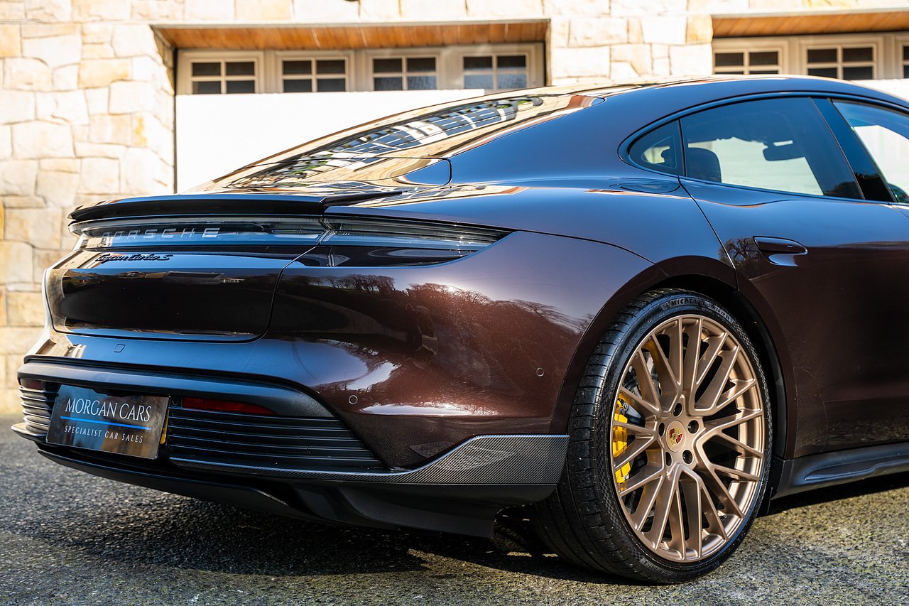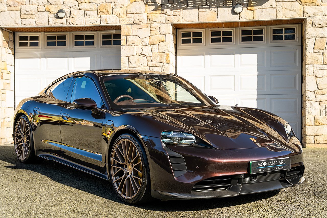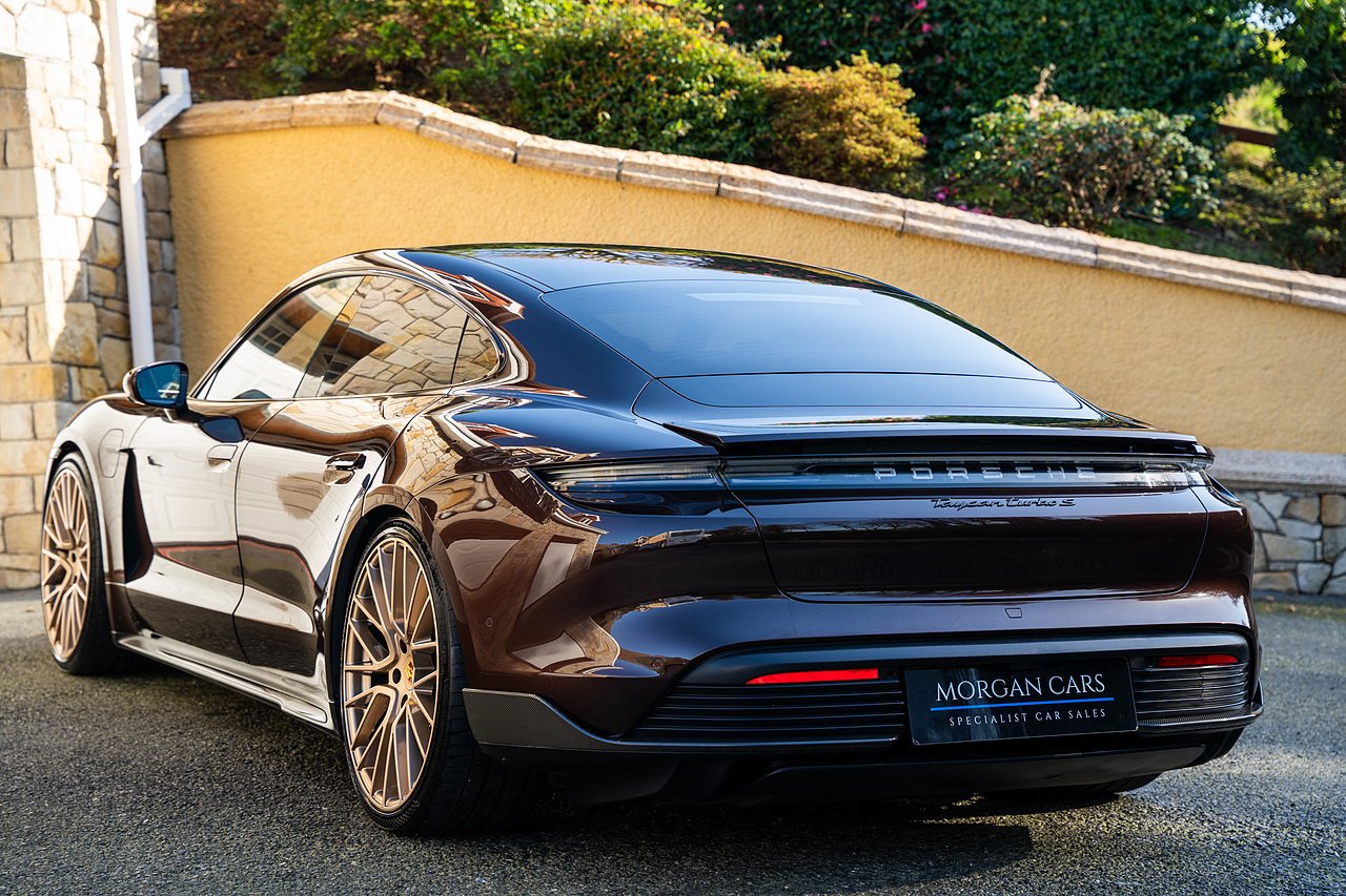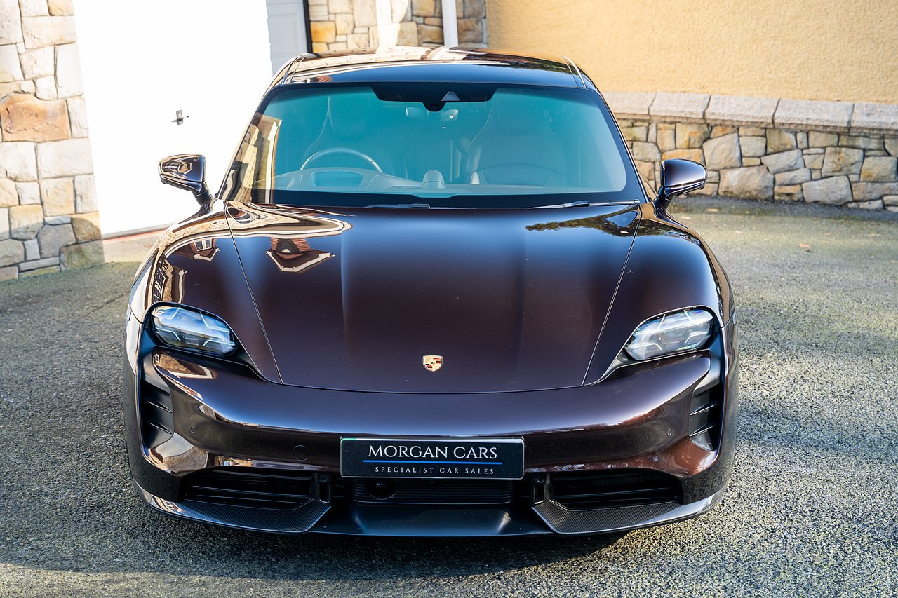 Morgan Cars are proud to present our Porsche Taycan Turbo S, Finished in Beautiful Mahogany Metallic with Contrasting Truffle Brown Club Leather interior.