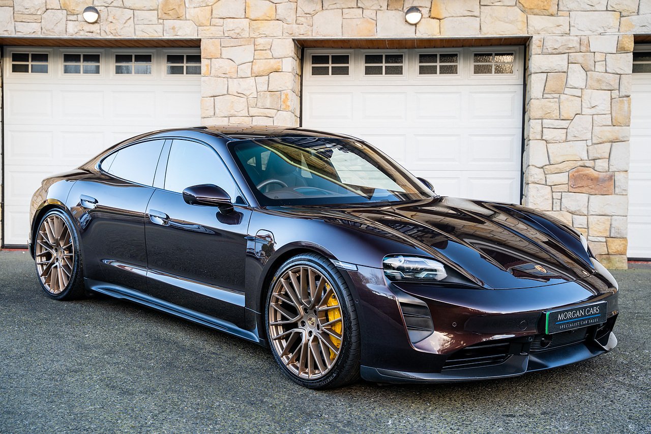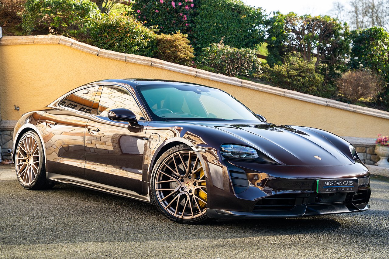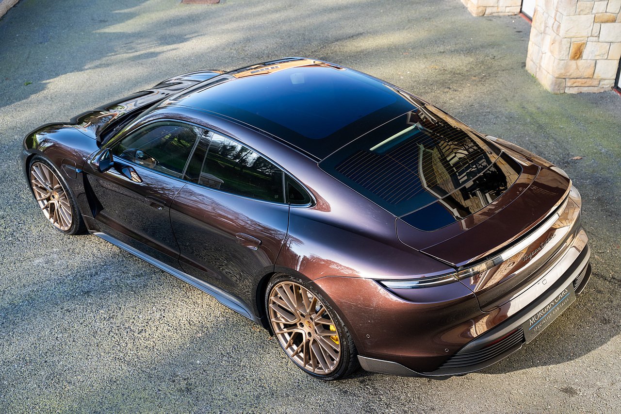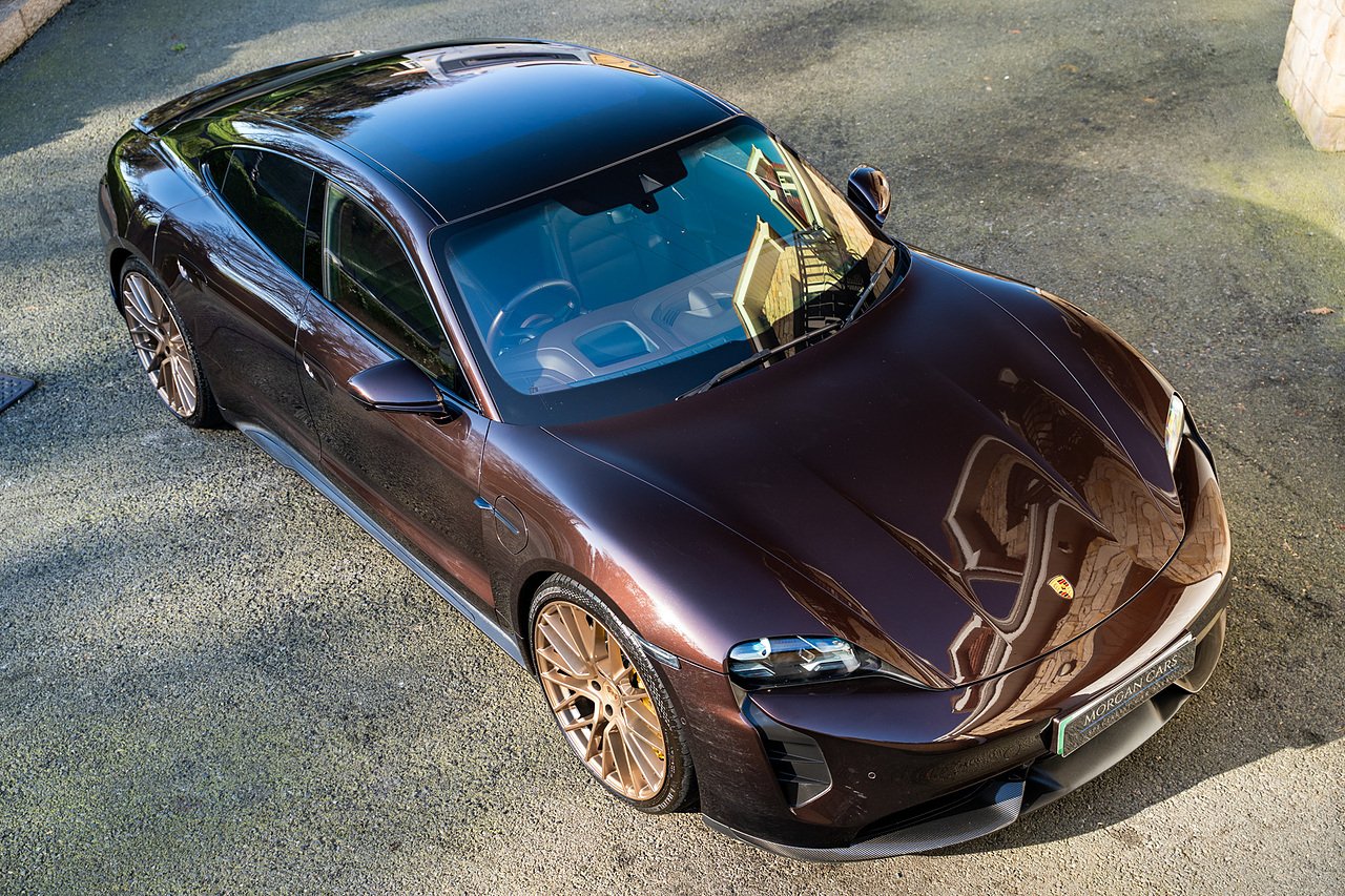 Morgan Cars are proud to present our Porsche Taycan Turbo S, Finished in Beautiful Mahogany Metallic with Contrasting Truffle Brown Club Leather interior.
