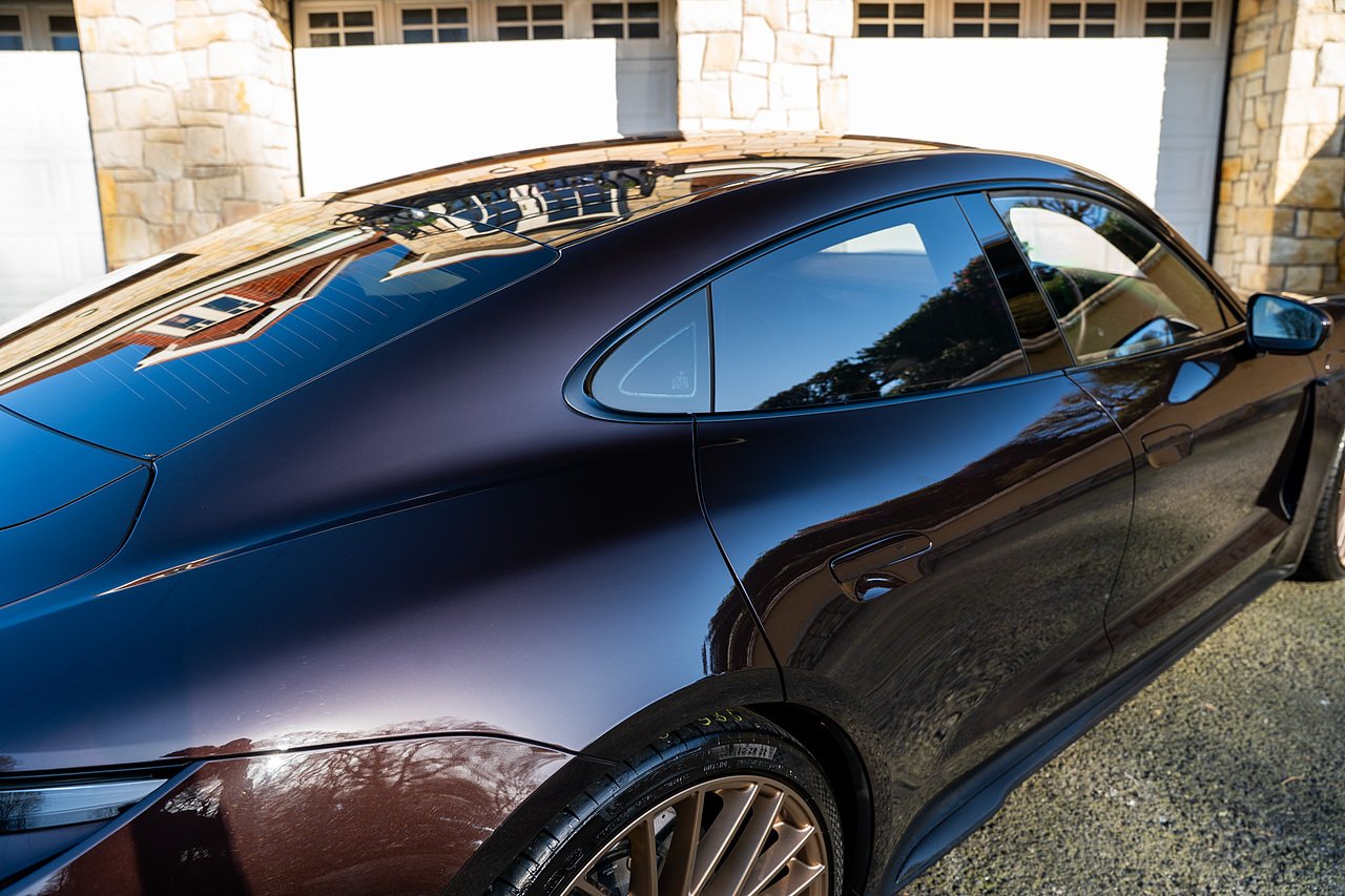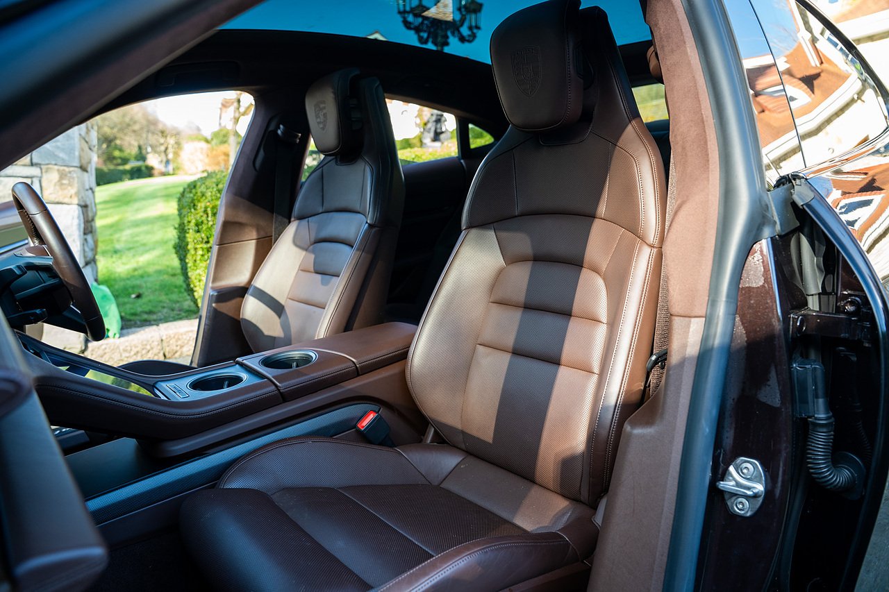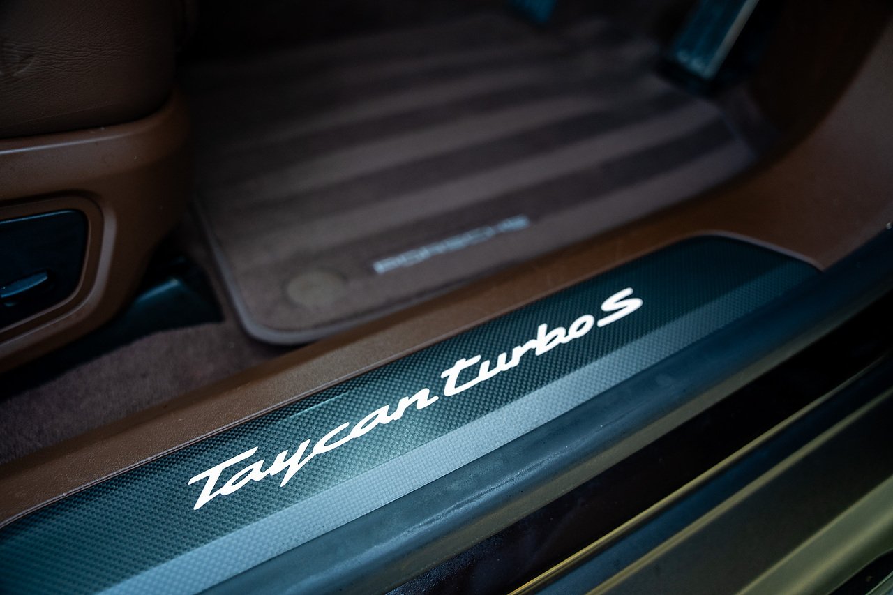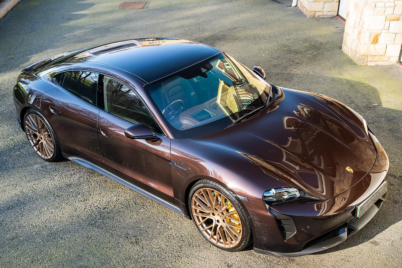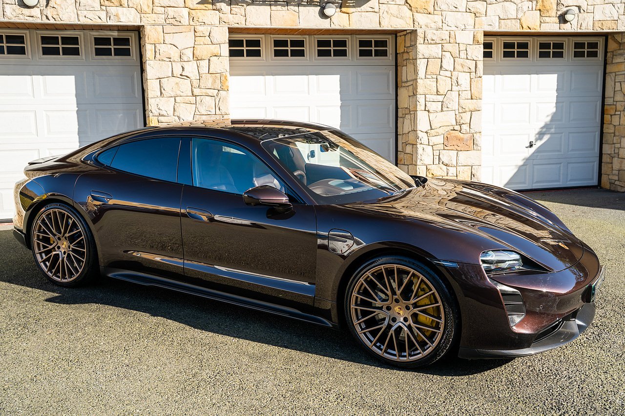 Morgan Cars are proud to present our Porsche Taycan Turbo S, Finished in Beautiful Mahogany Metallic with Contrasting Truffle Brown Club Leather interior.