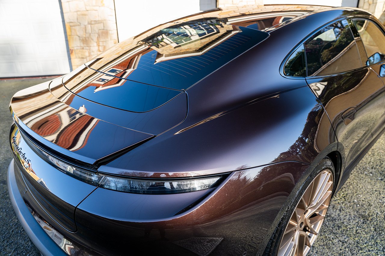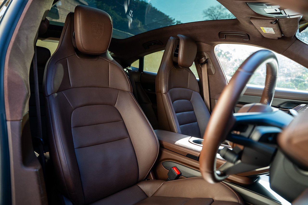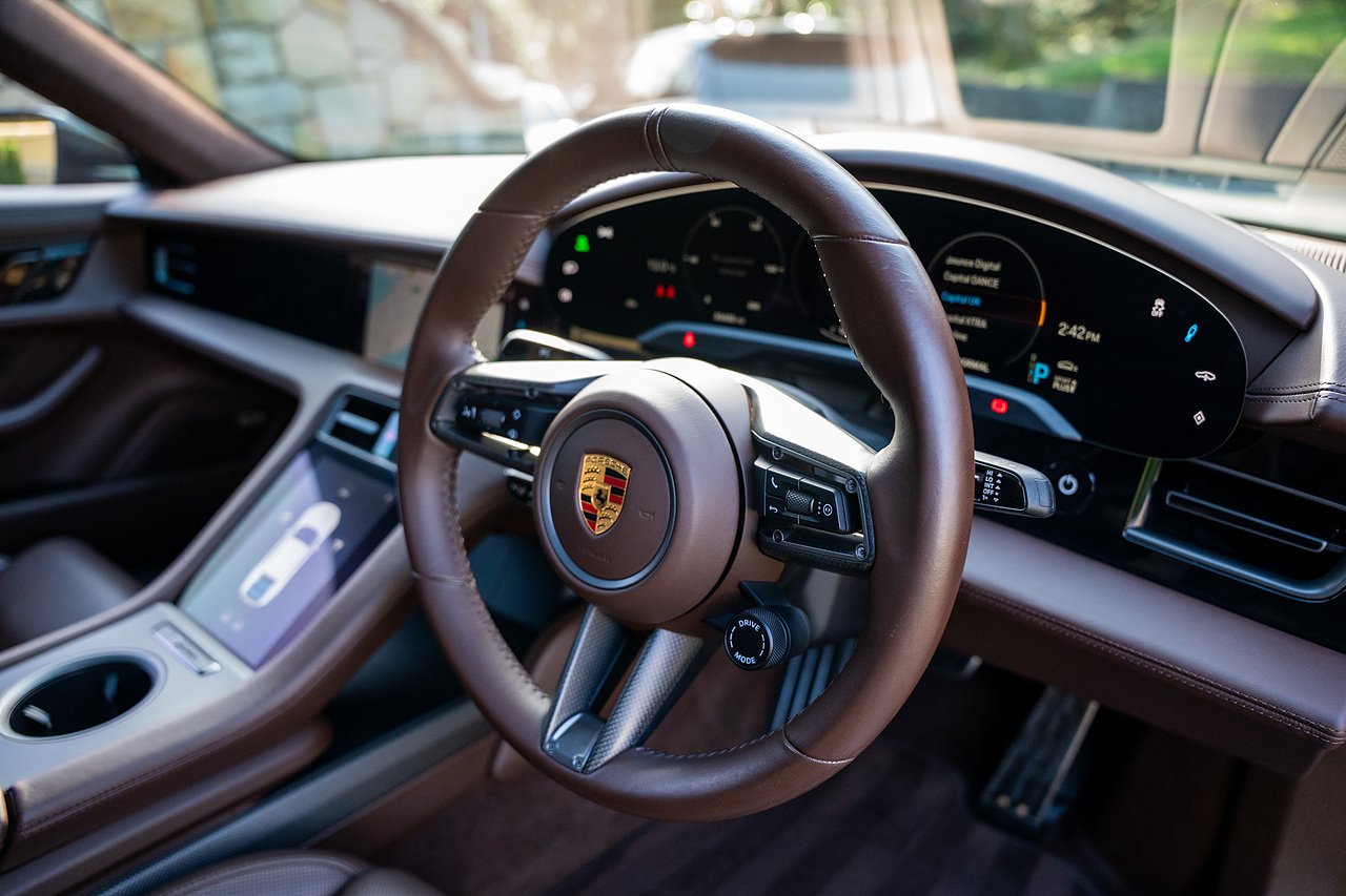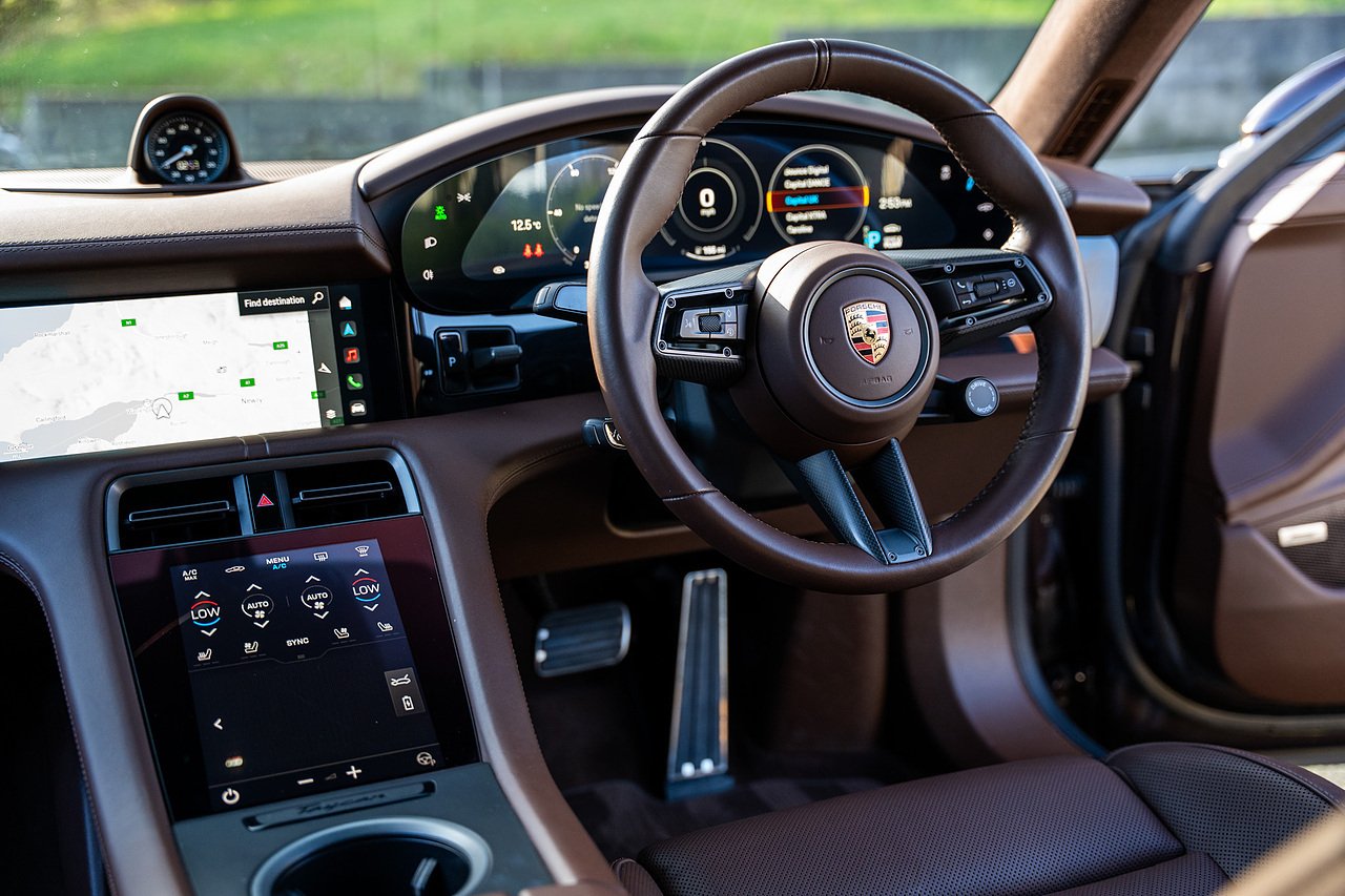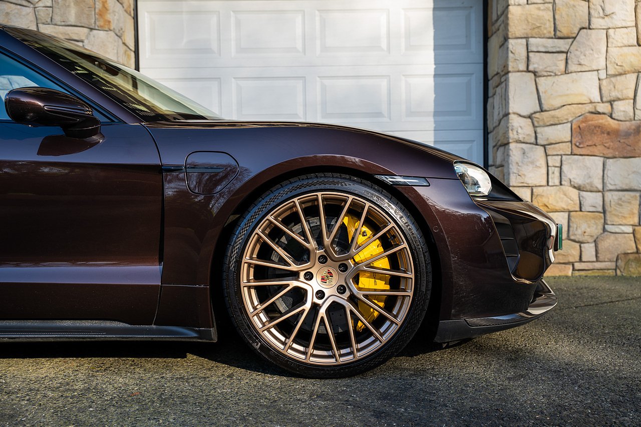 Morgan Cars are proud to present our Porsche Taycan Turbo S, Finished in Beautiful Mahogany Metallic with Contrasting Truffle Brown Club Leather interior.