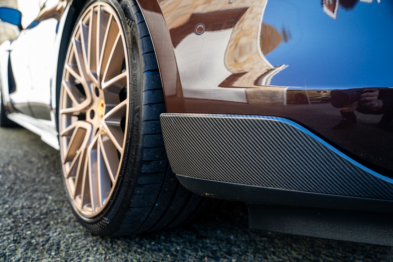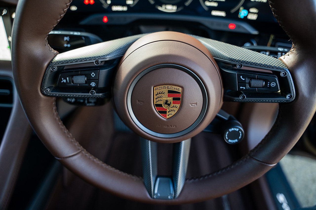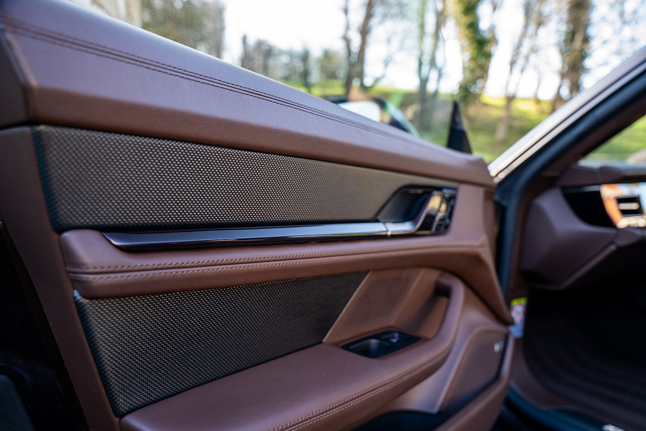 The Specification of this example is endless with over £20k Worth of Optional Specification including, Exterior Sport Design Package in Carbon Fibre (£3,282), Carbon Ceramic Braking System with Signature Yellow Painted Calibers, 22" Optional Extra Neo Dime Gold Alloy Wheels, Front Massage Seats with both Heated and Ventilation (£1,422), Comfort Seats with 14-Way Electric Memory Seats (£1,170), Fixed Panoramic Glass Roof (£1,137), Sports Chrono On board Clock, Interior Roof Lining in Race Tex Alcantara, Adaptive Cruise Control (£1,238) Head-Up Display (£1,128) ParkAssist Surround View Camera (£1,002) Thermally and Noise Insulated Glass (£947) Comfort Access (£774) Mobile Charger Connect (£767) BOSE Surround Sound System (£725) Seat Heating Front and Rear (£615) Interior Accent Package in Mahogany Metallic Finish (£594) Wing Mirrors in Exterior Colour (£380) Seat Belts Finished in Truffle Brown (£345) LED Matric and Dynamic Headlights in Glacier Ice Blue (£333) Embossed Porsche Crest Heat Rests Throughout (£320) Colour Coded Key, 150kW DC on-Board Booster, Electric Folding Mirrors, DAB Digital Radio, Sat-Nav, Reversing Camera with 360 Surround View, Privacy Glass & Much More. Please Contact Us for Full Details and Information.