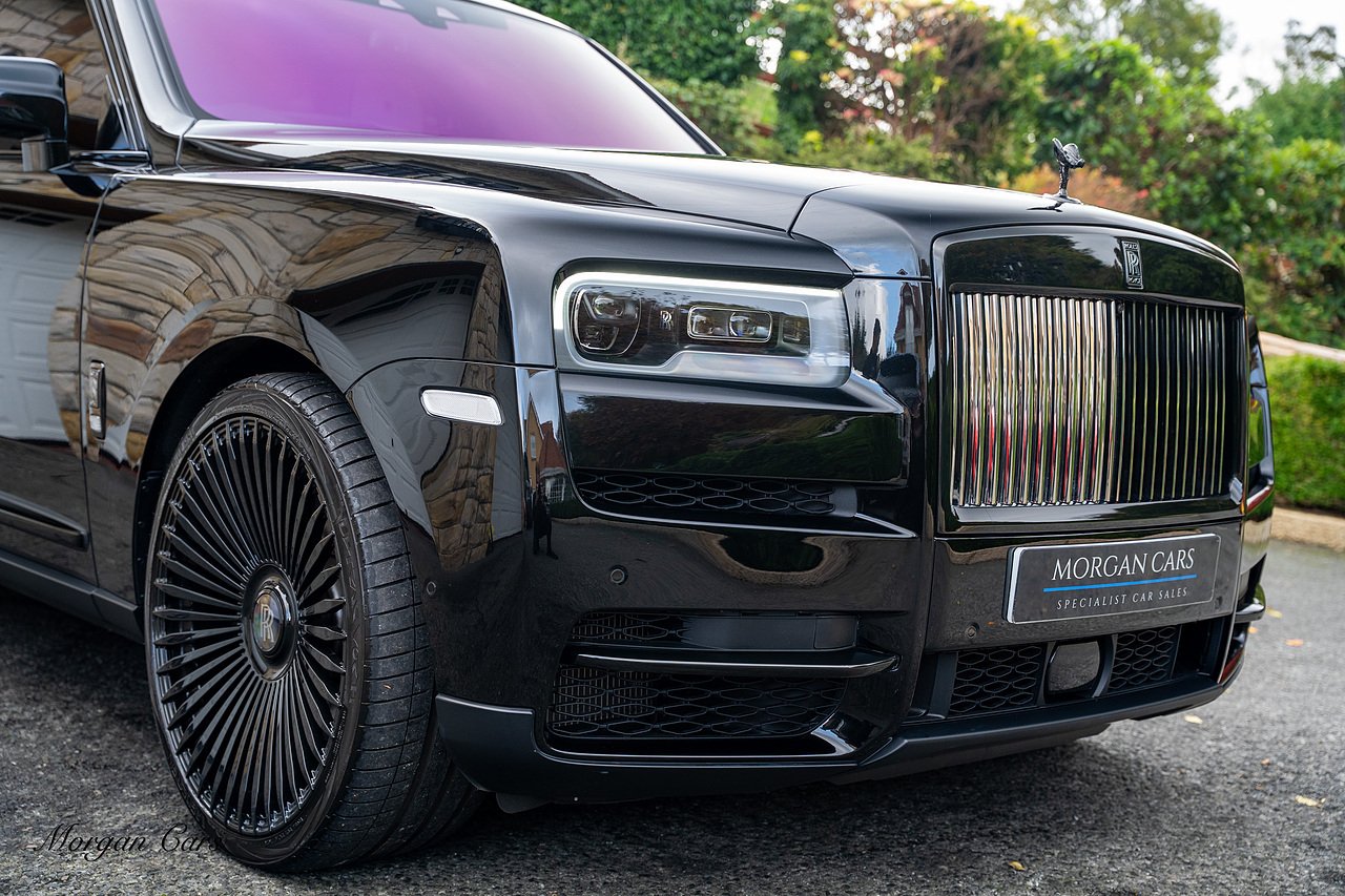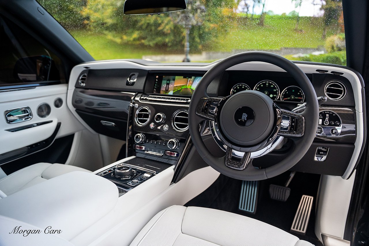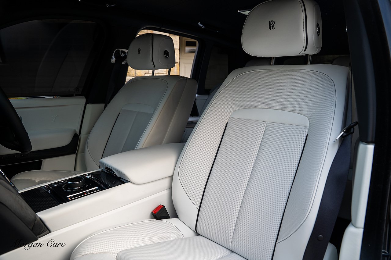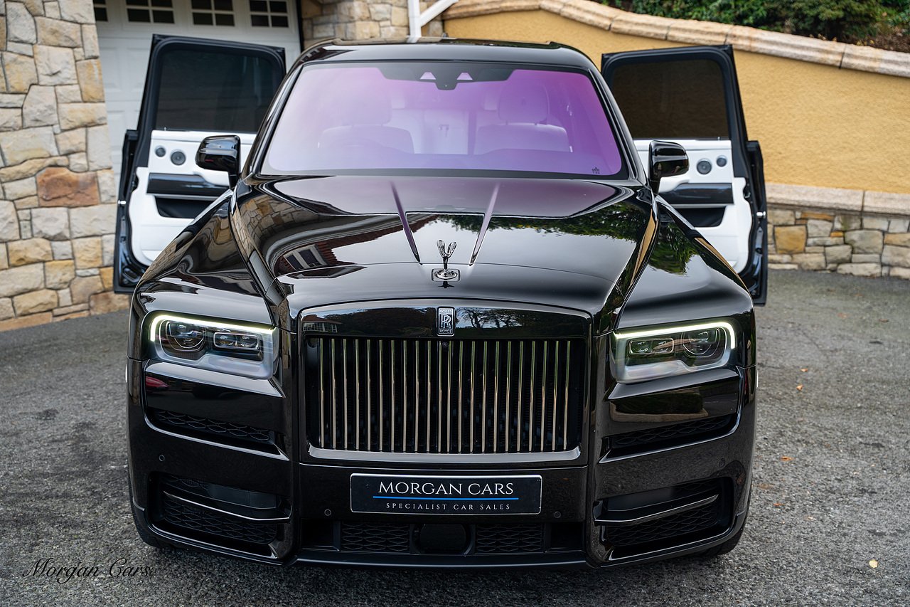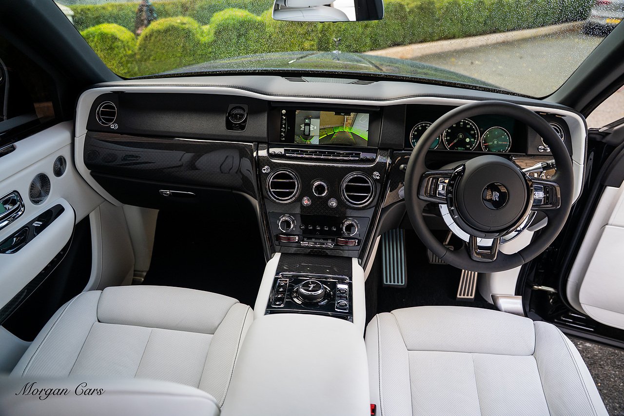Morgan Cars are proud to present this Huge Spec Rolls Royce Cullinan Black Badge finished in Black Diamond metallic with Artic white leather interior, This Cullinan Black Badge comes complete with balance of Rolls Royce Manufacturers warranty until 09/2027 and balance of 4 year service plan until 2027, This Cullinan is Loaded with specification including Shooting Star Headliner, Rolls Royce Bespoke Audio system, Rear Theatre Configuration, Heated and Ventilated front seats with Massage Function, Drivers Assist Package 3 with radar guided cruise control and night vision, Apple Carplay Support, Extended Leather headlining, Contrast RR Monogram to headrests, Illuminated Black Badge treadplates, Dark chrome spirit of ecstasy, TV Tuner. SOE Embossed on Doors, Technical Carbon Fibre Interior Trim Package, Adaptive Front lighting system, 24" Multispoke alloy wheels in gloss black, Privacy Glass.