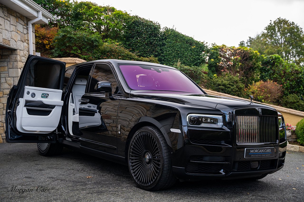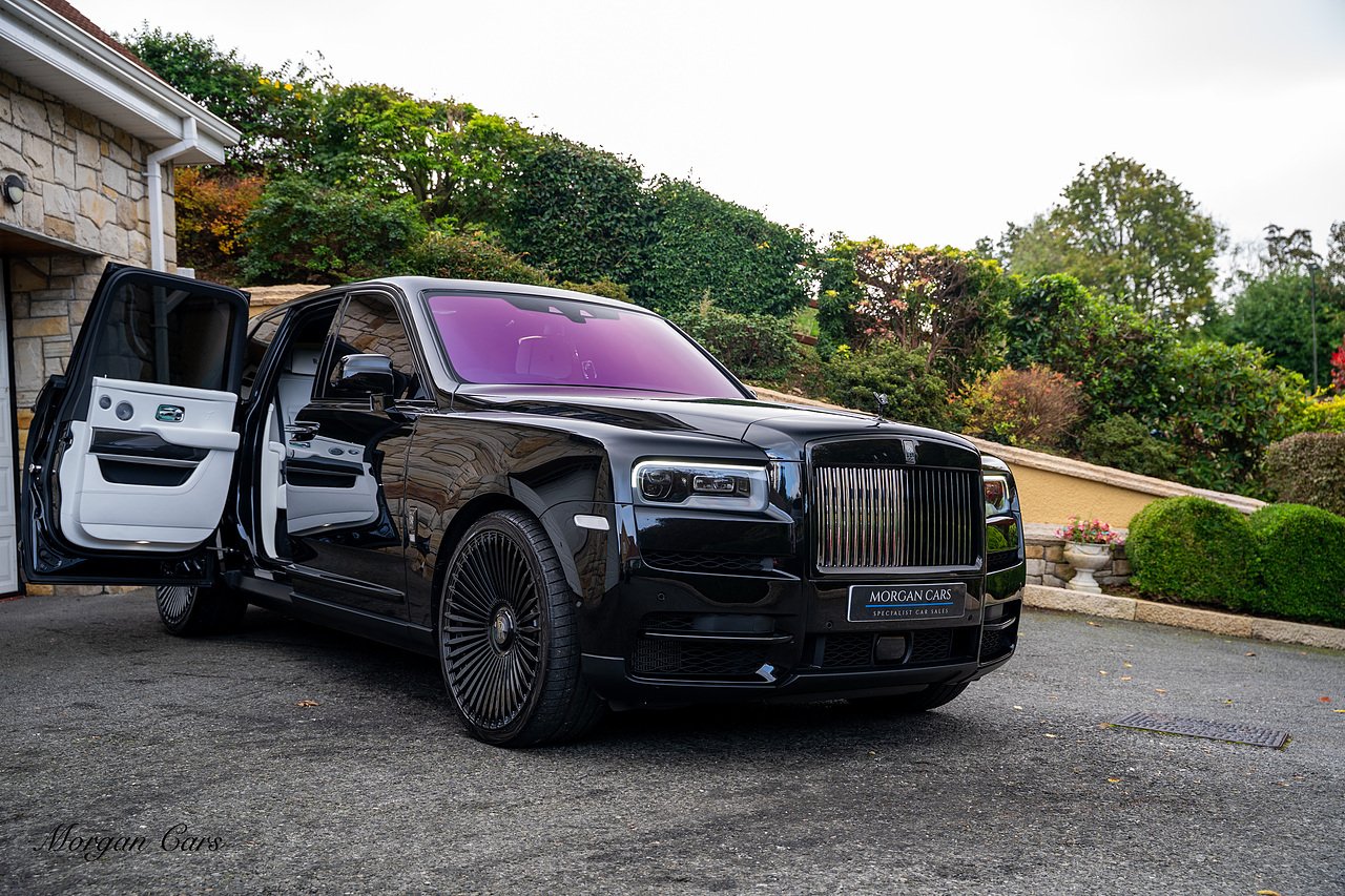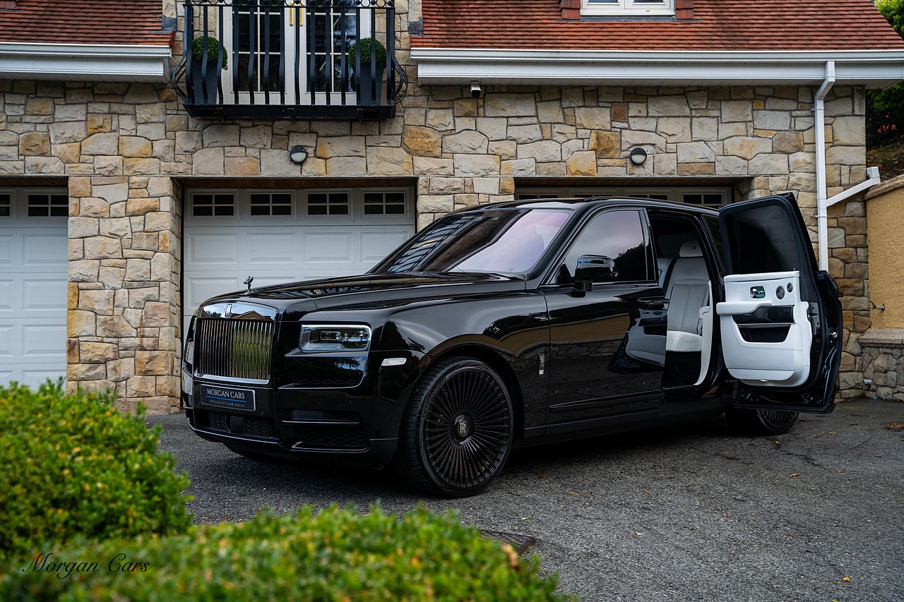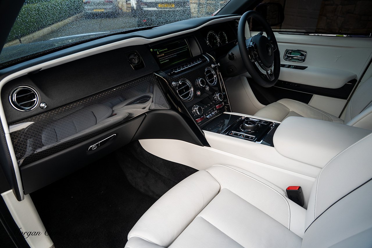 Morgan Cars are proud to present this Huge Spec Rolls Royce Cullinan Black Badge finished in Black Diamond metallic with Artic white leather interior, This Cullinan Black Badge comes complete with balance of Rolls Royce Manufacturers warranty until 09/2027 and balance of 4 year service plan until 2027, This Cullinan is Loaded with specification including Shooting Star Headliner, Rolls Royce Bespoke Audio system, Rear Theatre Configuration, Heated and Ventilated front seats with Massage Function, Drivers Assist Package 3 with radar guided cruise control and night vision, Apple Carplay Support, Extended Leather headlining, Contrast RR Monogram to headrests, Illuminated Black Badge treadplates, Dark chrome spirit of ecstasy, TV Tuner. SOE Embossed on Doors, Technical Carbon Fibre Interior Trim Package, Adaptive Front lighting system, 24" Multispoke alloy wheels in gloss black, Privacy Glass.