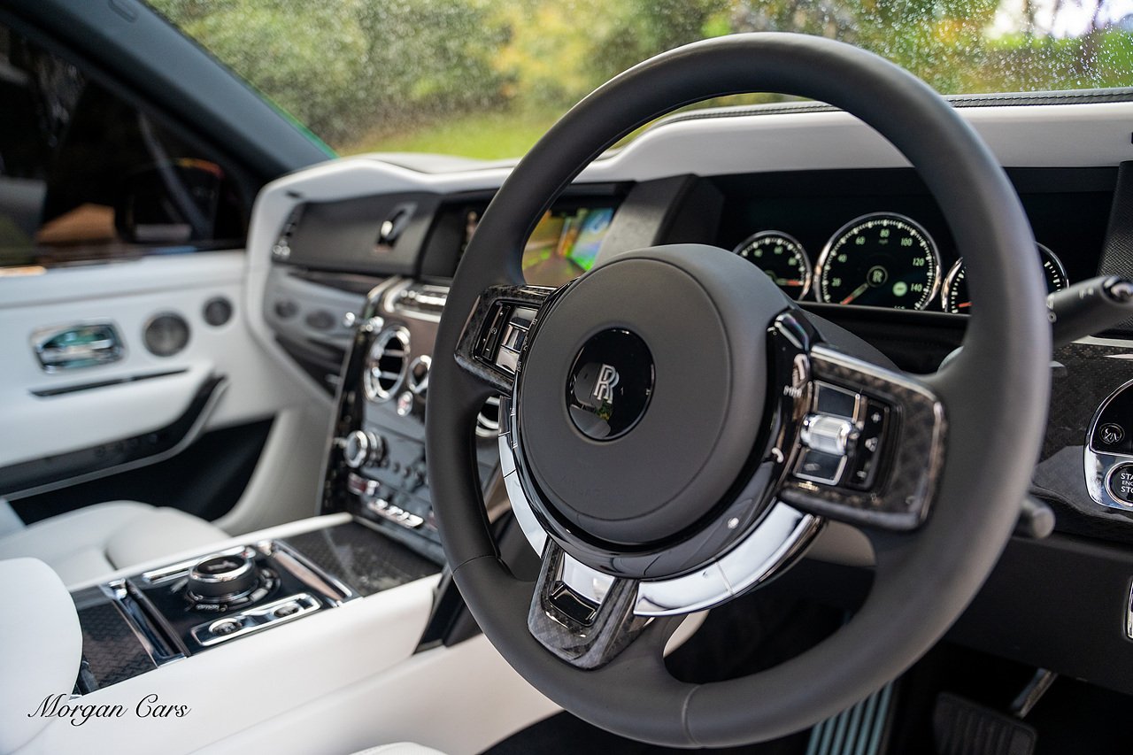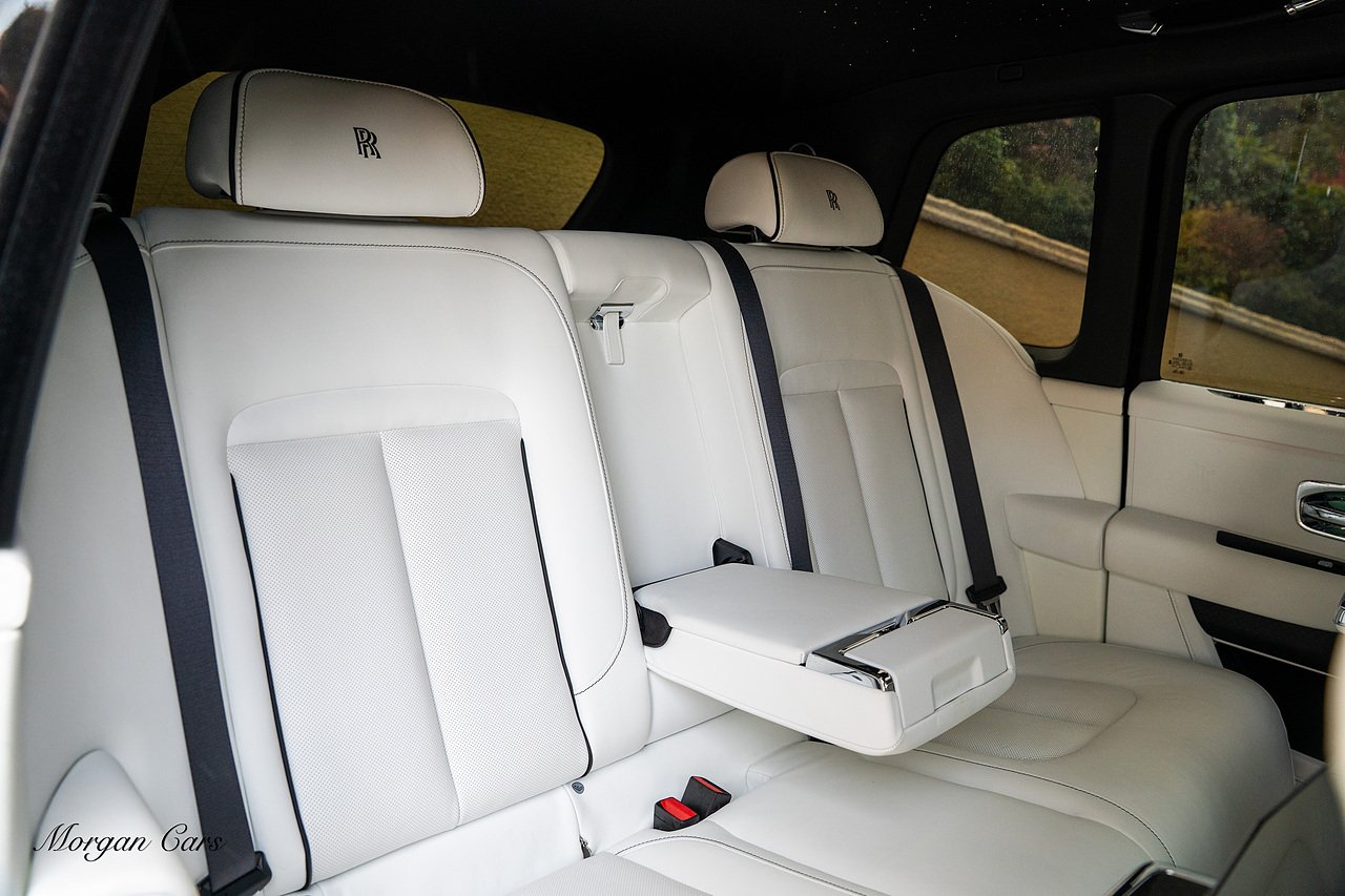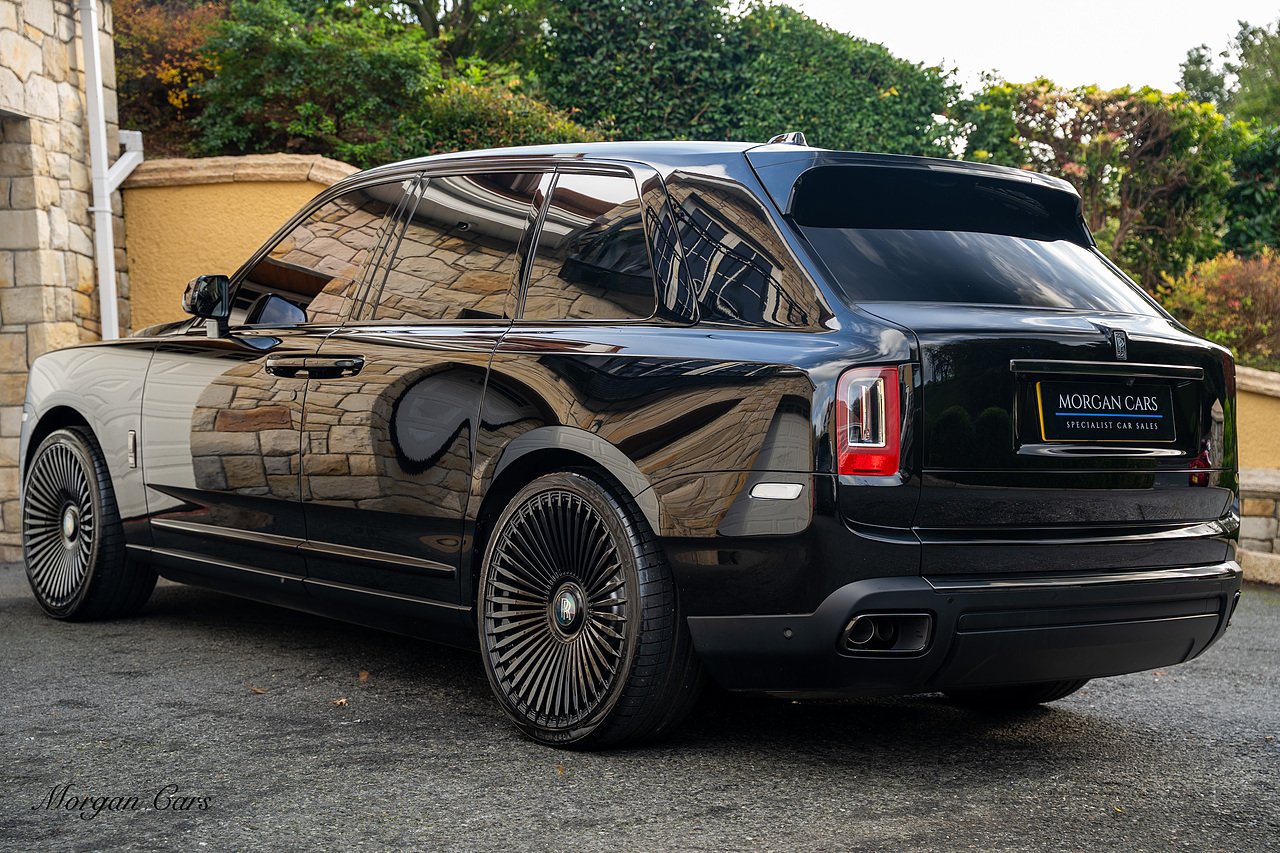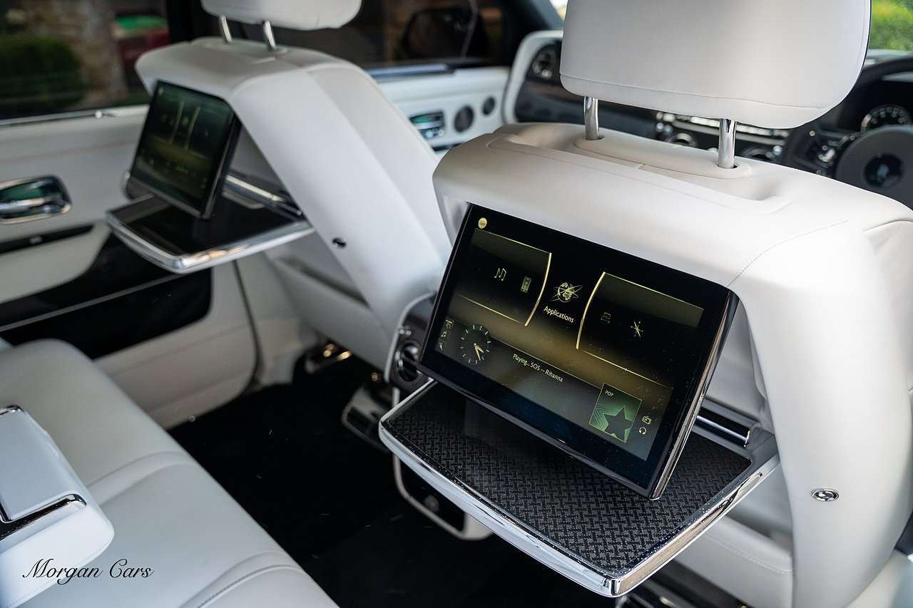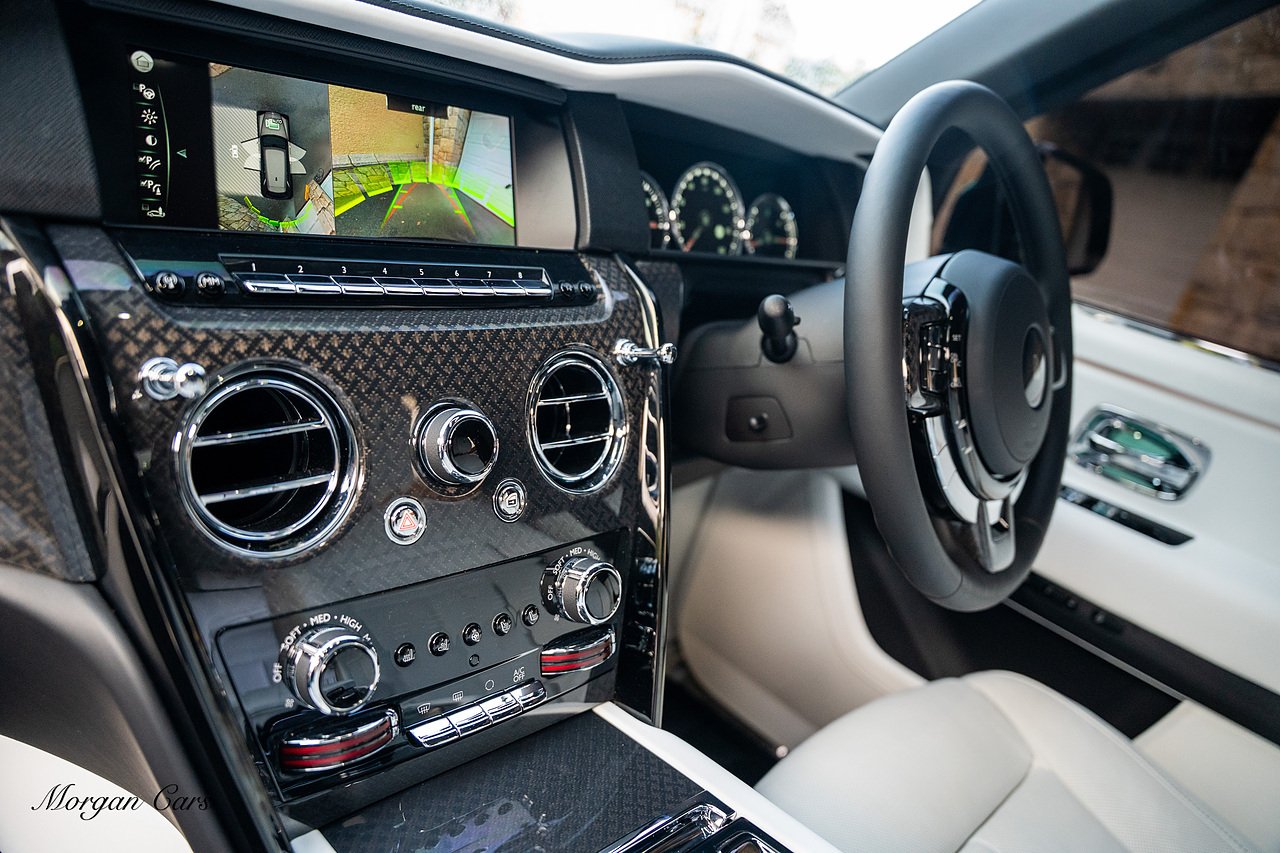 Morgan Cars are proud to present this Huge Spec Rolls Royce Cullinan Black Badge finished in Black Diamond metallic with Artic white leather interior, This Cullinan Black Badge comes complete with balance of Rolls Royce Manufacturers warranty until 09/2027 and balance of 4 year service plan until 2027, This Cullinan is Loaded with specification including Shooting Star Headliner, Rolls Royce Bespoke Audio system, Rear Theatre Configuration, Heated and Ventilated front seats with Massage Function, Drivers Assist Package 3 with radar guided cruise control and night vision, Apple Carplay Support, Extended Leather headlining, Contrast RR Monogram to headrests, Illuminated Black Badge treadplates, Dark chrome spirit of ecstasy, TV Tuner. SOE Embossed on Doors, Technical Carbon Fibre Interior Trim Package, Adaptive Front lighting system, 24" Multispoke alloy wheels in gloss black, Privacy Glass.