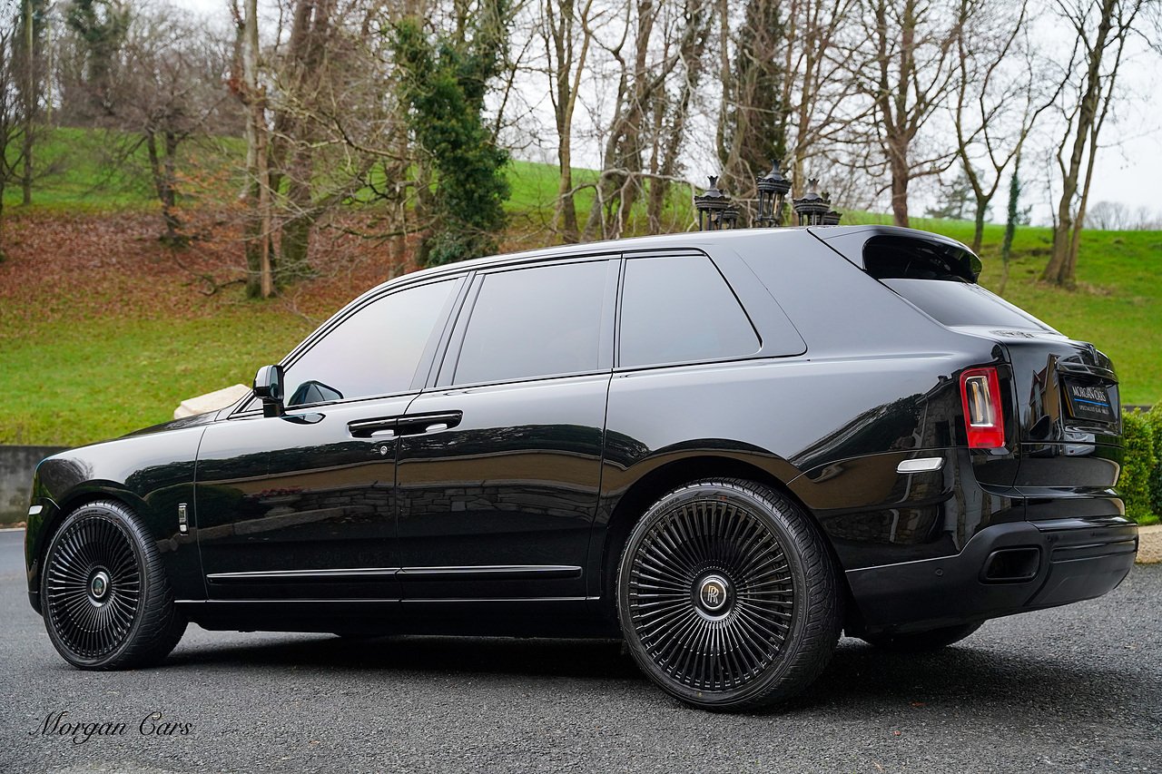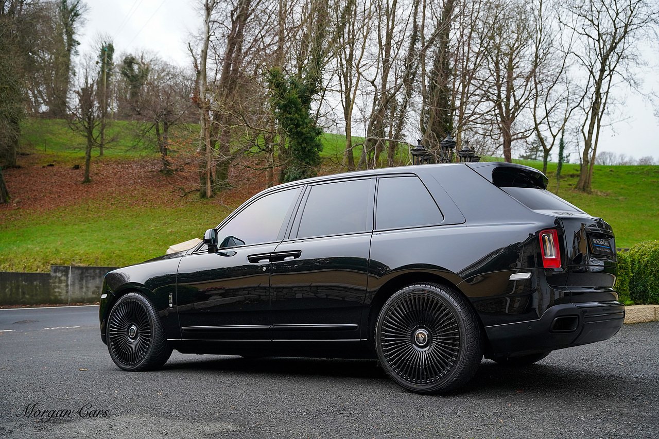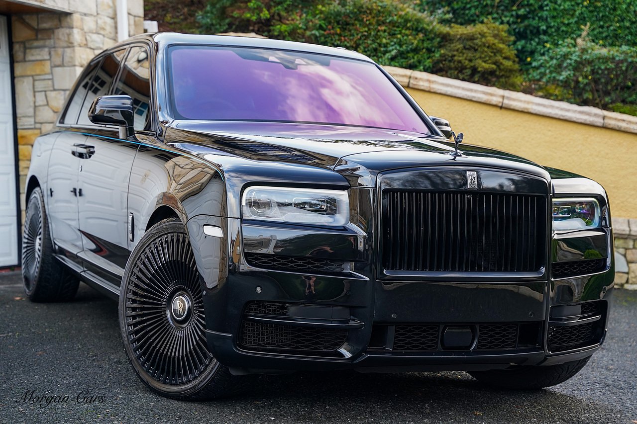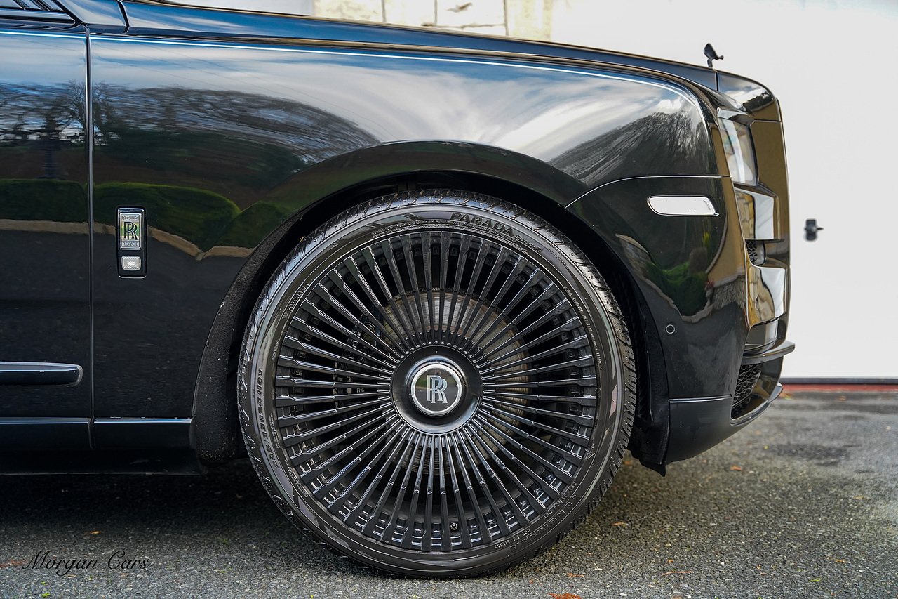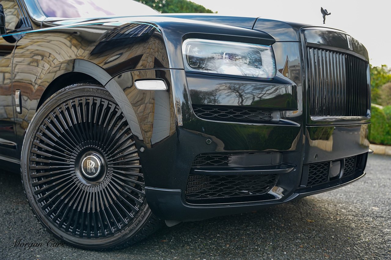 This Cullinan is Loaded with specification including Shooting Star Headliner, Rolls Royce Bespoke Audio system, Rear Theatre Configuration, Heated front and rear seats with Massage Function, Drivers Assist Package 3 with radar guided cruise control and night vision, Apple Carplay Support, Extended Leather headlining, Contrast RR Monogram to headrests, Illuminated Black Badge Treadplates, Dark chrome spirit of ecstasy, TV Tuner. SOE Embossed on Doors, Adaptive Front lighting system, 24" Multispoke Alloy Wheels in Gloss Black, Privacy Glass, Parking Assist 360 Camera,