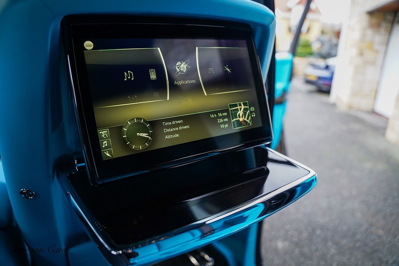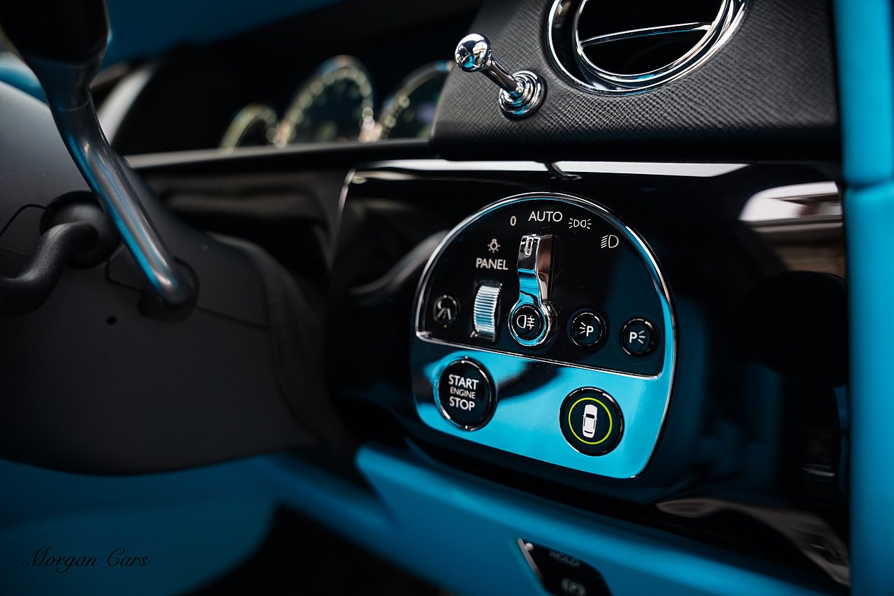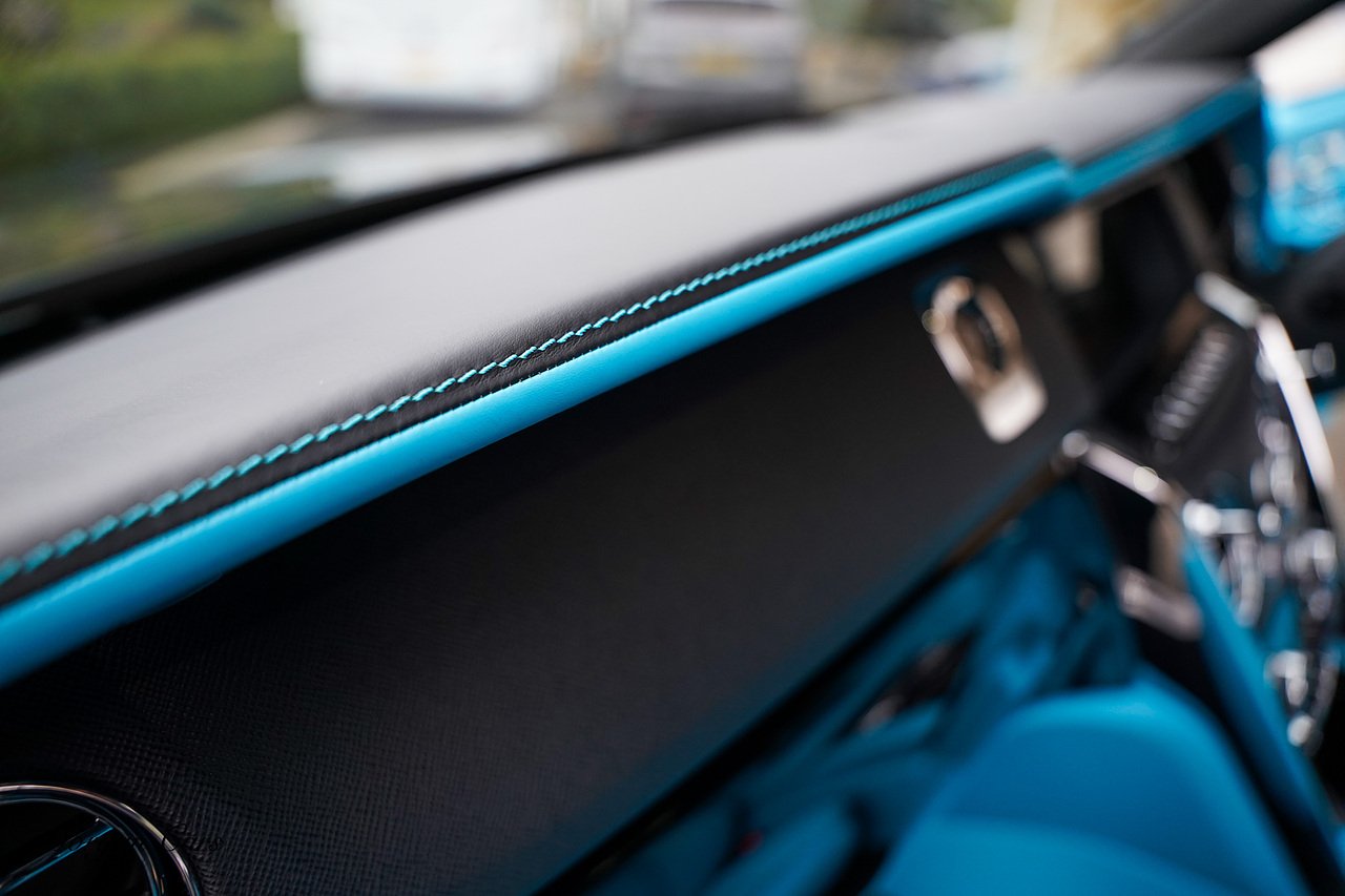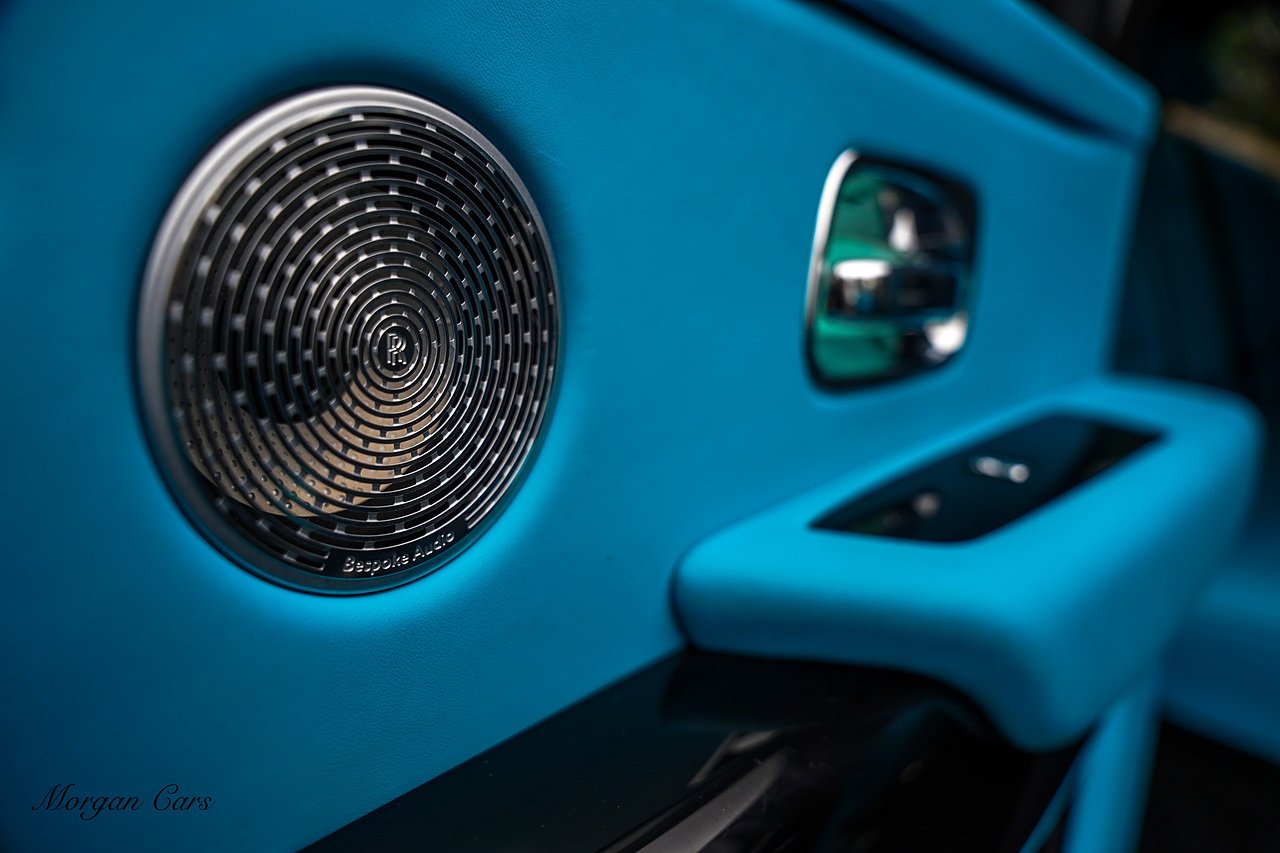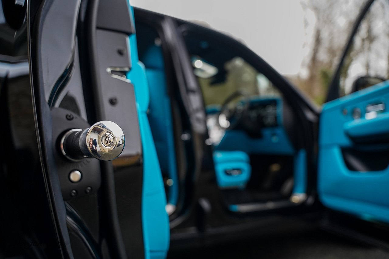 Morgan Cars are proud to present this Huge Spec Rolls Royce Cullinan Black Badge finished in Black Diamond metallic with Tiffany Blue leather interior, contrasting Gloss Black Interior Trim.