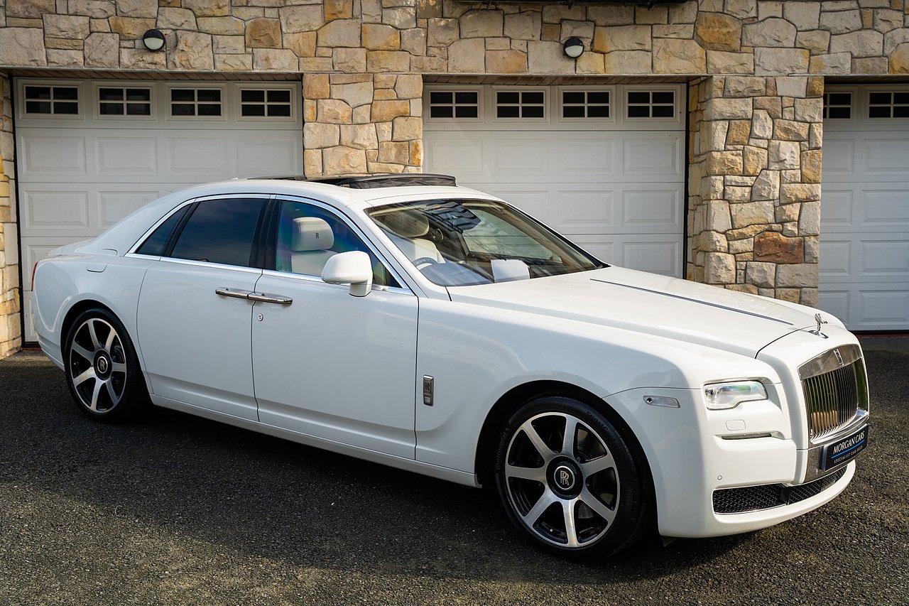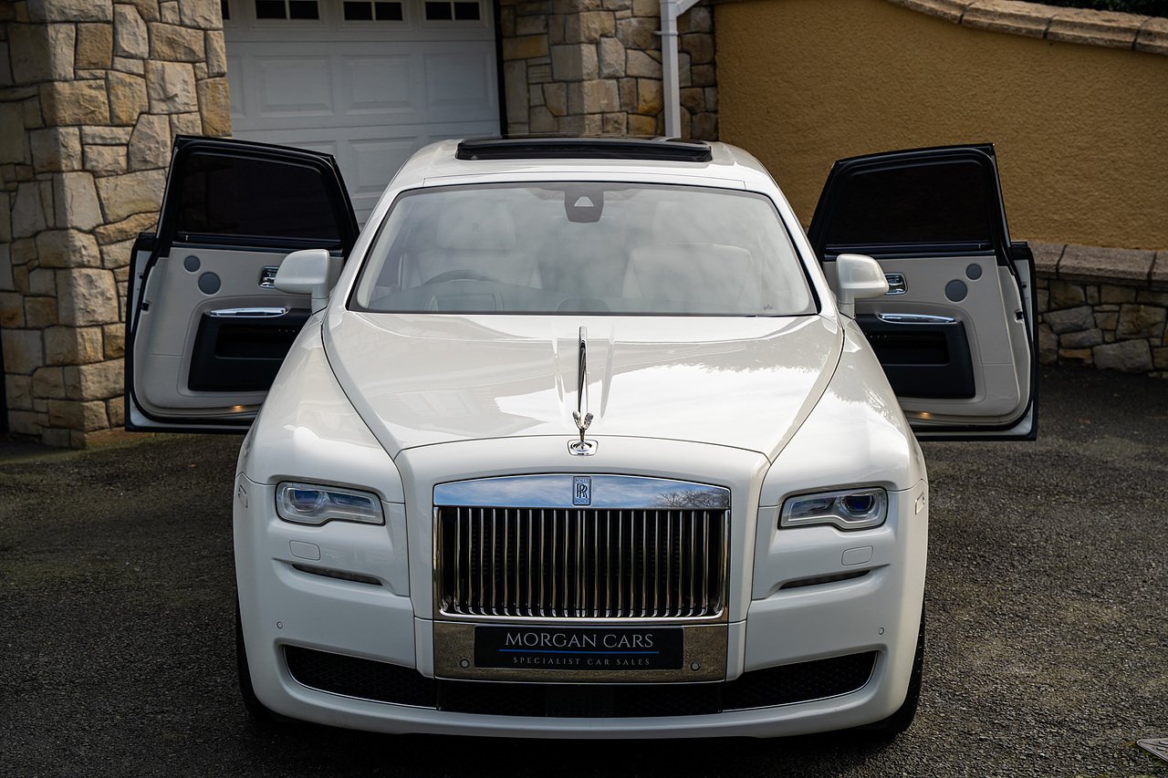 Morgan Cars are proud to present our Rolls Royce Ghost V12, Finished in Stunning Arctic White with Sea Shell Interior Leather Interior. Great Service History with Recent Service History in 2025.