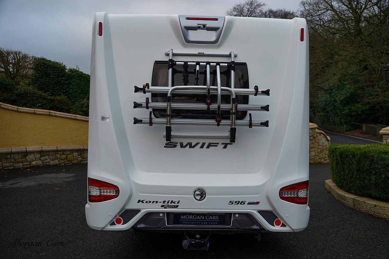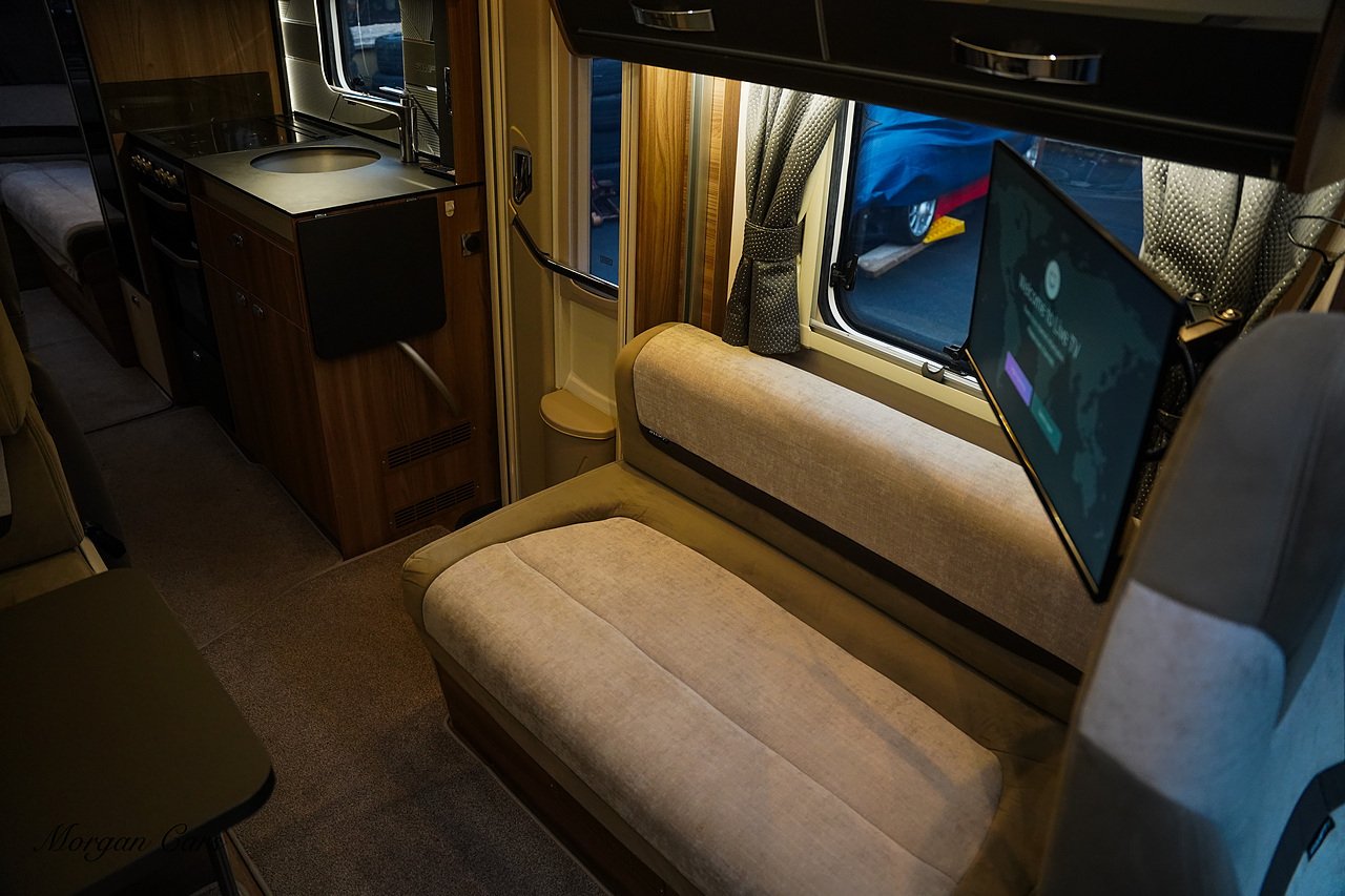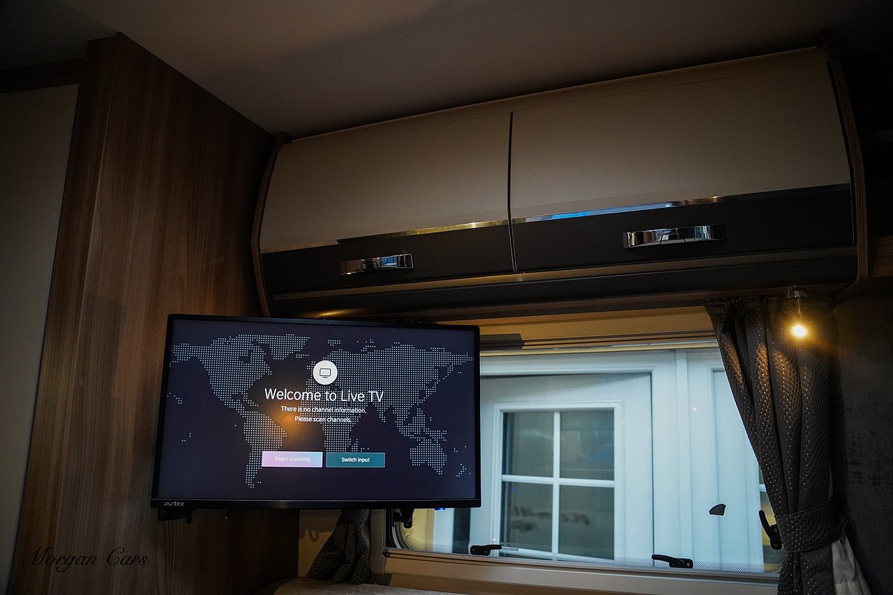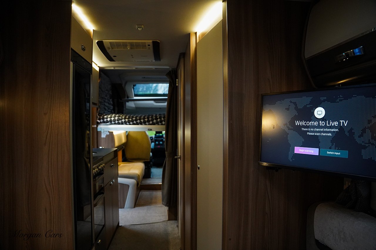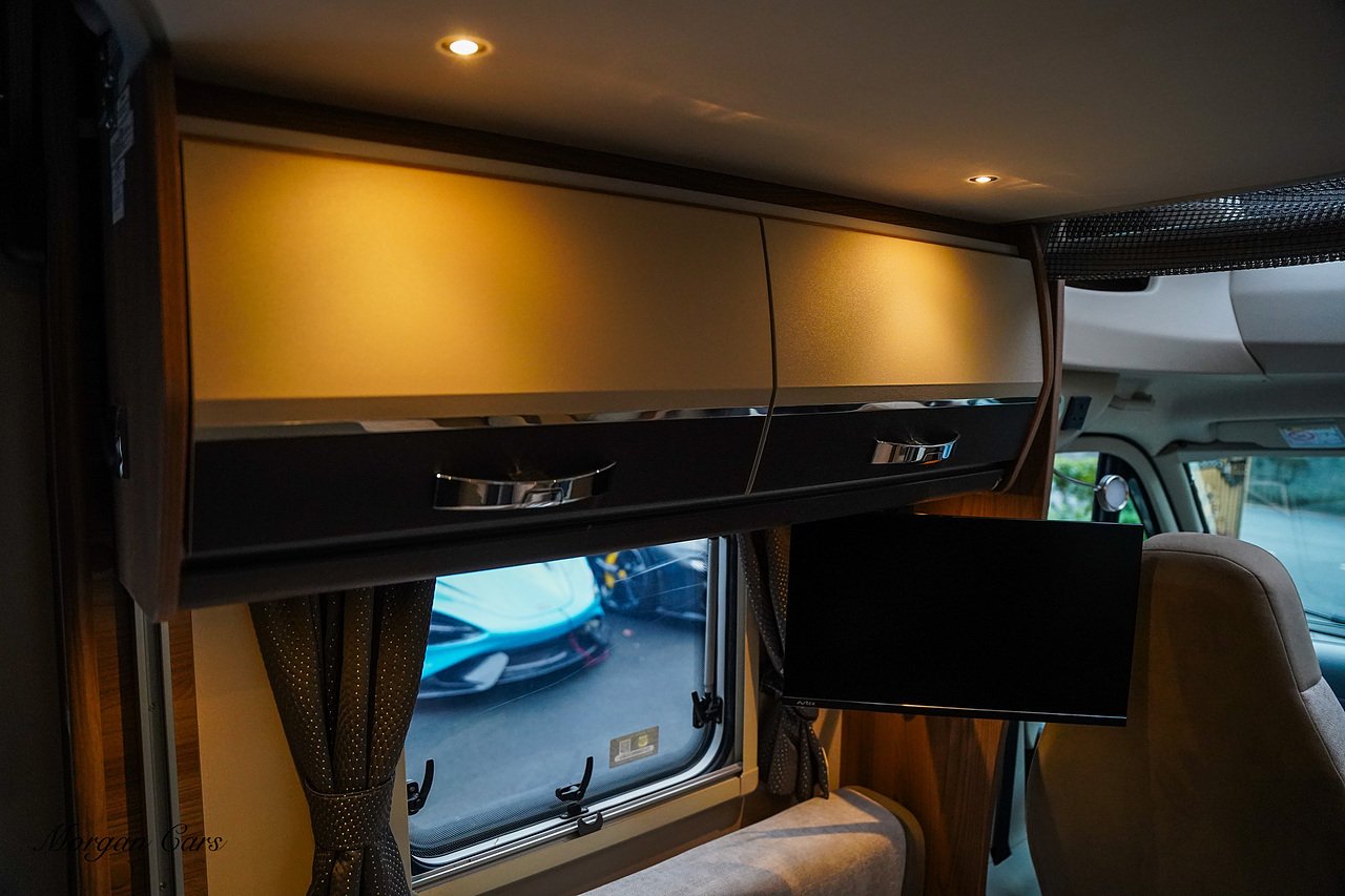 Automatic Drop Down Double Bed, Two AVTEX TV With built in DVD Players, Driver over Cab Front Opening Sky Lights , Heki Roof Light, Rear Reverse Parking Camera, 3 Space Rear Bike Rack, Tow Bar, Thule Awnings, Polished and Black Alloy Wheels, Solar Panels on the Roof, Rear Garage, External BBQ Point, Fly Screen Black out blinds and curtains, LED Spot and Dimmable Mood Lighting, Sat Nav.
